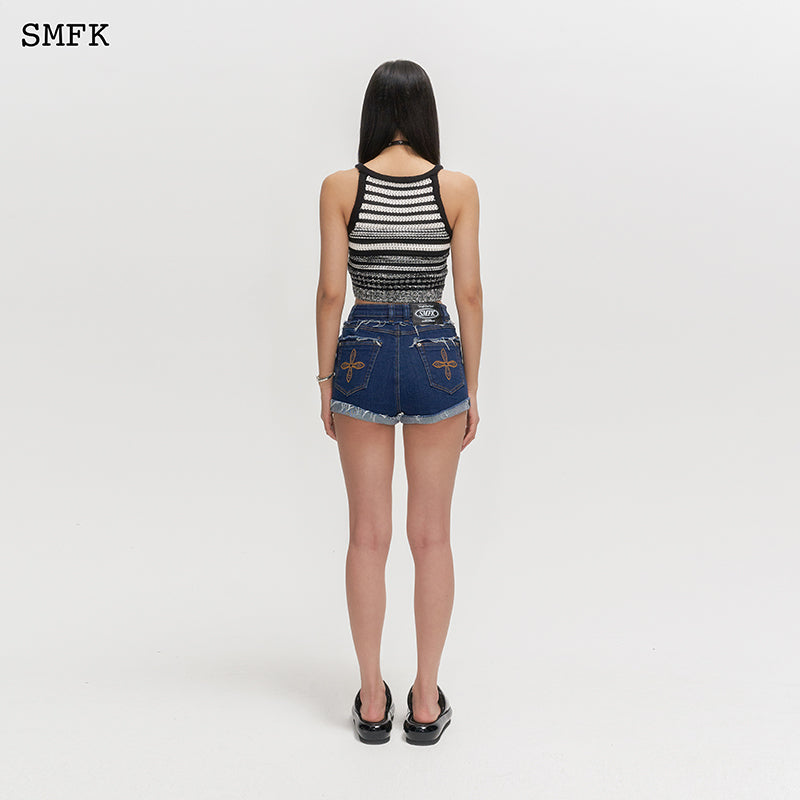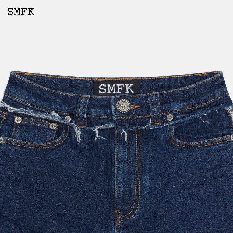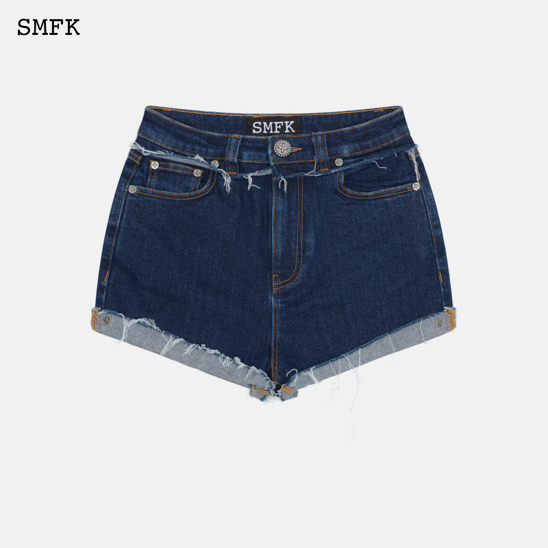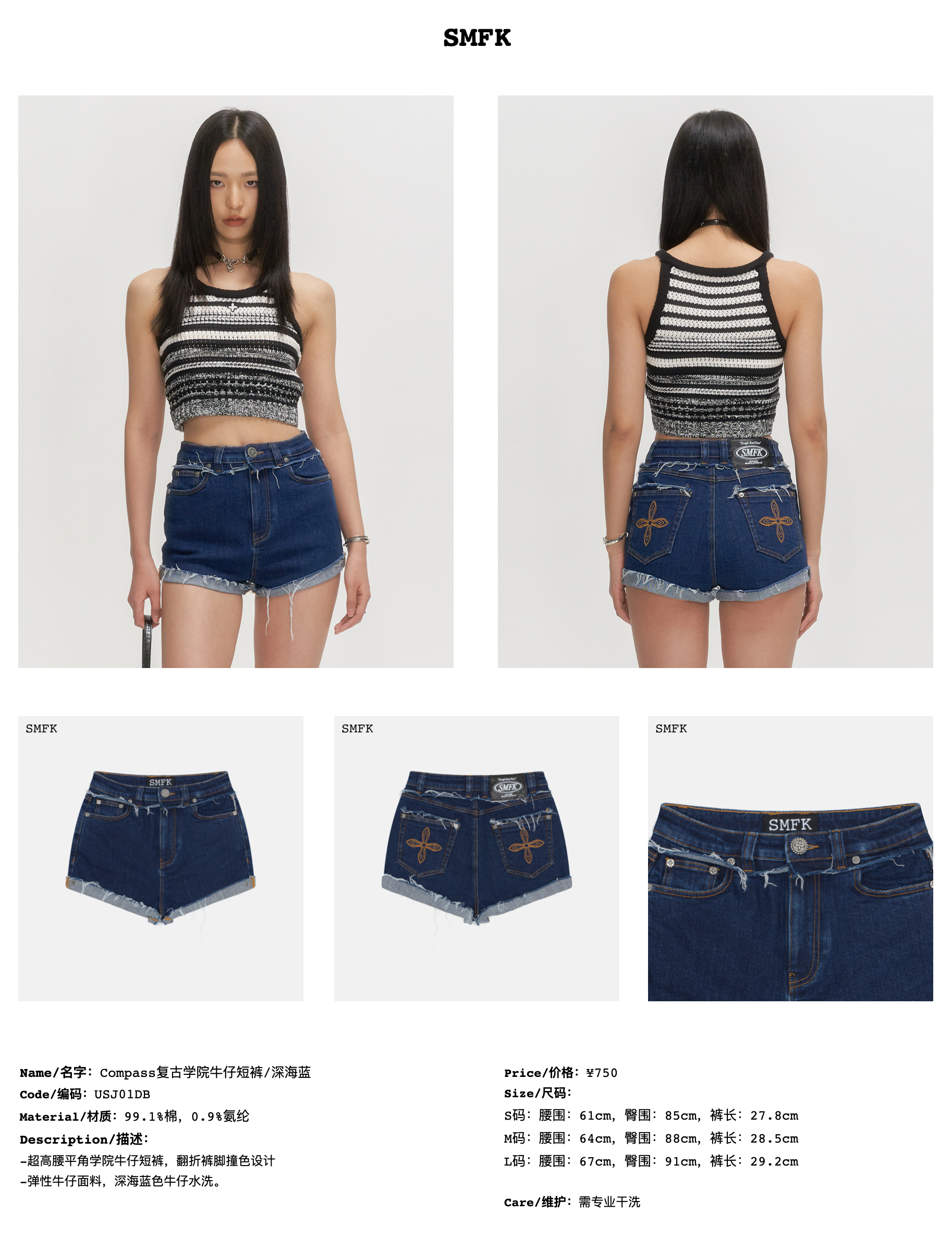 SMFK SS2303 复古学院牛仔短裤 深海蓝