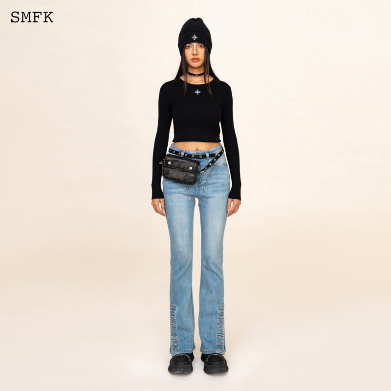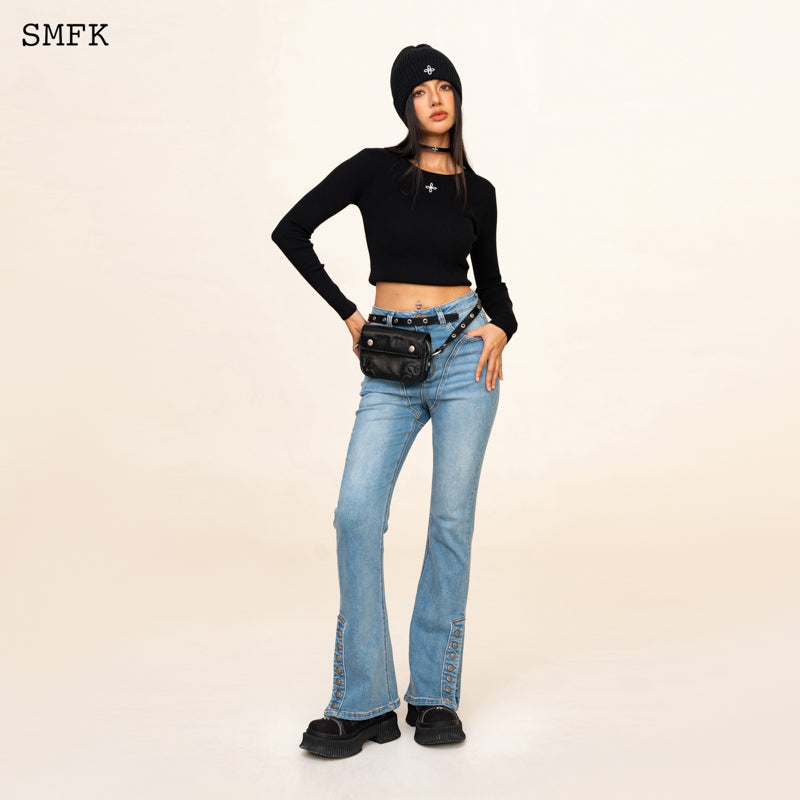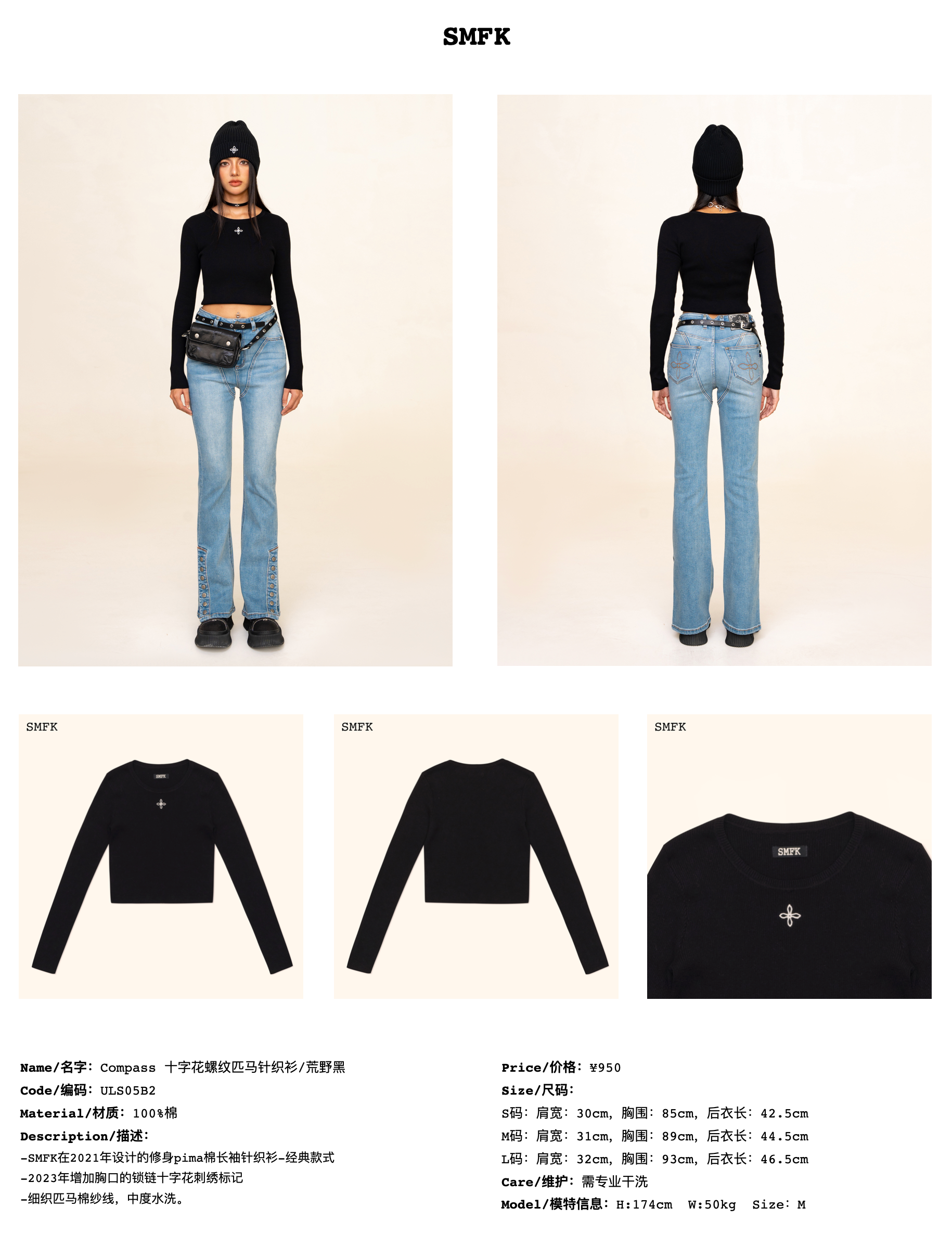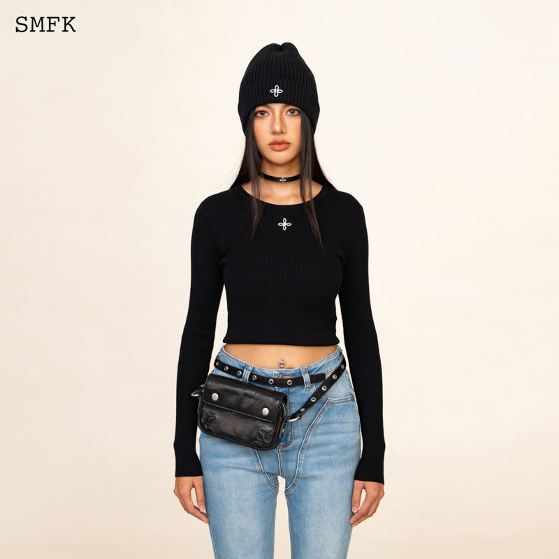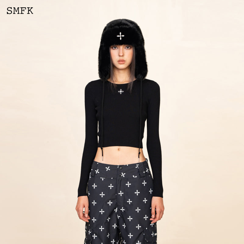 SMFK SS2310 十字花螺纹匹马针织衫 黑