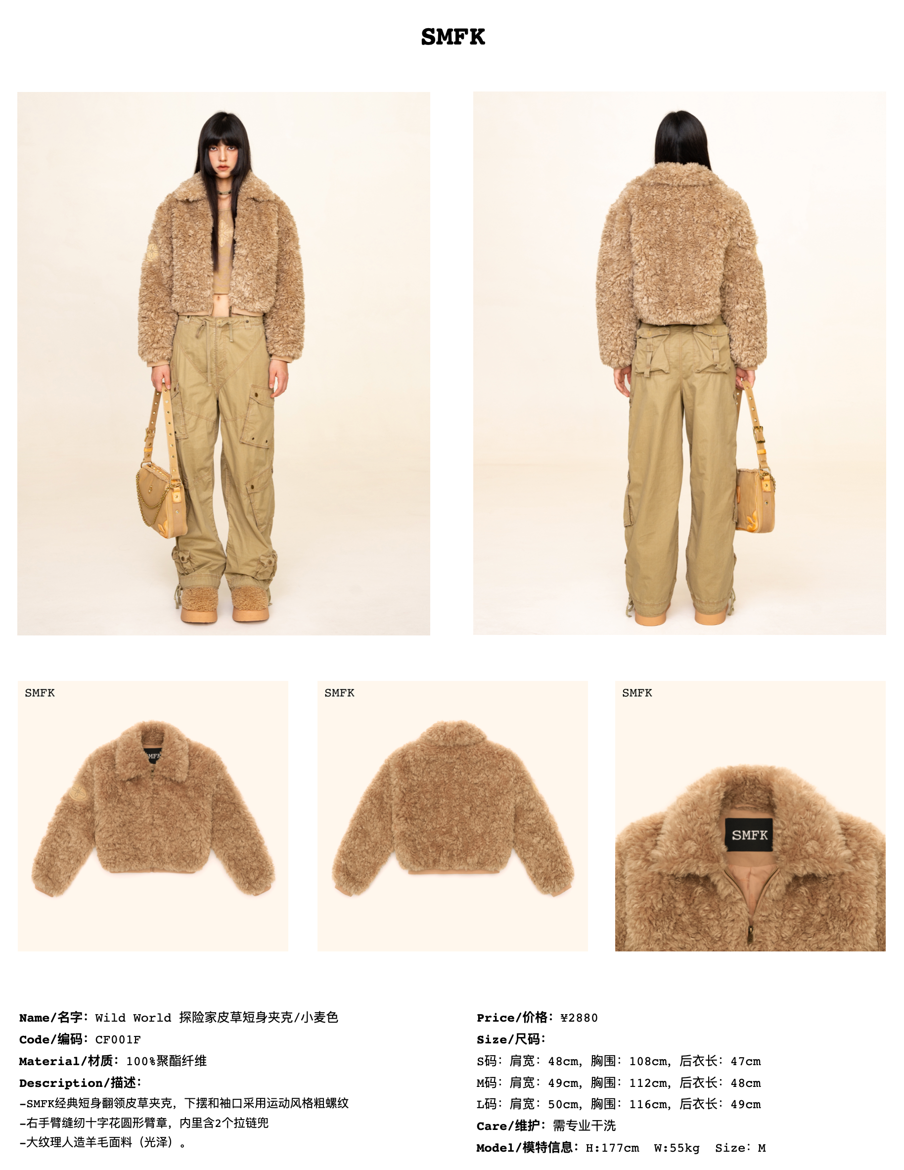 SMFK SS2310 探险家皮草短身夹克 小麦