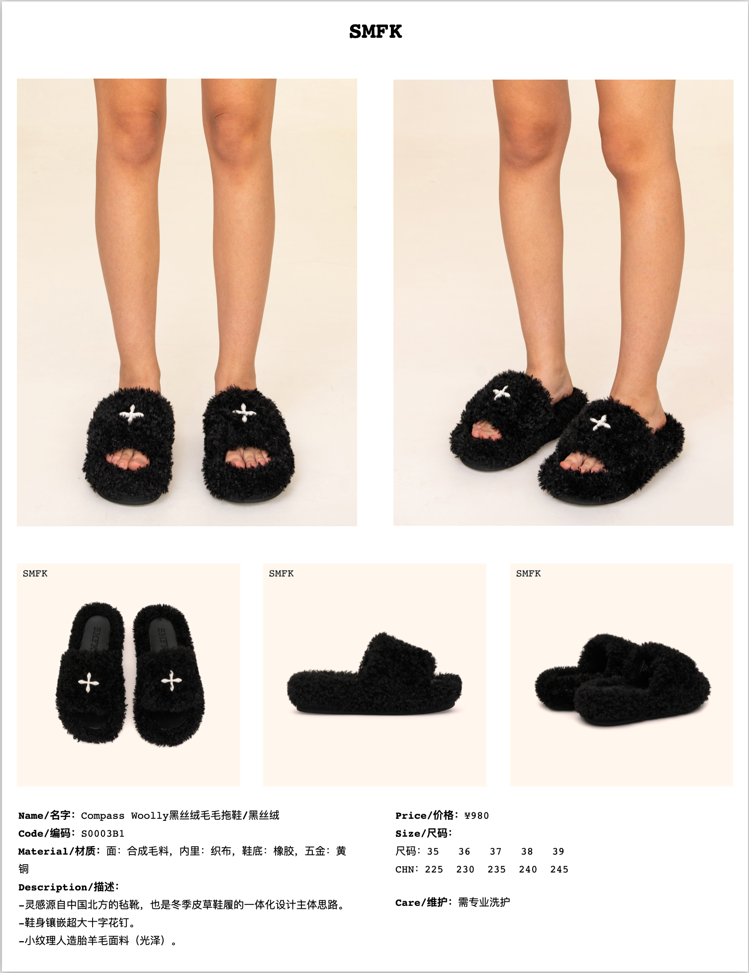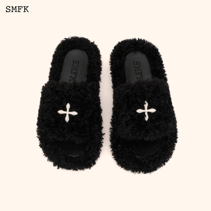 SMFK SS2310 黑丝绒毛毛拖鞋(偏大)