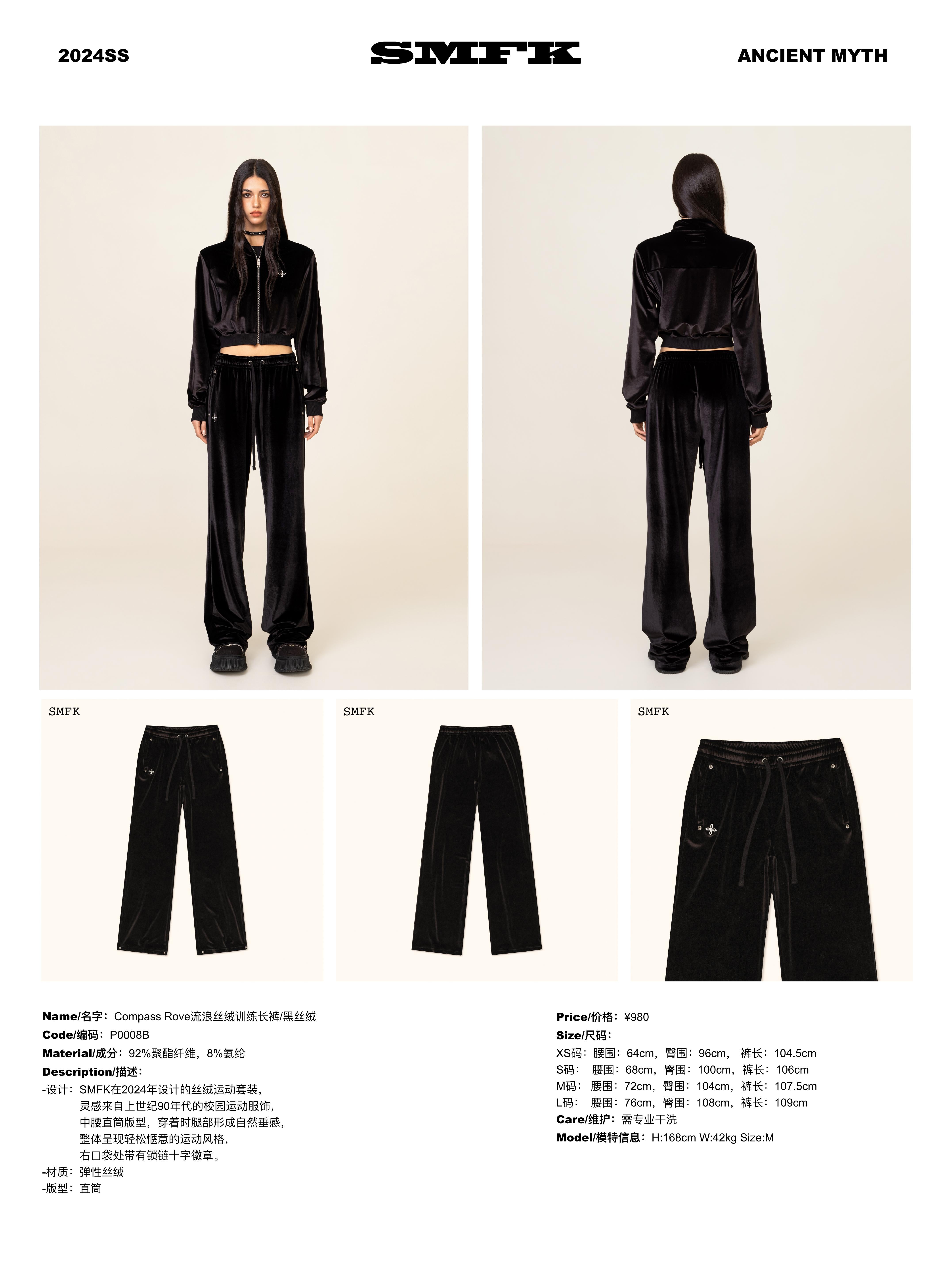 SMFK SS2312 流浪丝绒训练长裤 黑