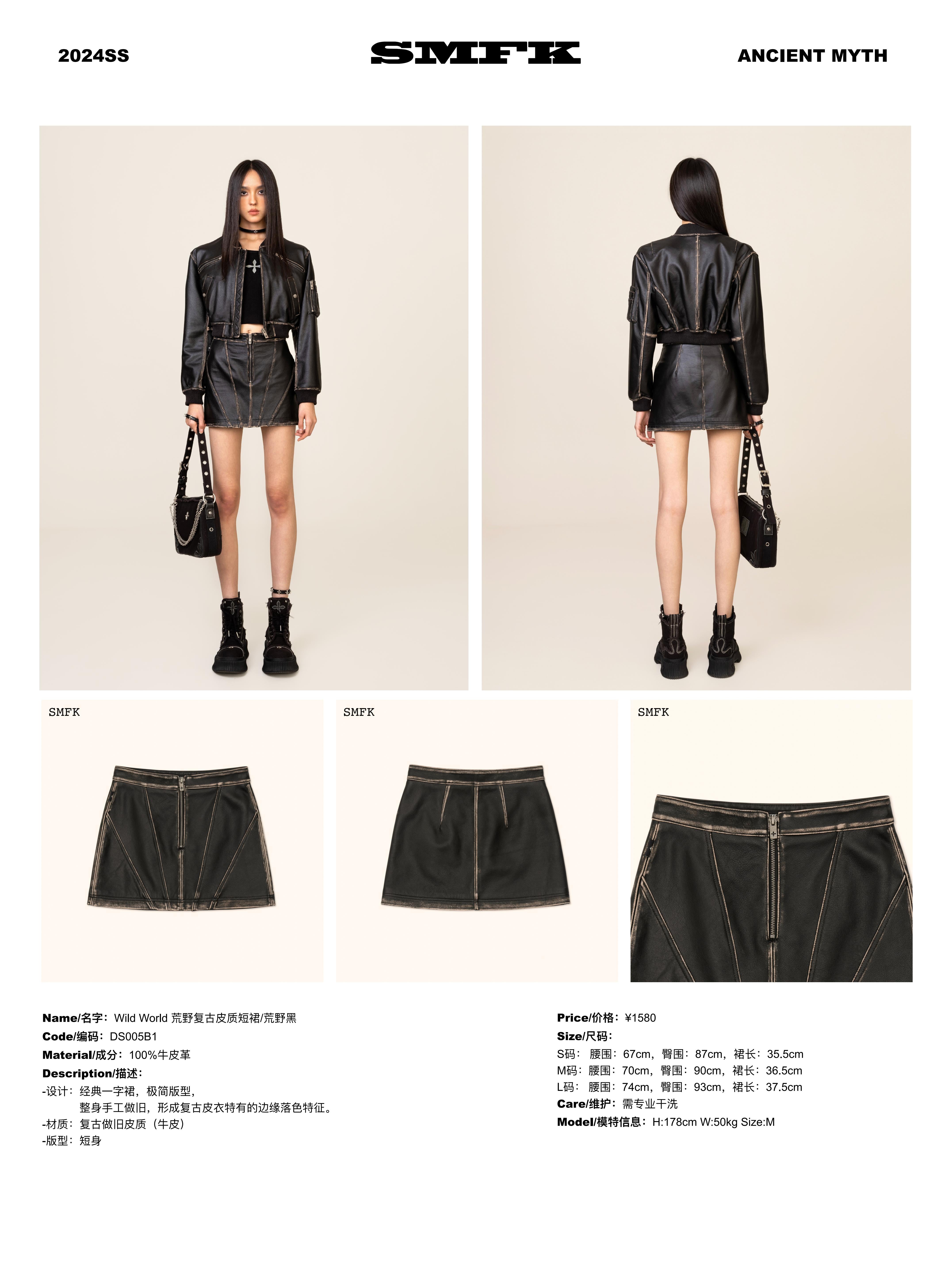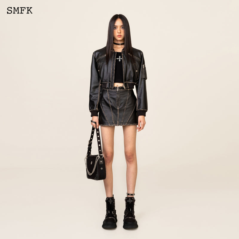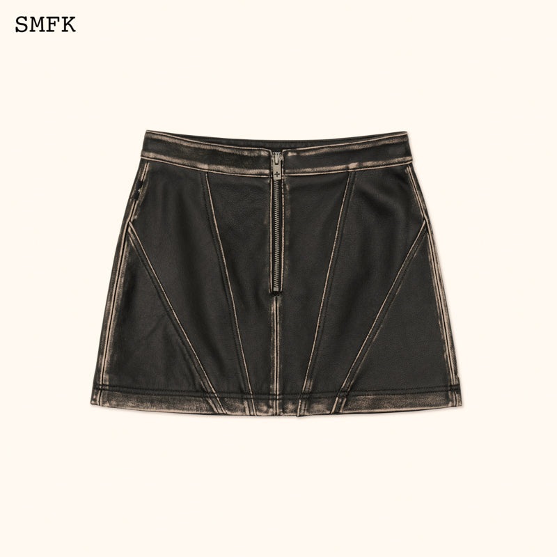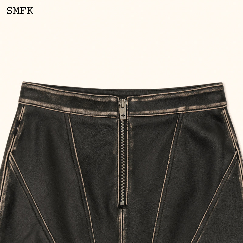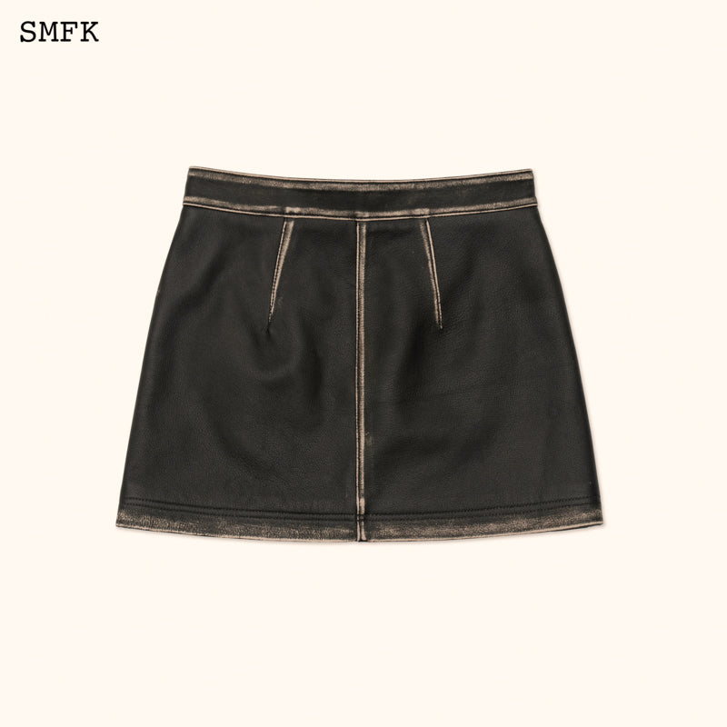 SMFK SS2312 荒野复古皮质短裙 黑