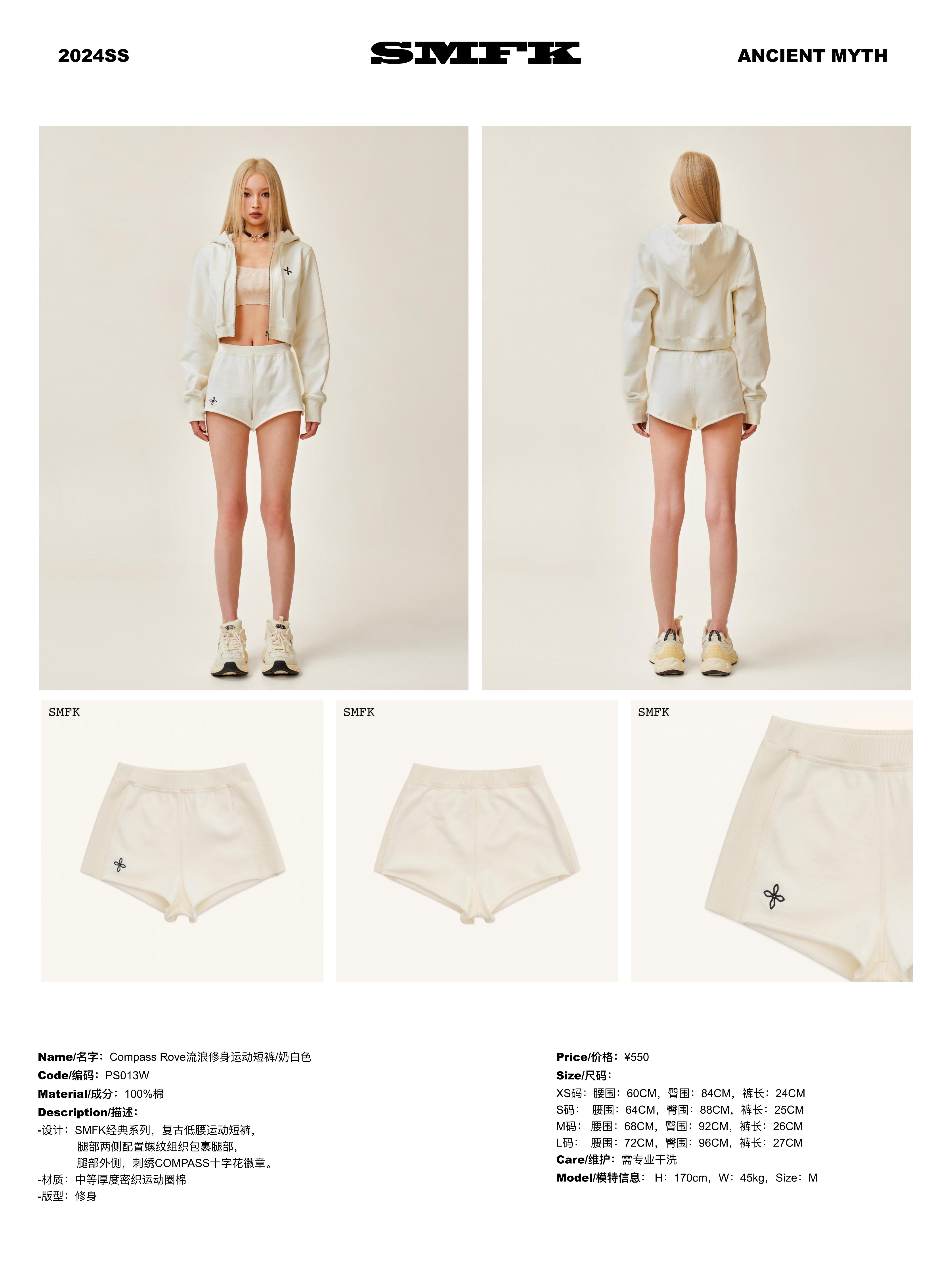 SMFK SS2402 流浪修身运动短裤 白