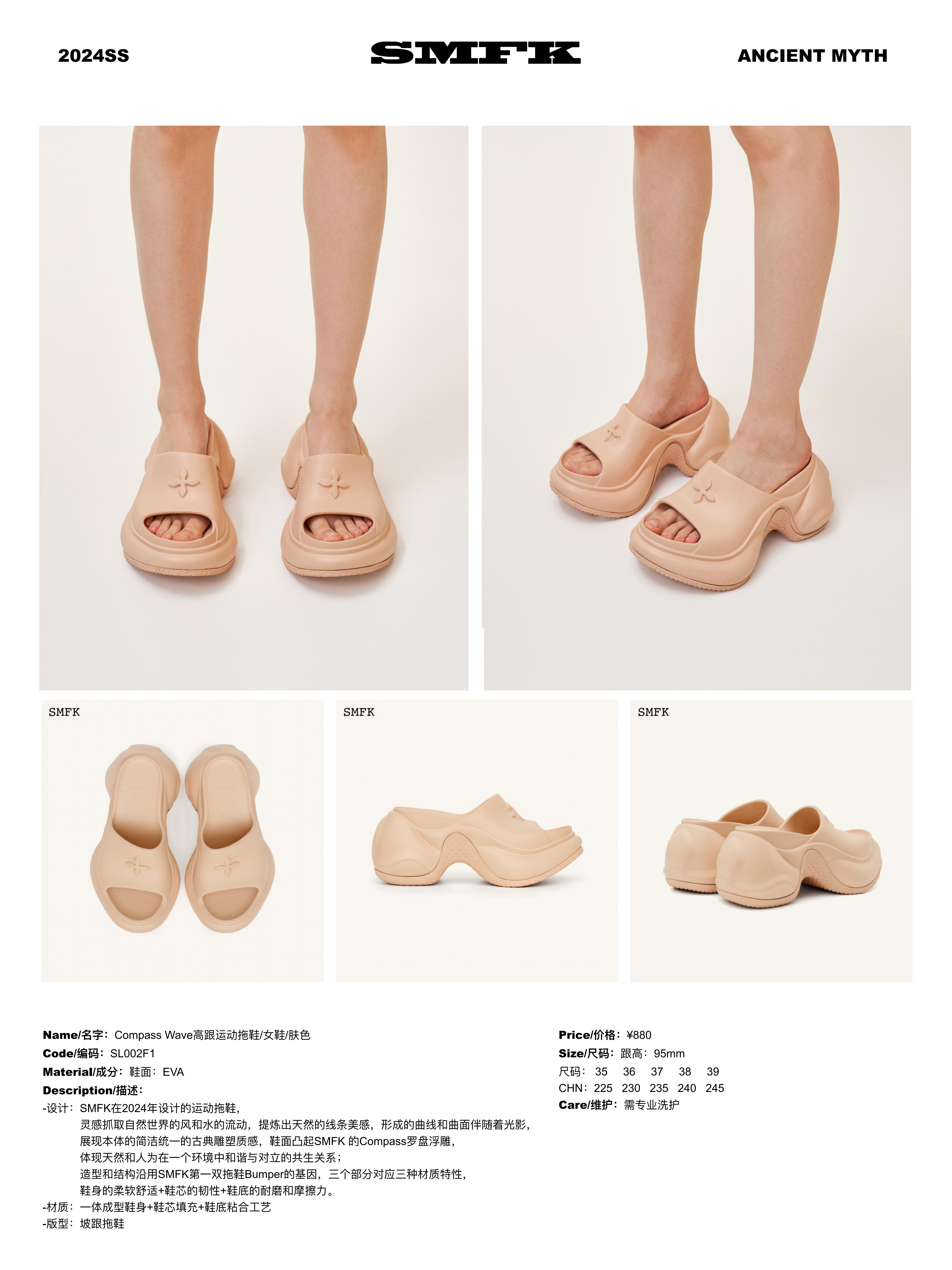 SMFK SS2404 高跟运动拖鞋 肤色