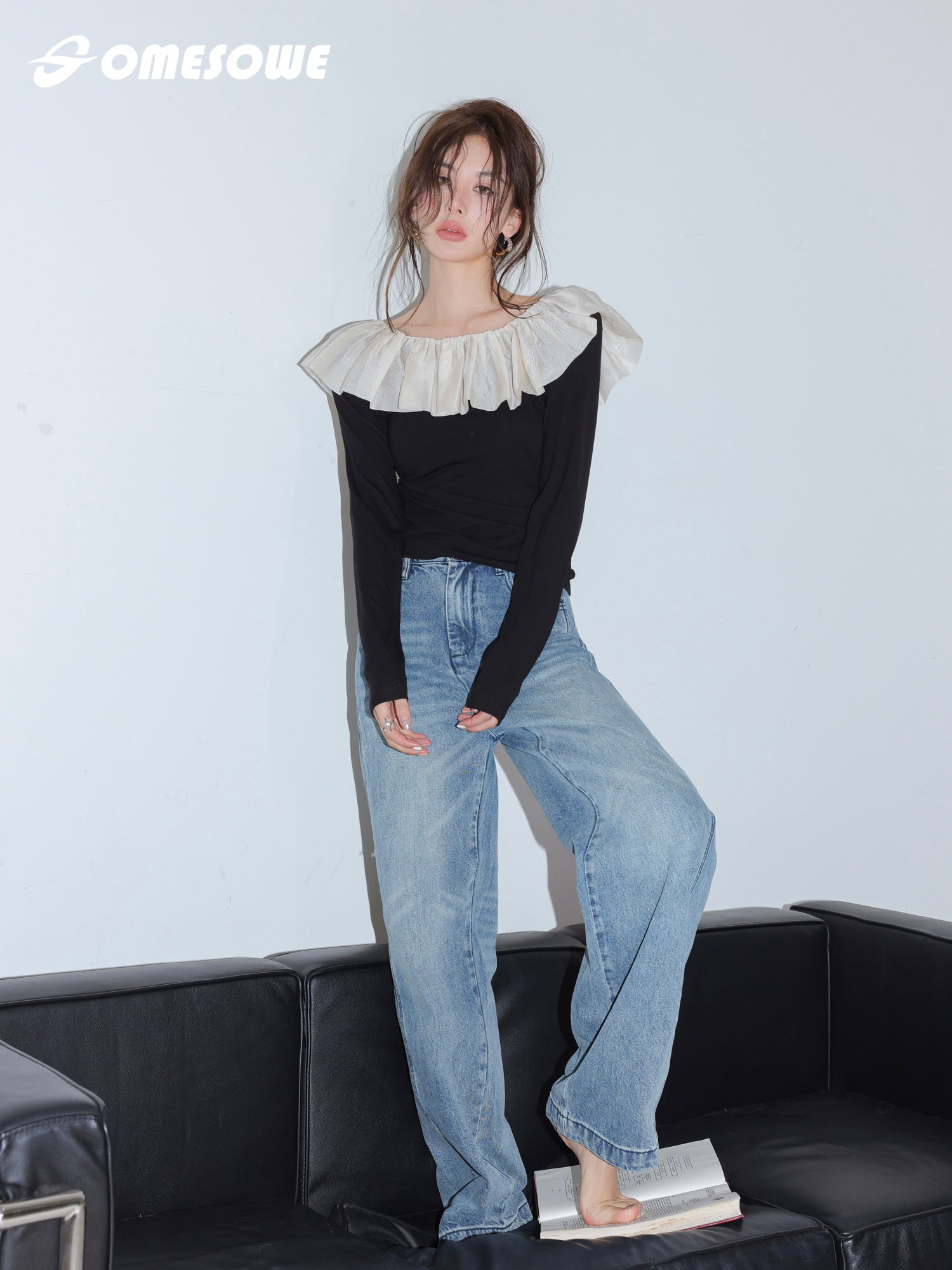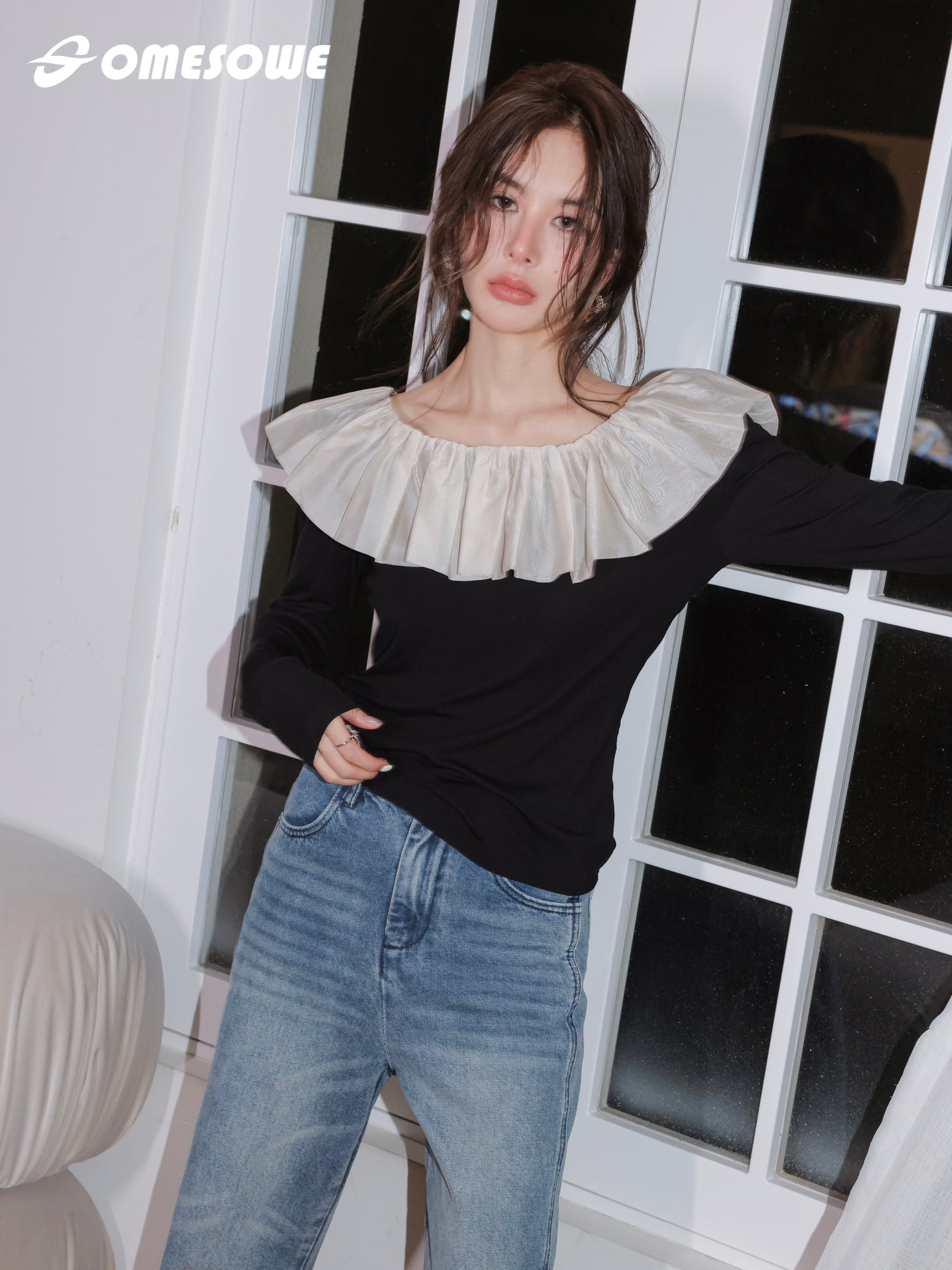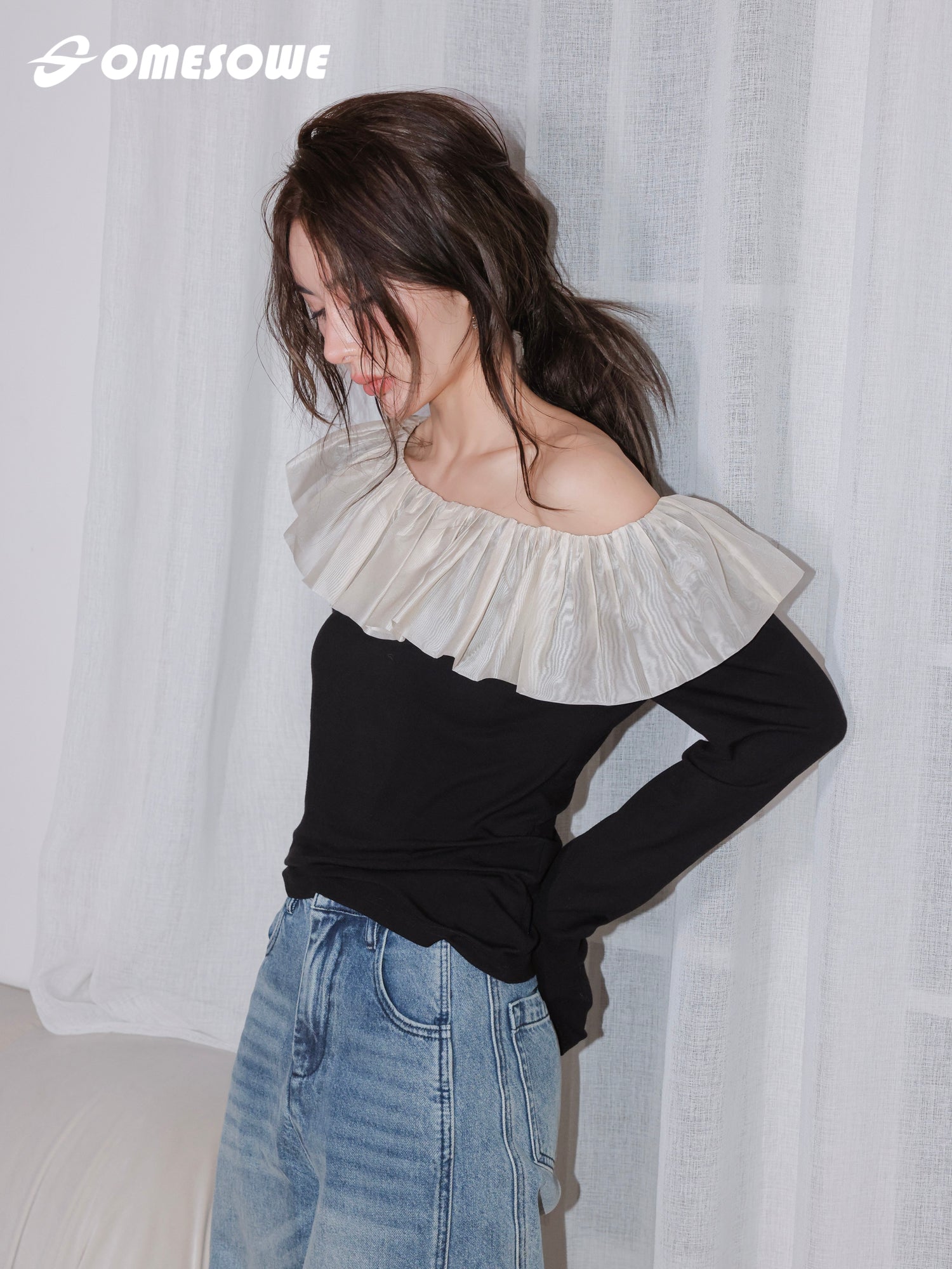 SOMESOWE 复古芭蕾欧根纱弹力修身长袖