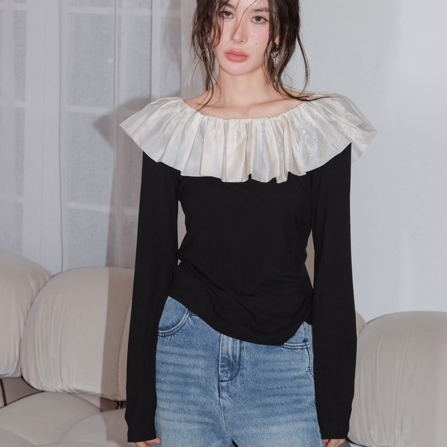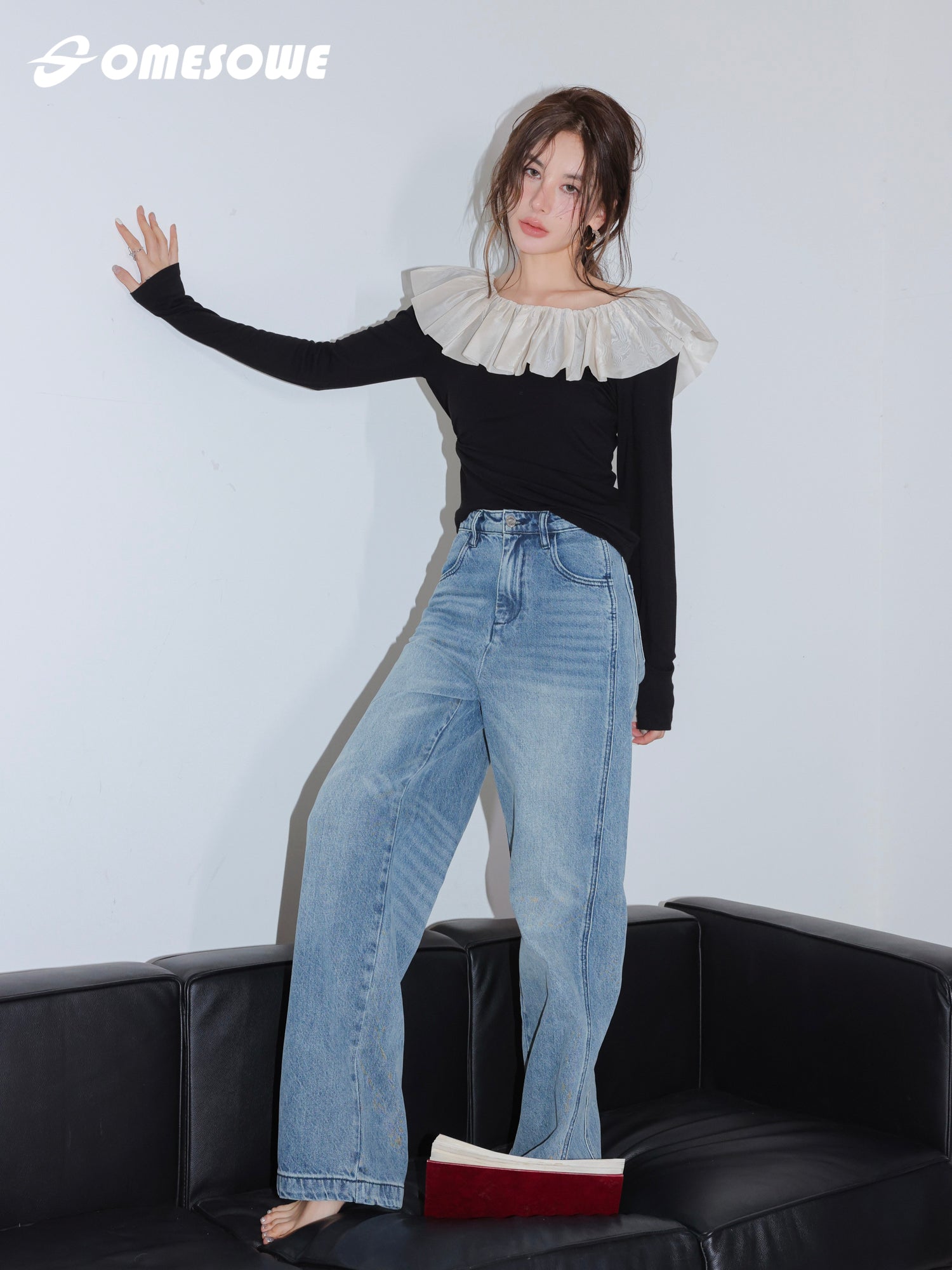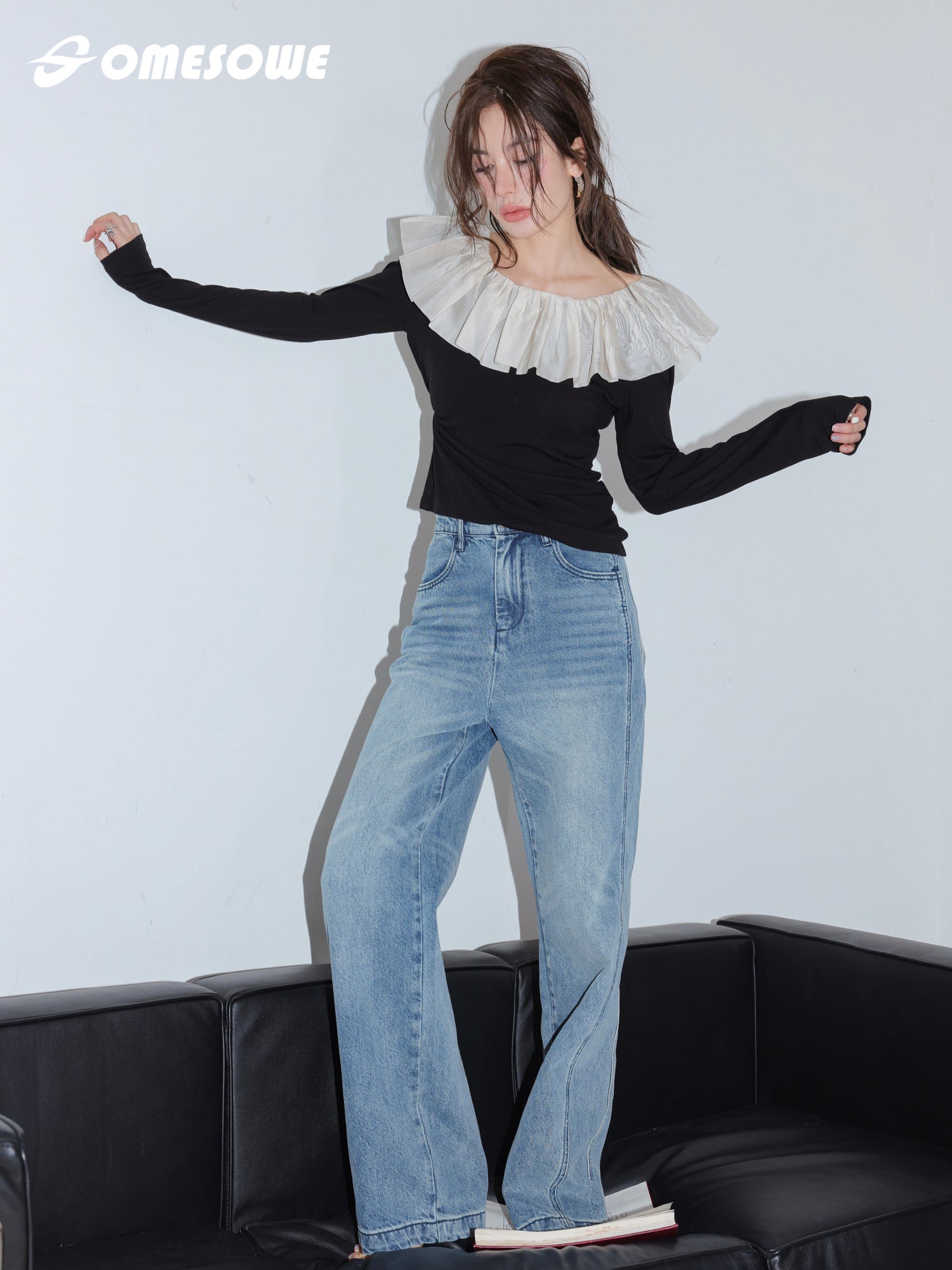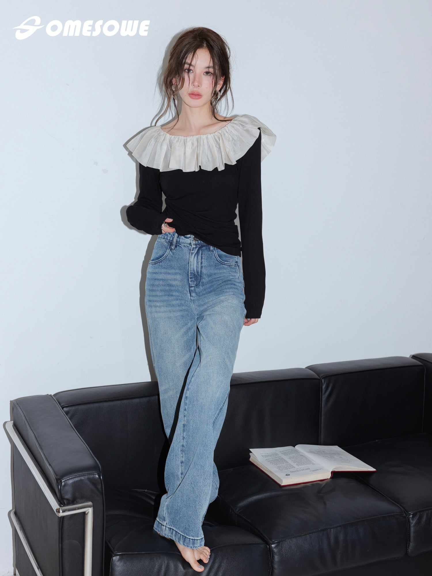 SOMESOWE 复古芭蕾欧根纱弹力修身长袖
