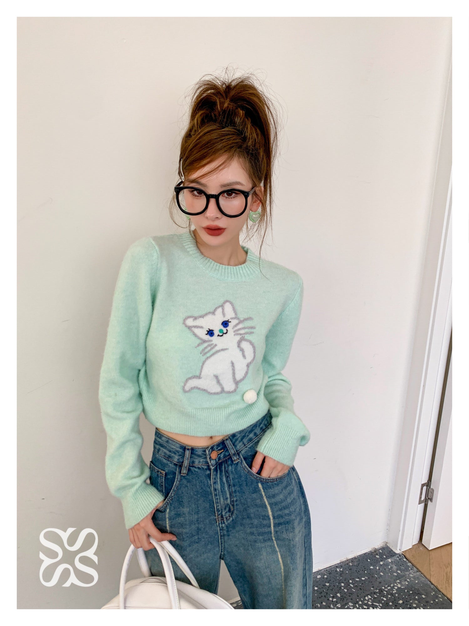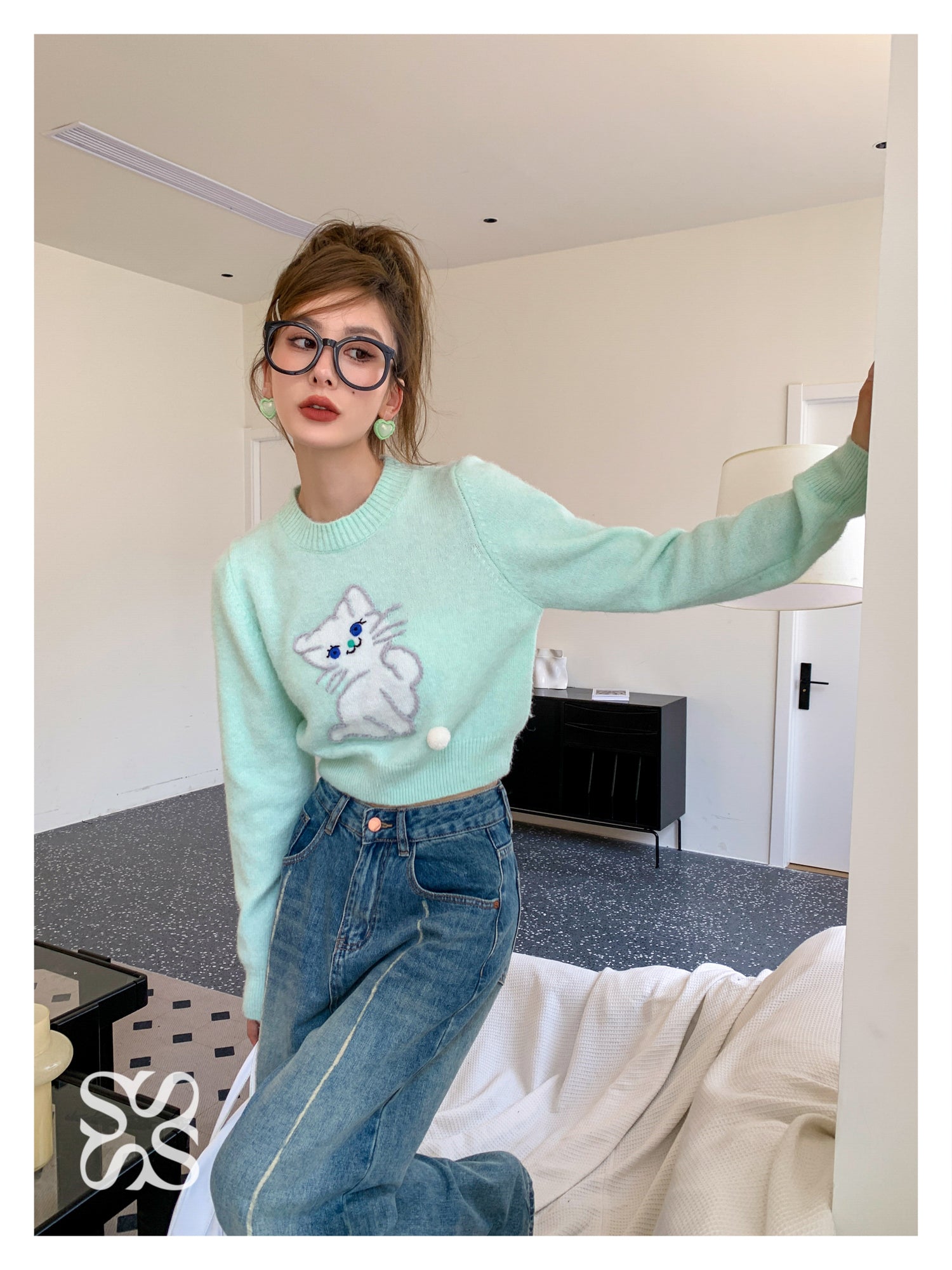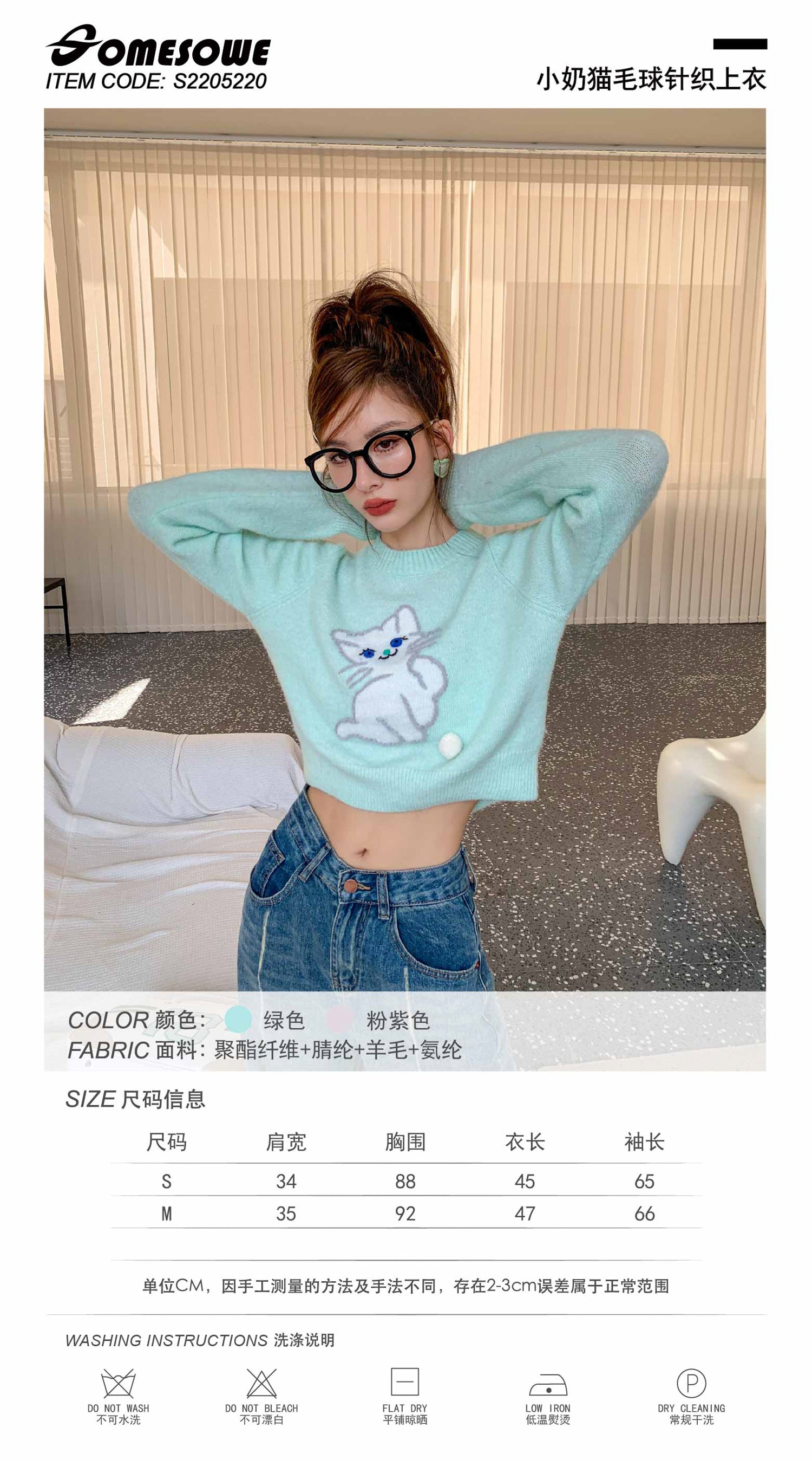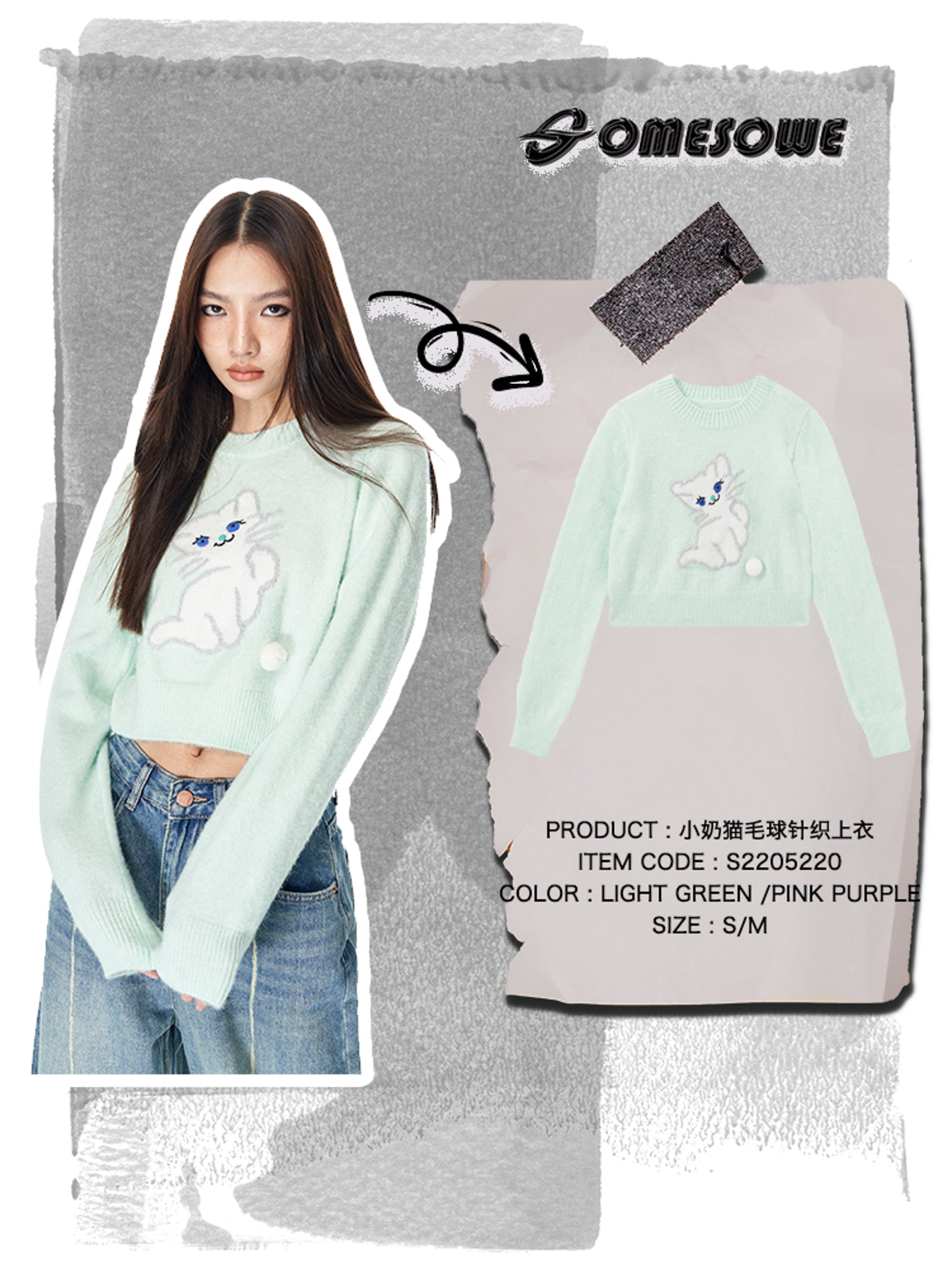 SOMESOWE 小奶猫毛球针织上衣 绿