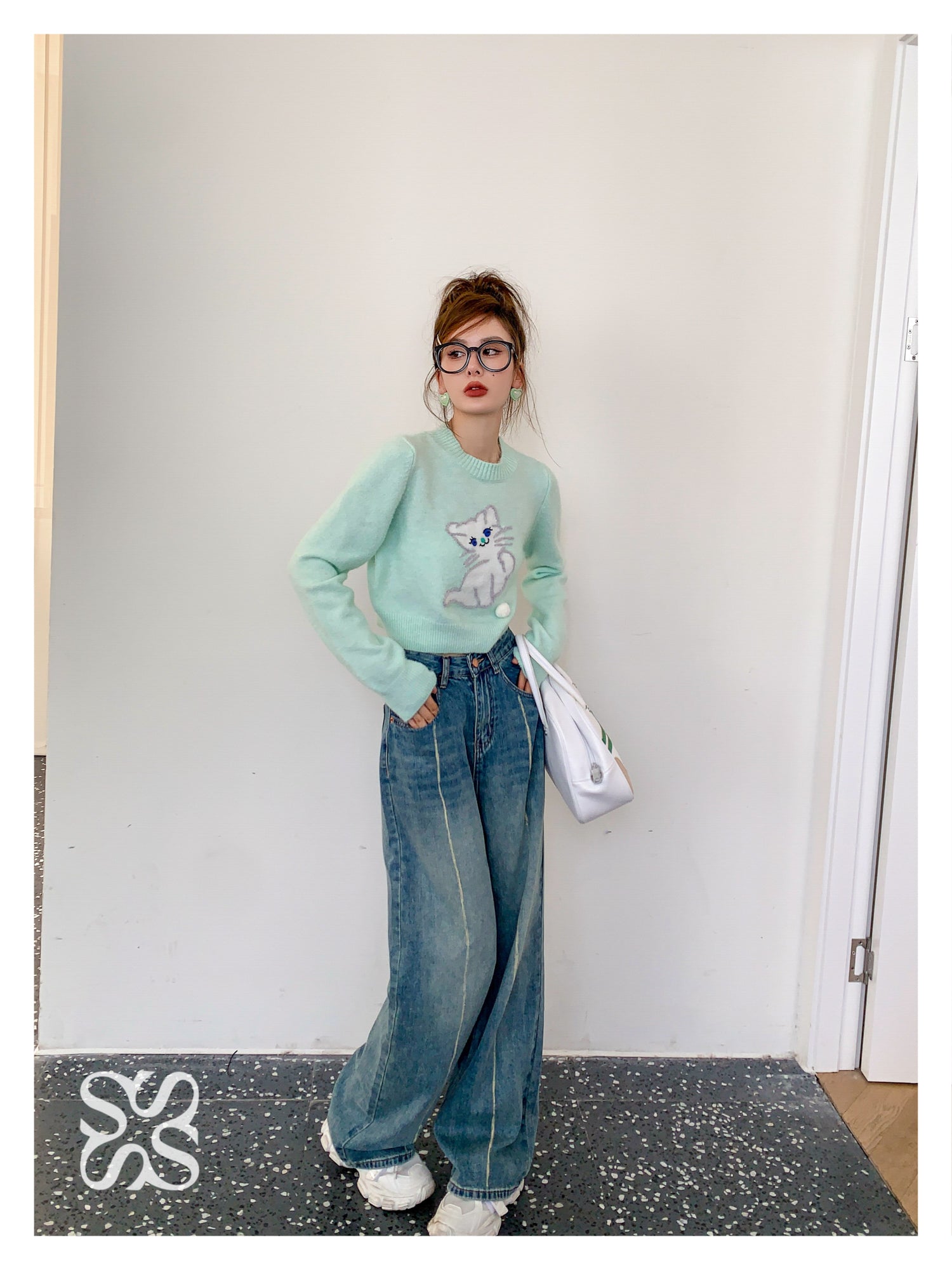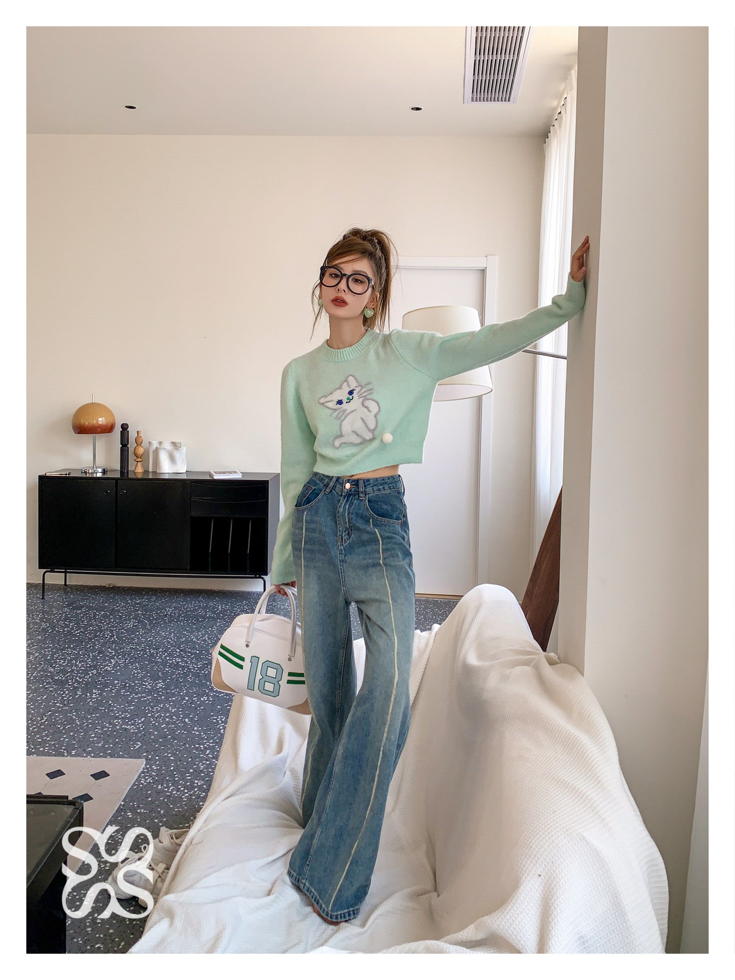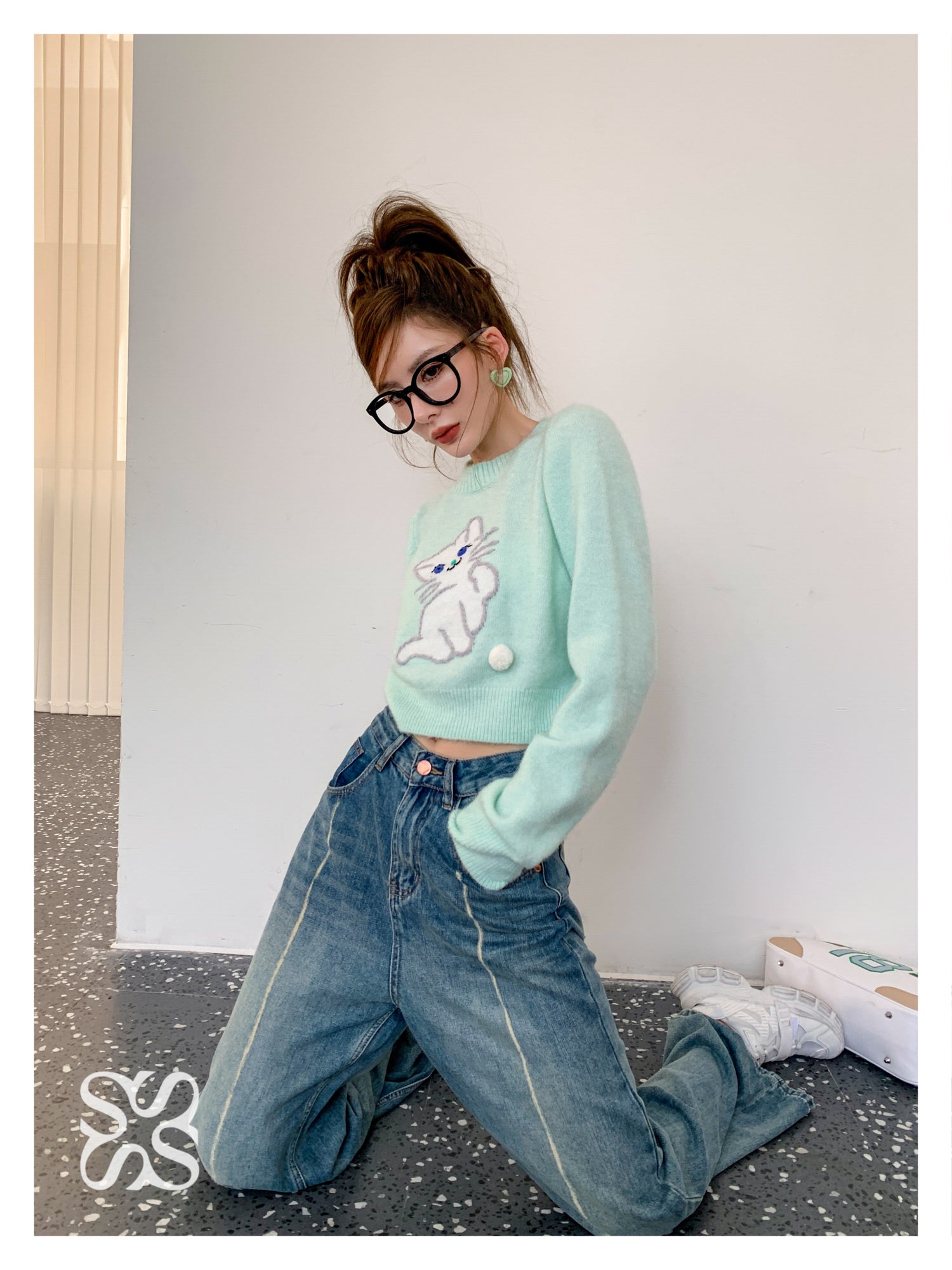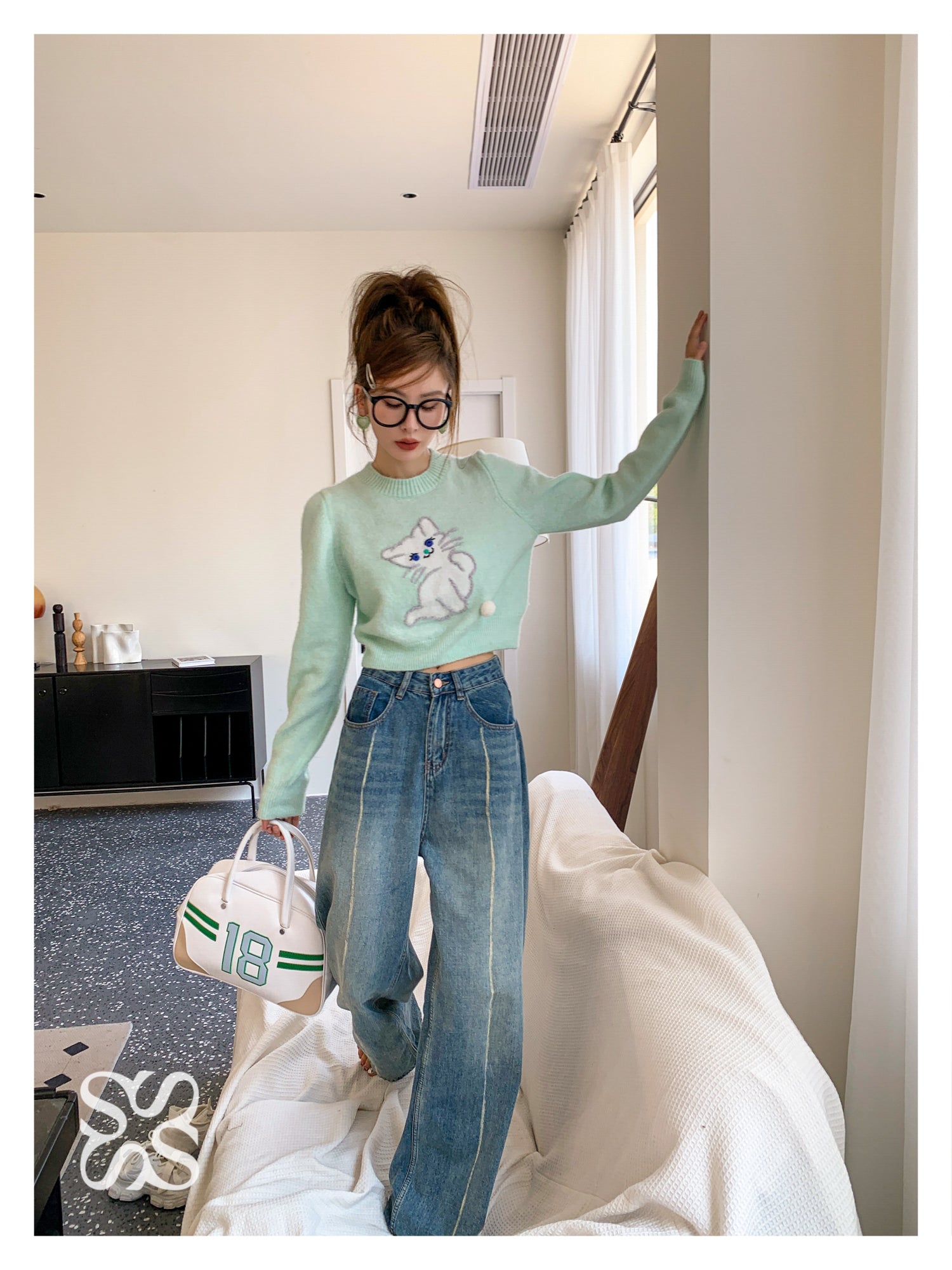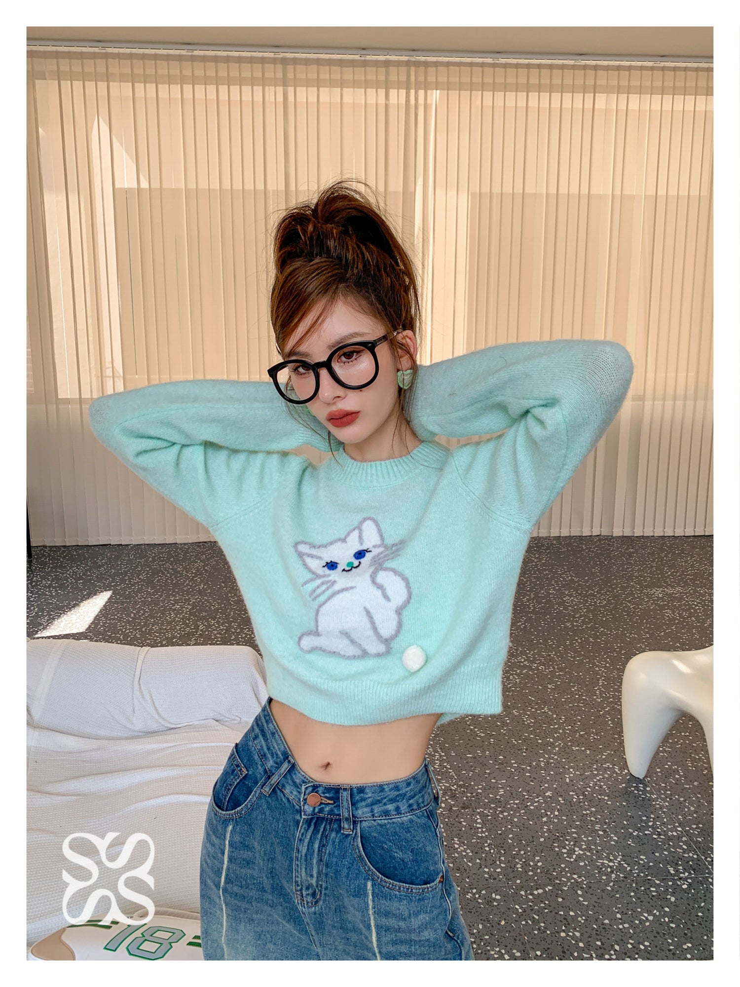 SOMESOWE 小奶猫毛球针织上衣 绿