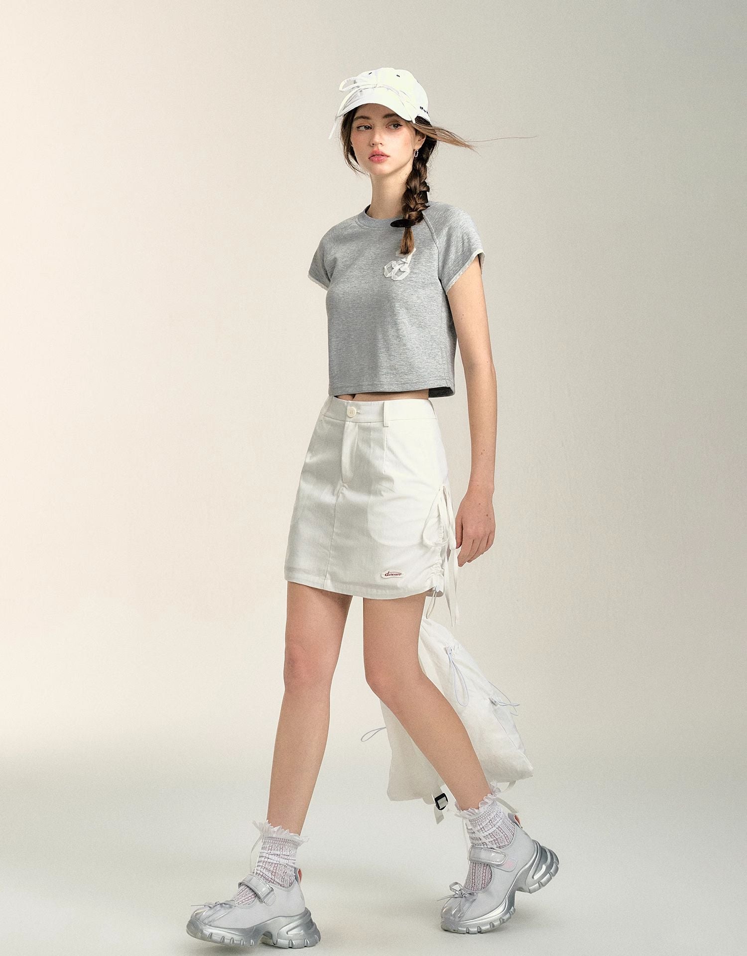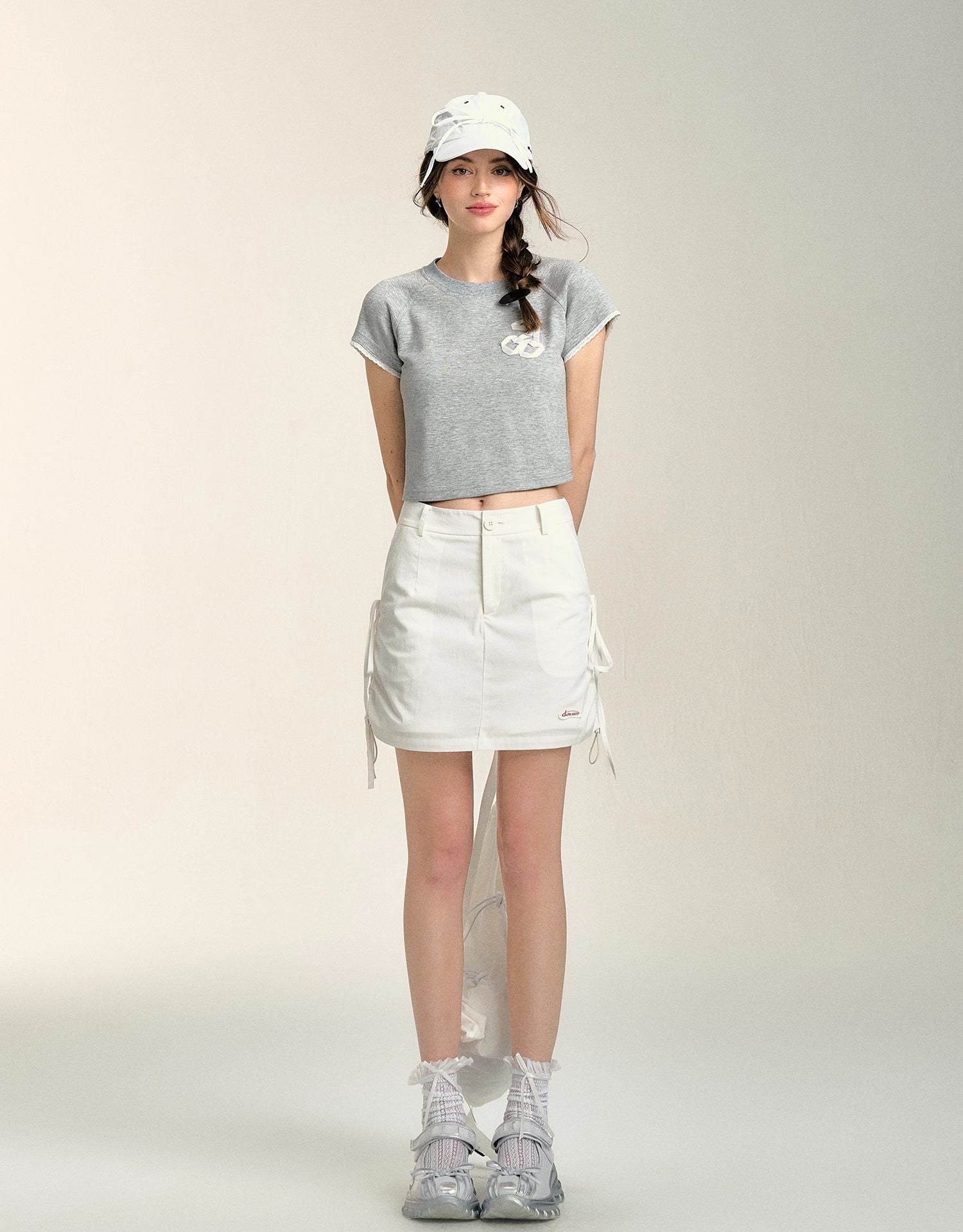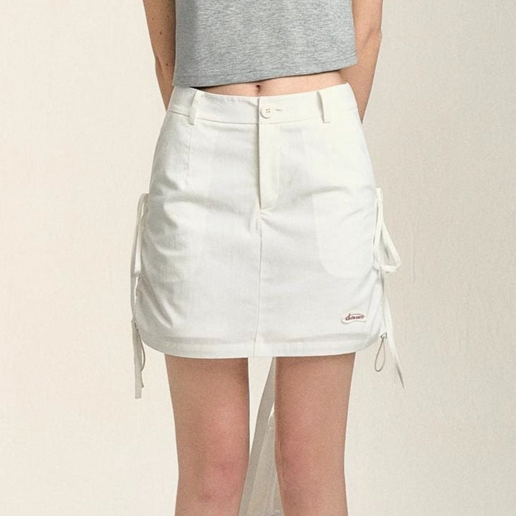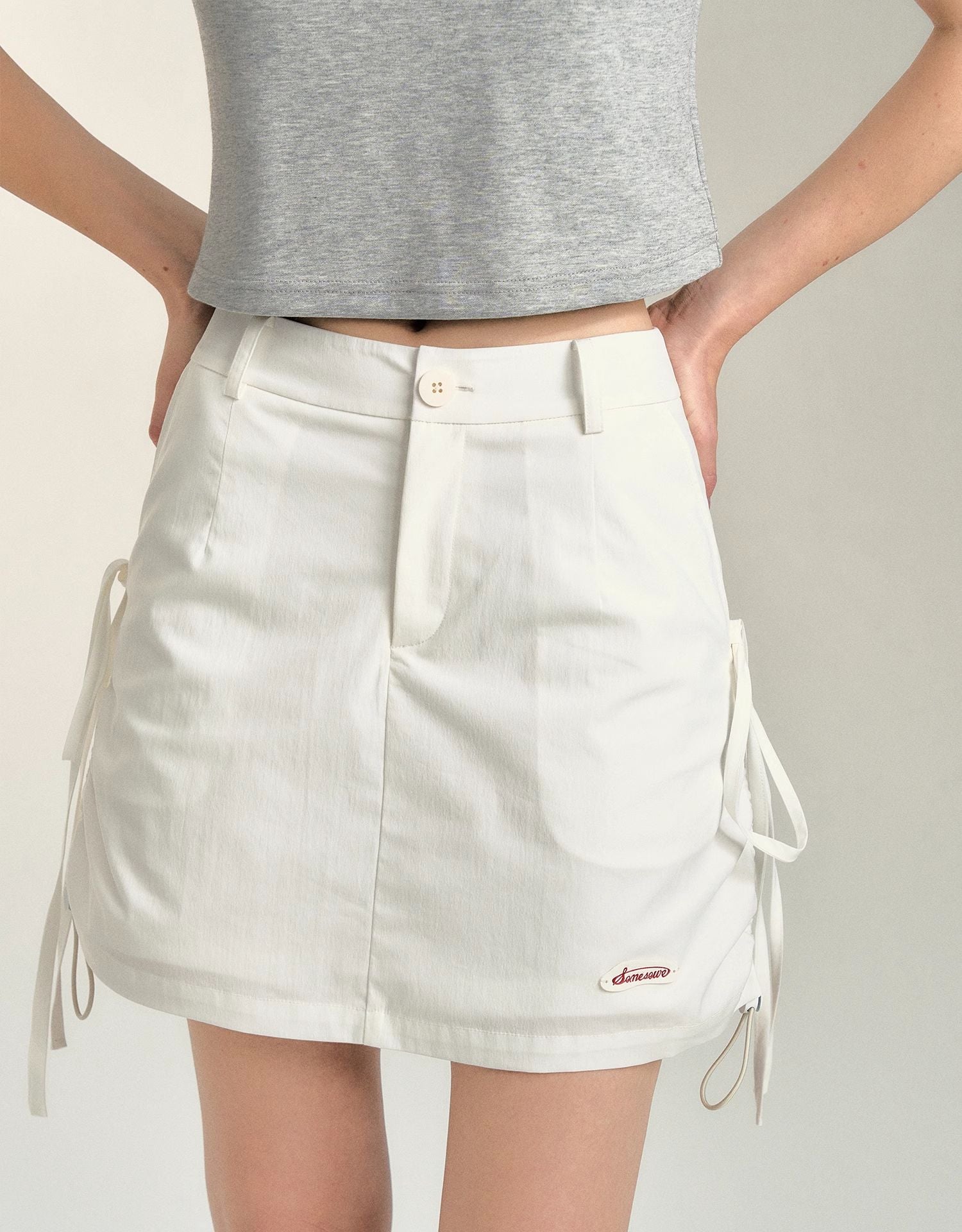 SOMESOWE 2407 甜辣蝴蝶结抽绳工装短裙 白