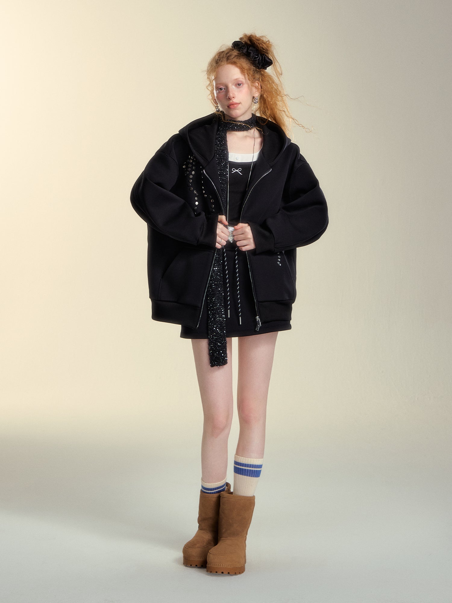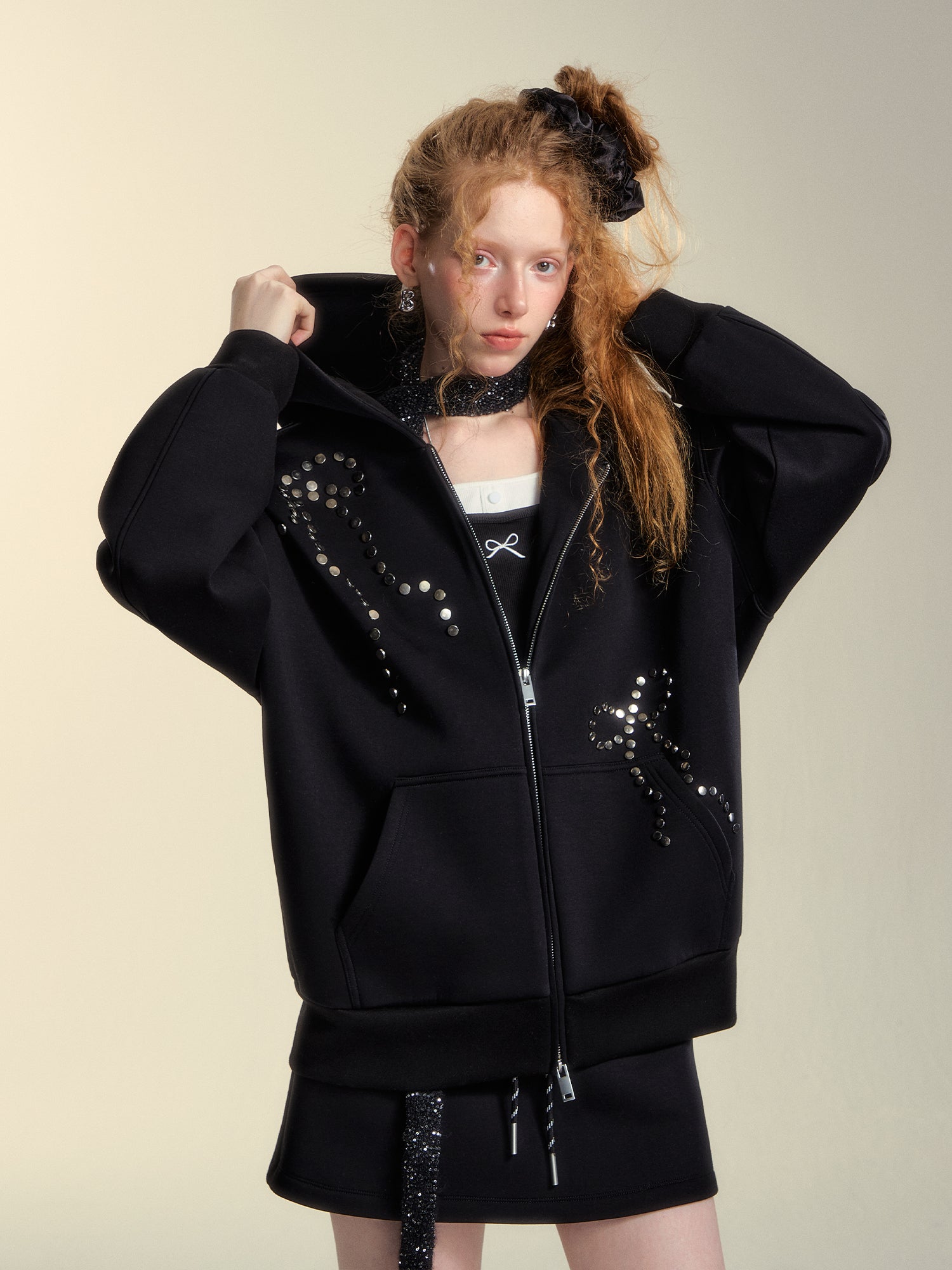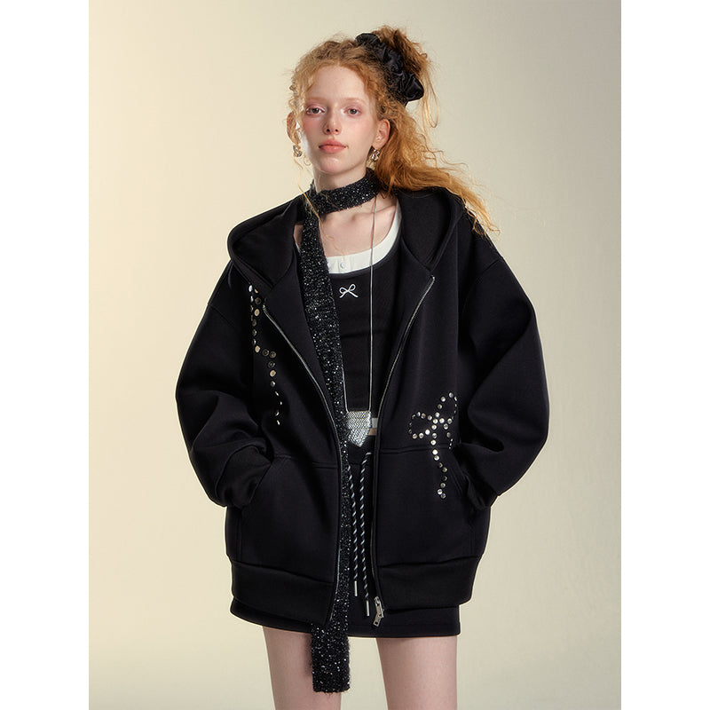 SOMESOWE 2501 蝴蝶结铆钉连帽外套