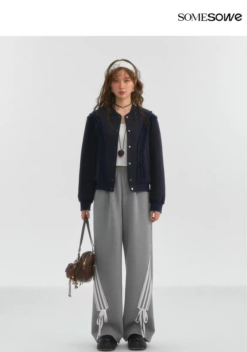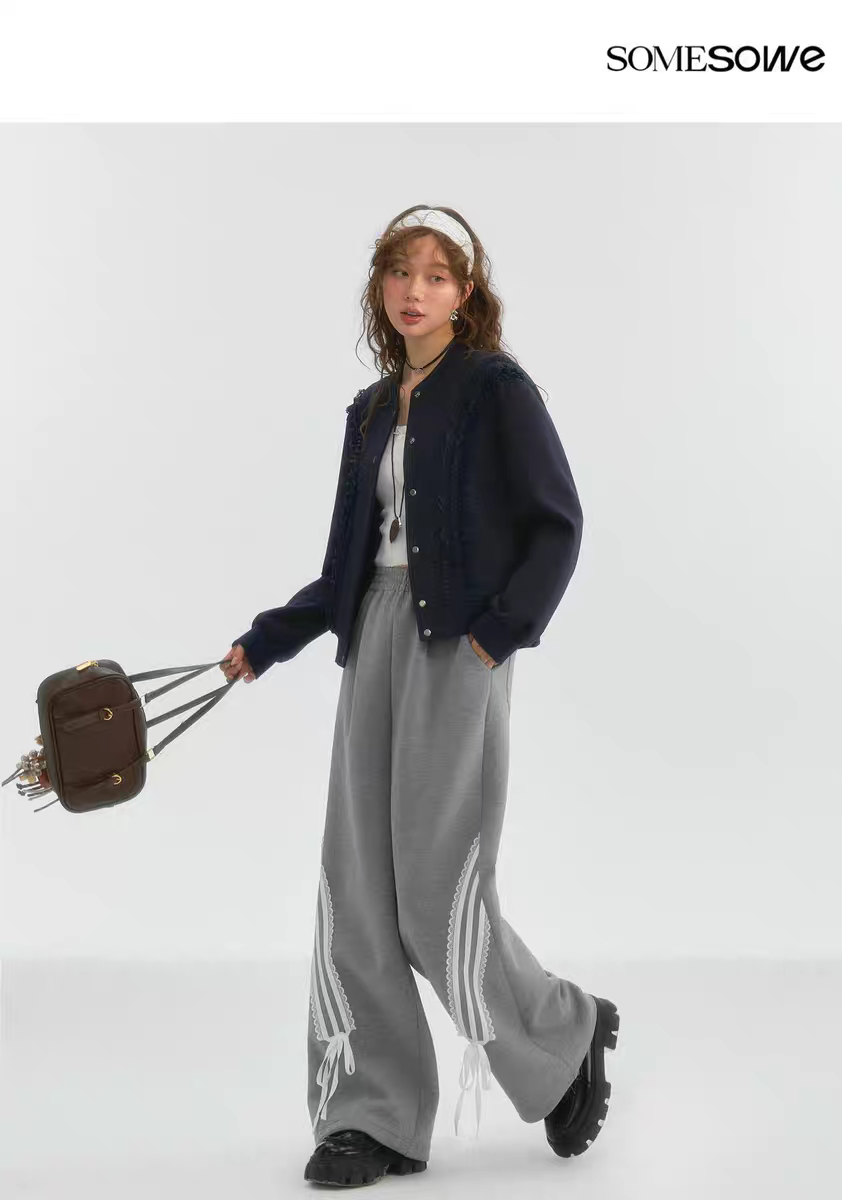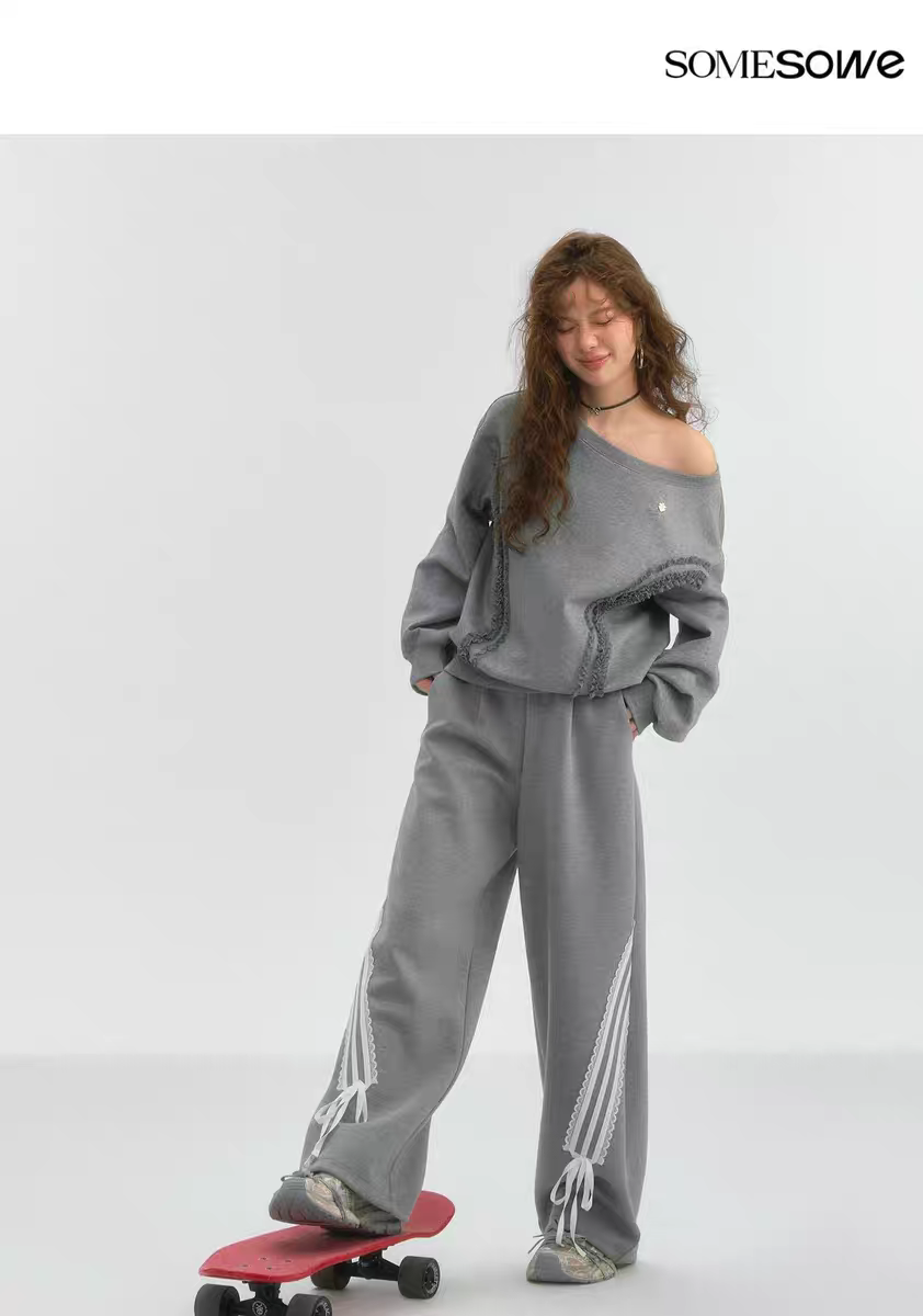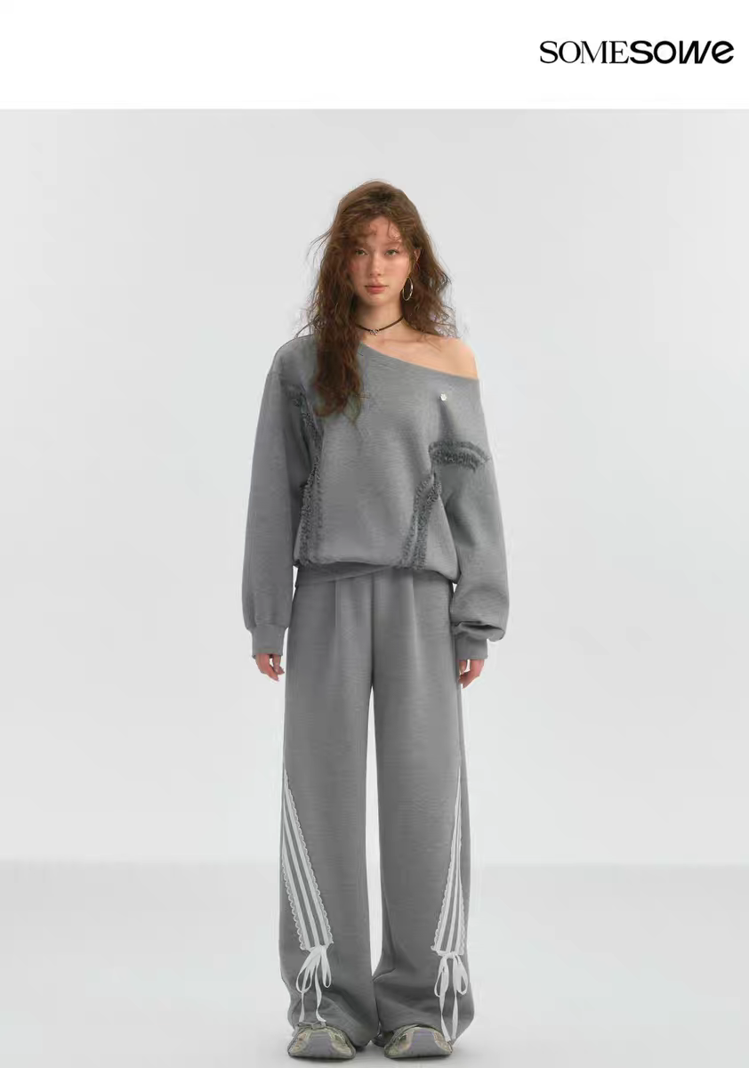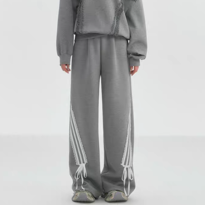 SOMESOWE 2503 蕾丝蝴蝶结休闲长裤 灰