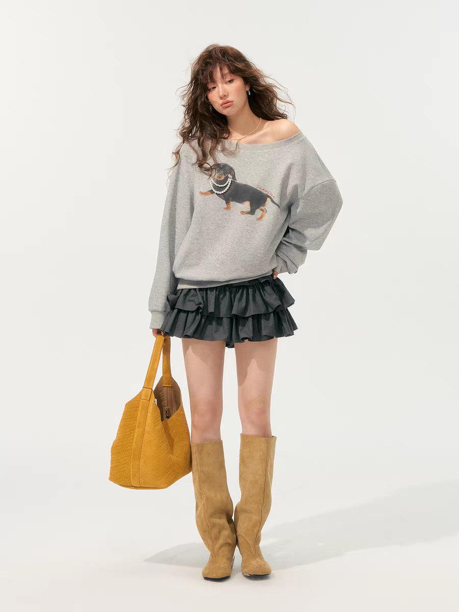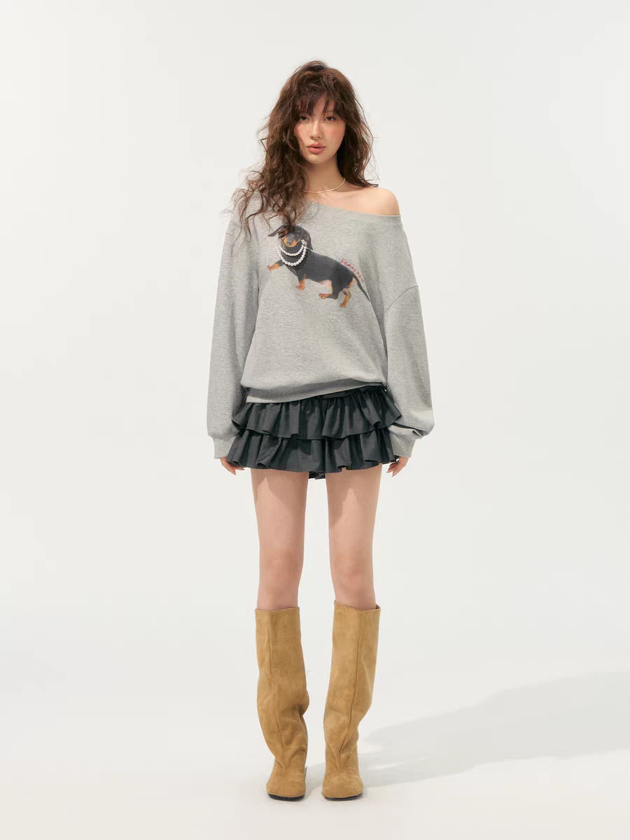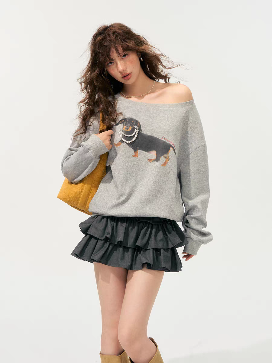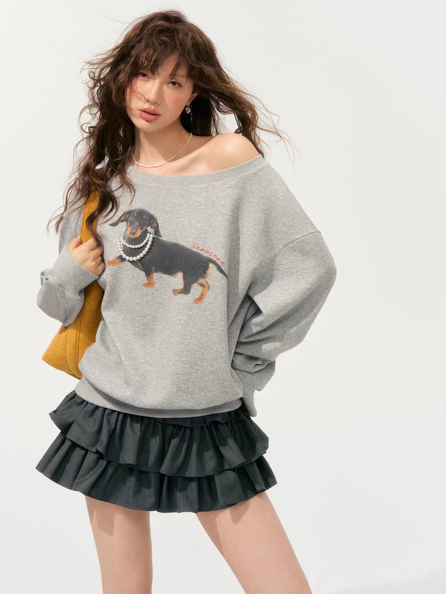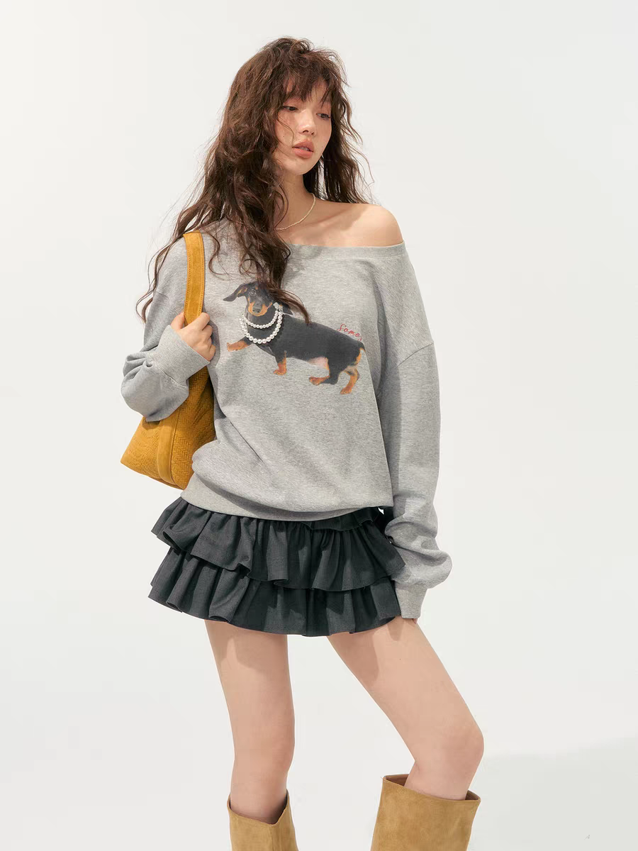 SOMESOWE 2509 珍珠腊肠狗斜肩卫衣