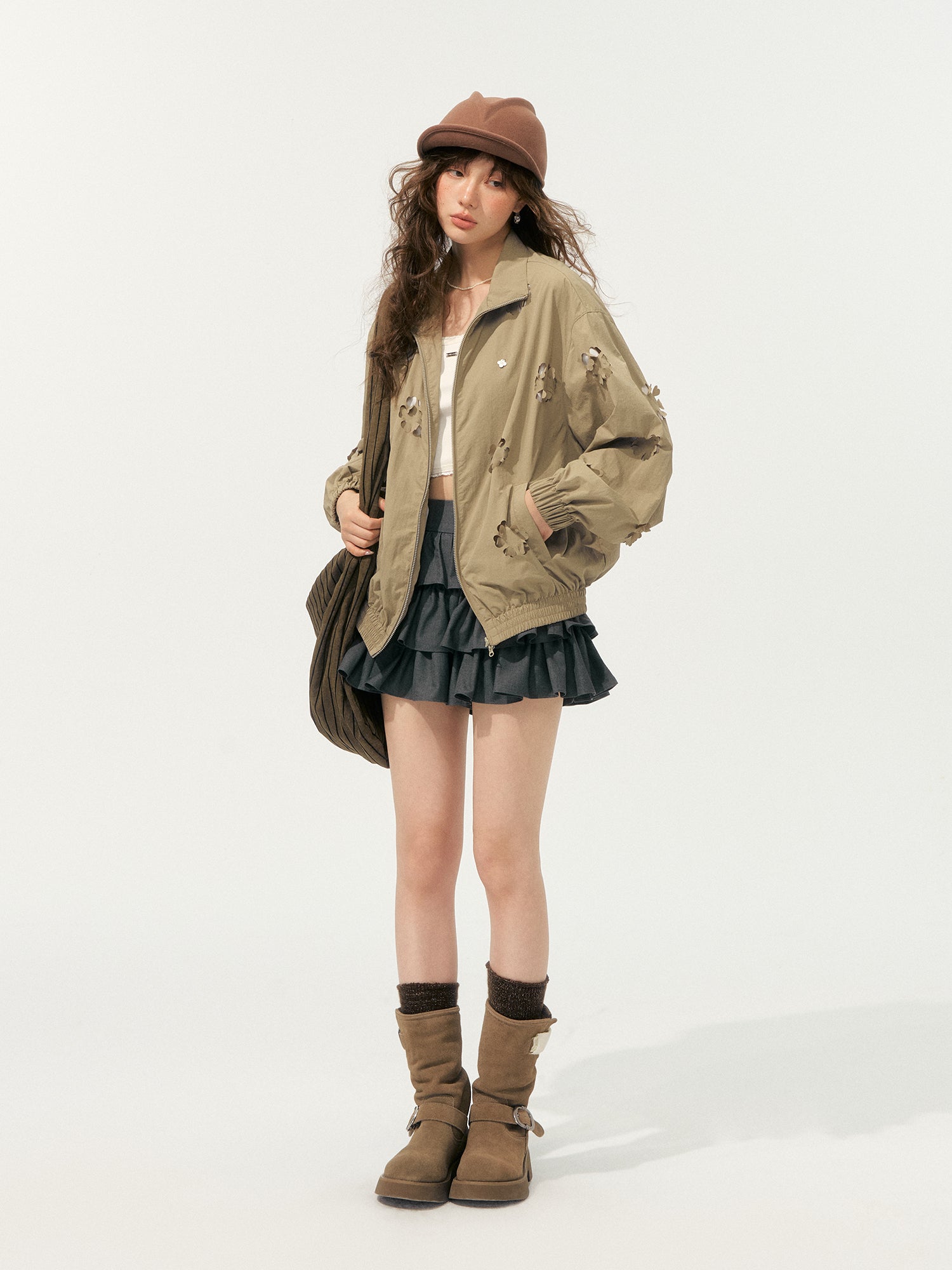 SOMESOWE 2509 芭蕾风荷叶边蛋糕裙裤 深灰