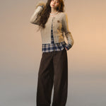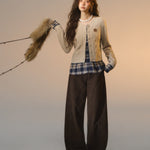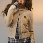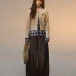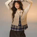 SOMESOWE 2512 假两件格纹拼接绞花开衫 杏