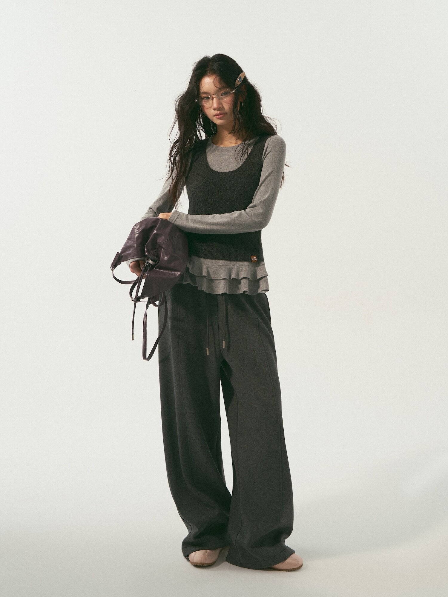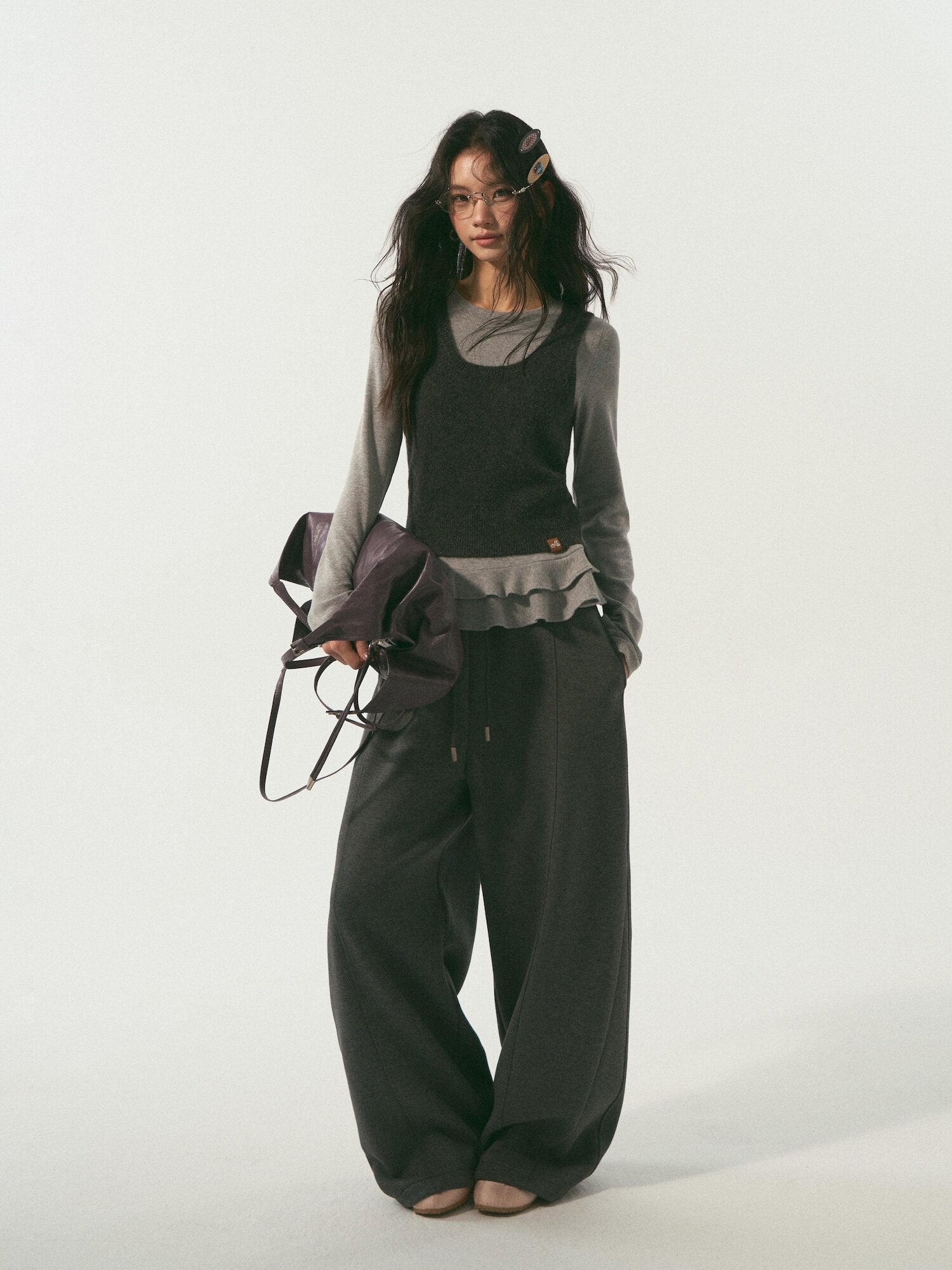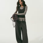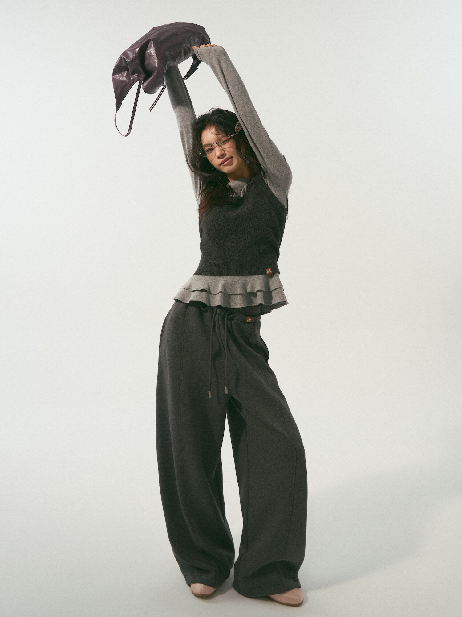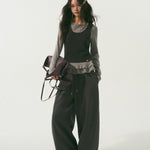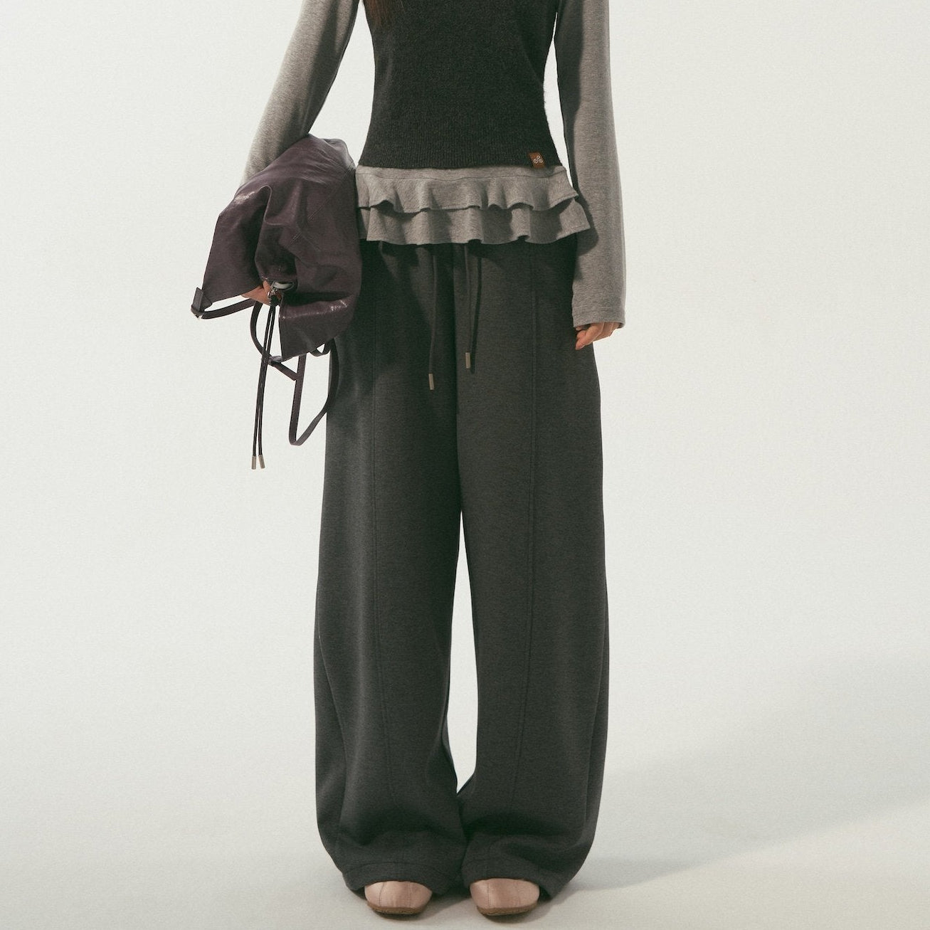 SOMESOWE 2602 松弛感双腰头弯刀卫裤 深灰