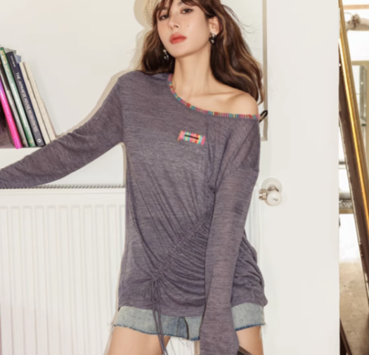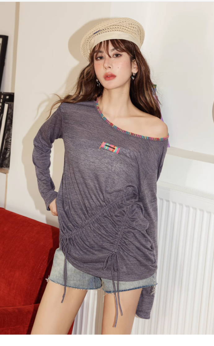 SOMESOWE SS2306 彩虹缝线半透抽褶防晒衣 蓝