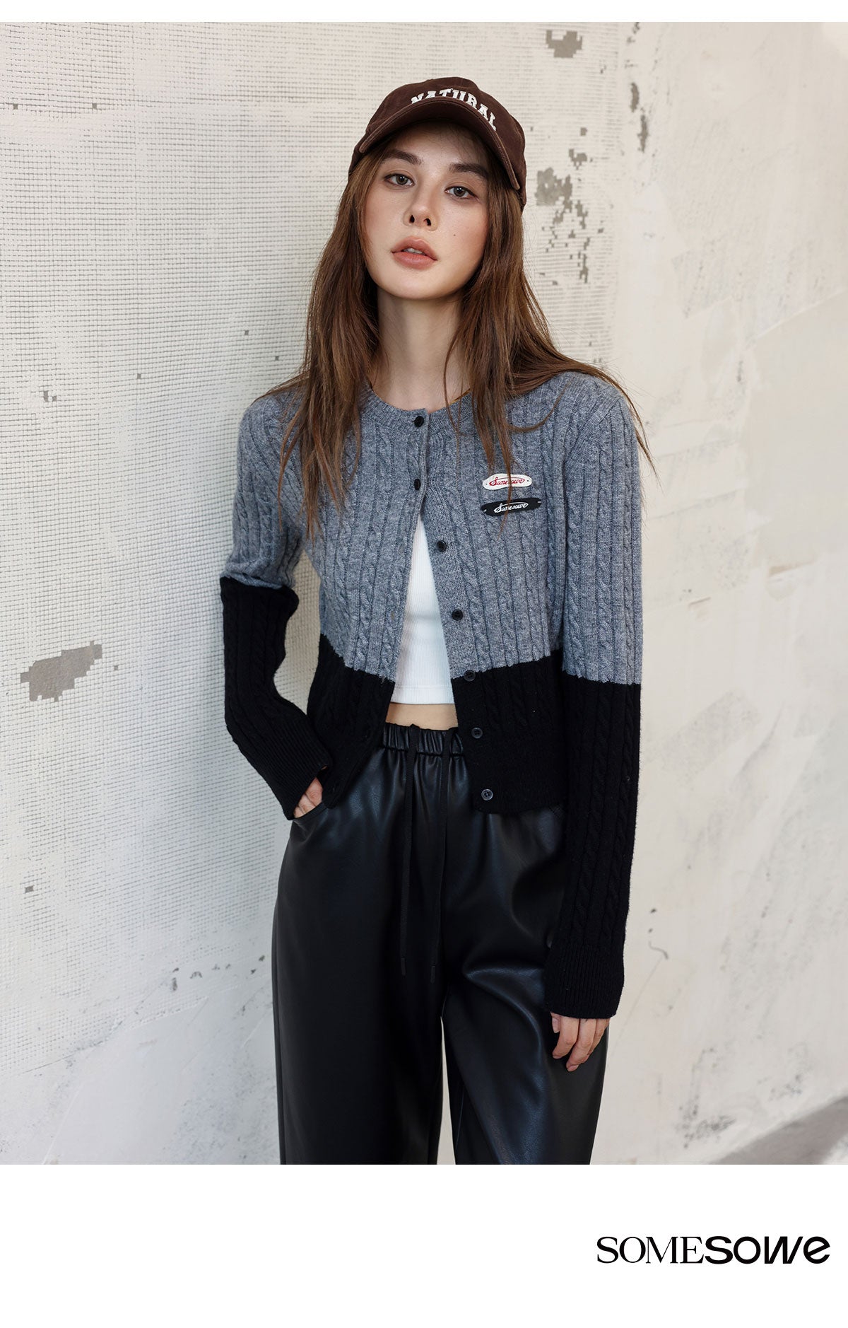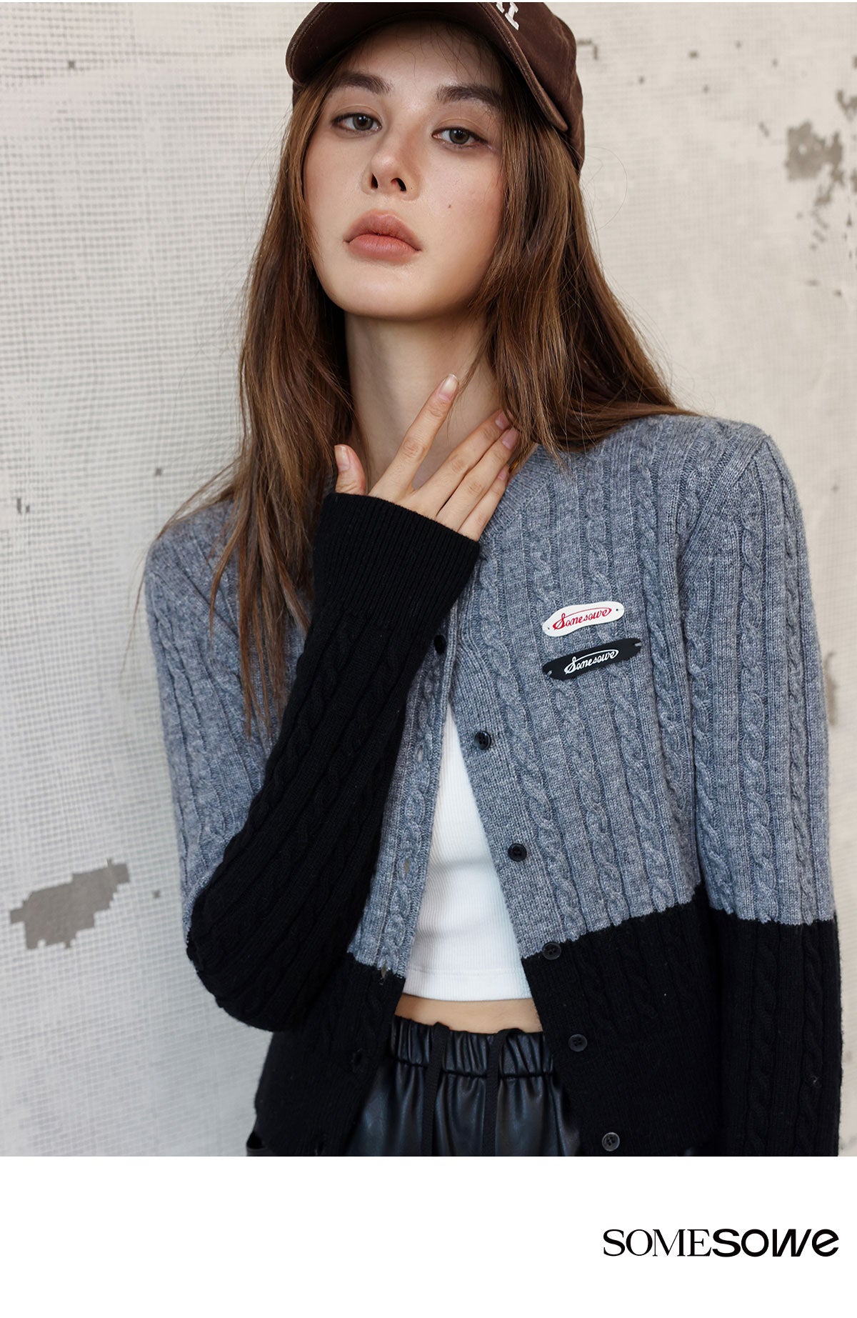 SOMESOWE SS2309 Ivy风拼色麻花羊毛针织开衫 灰
