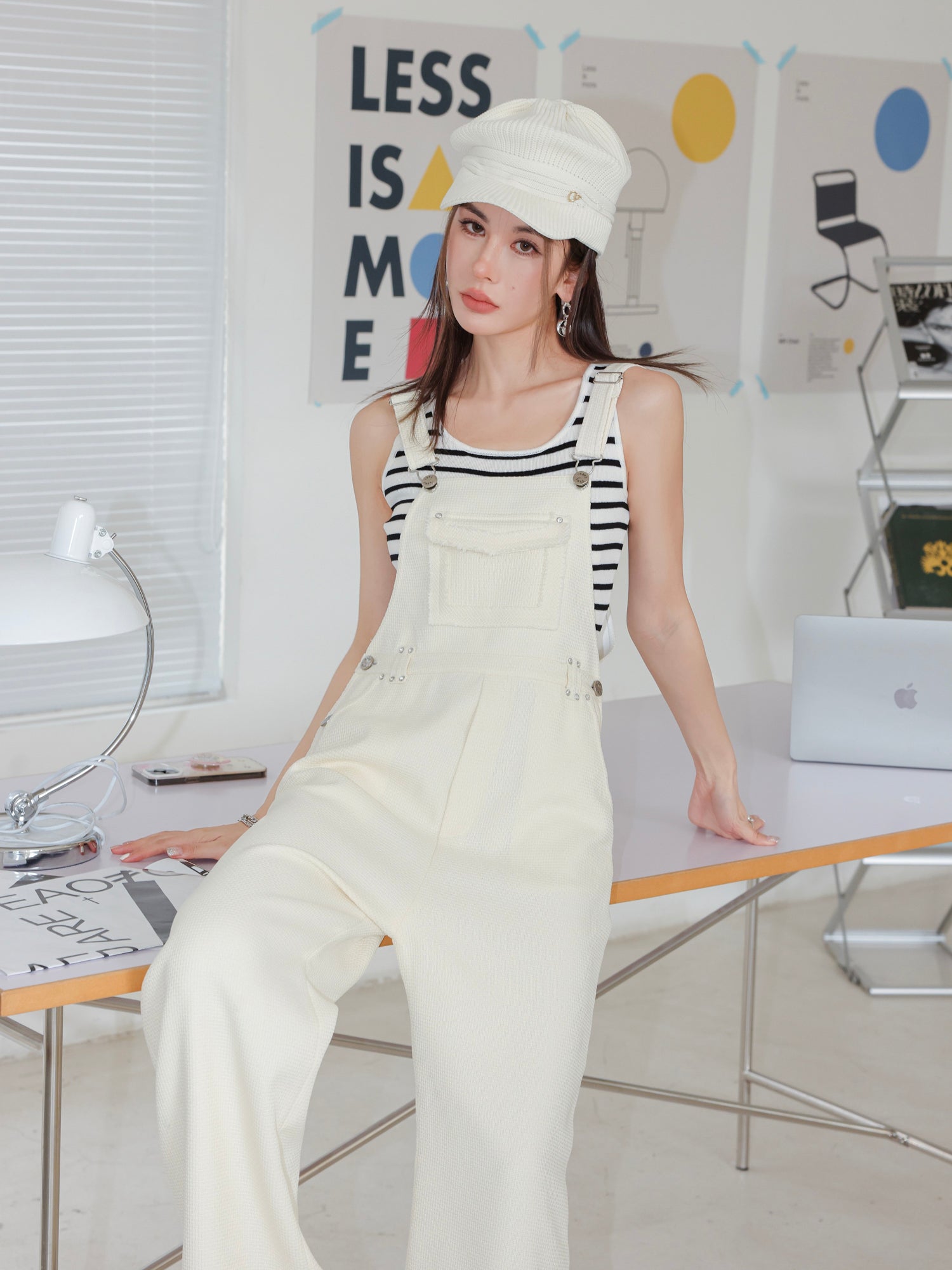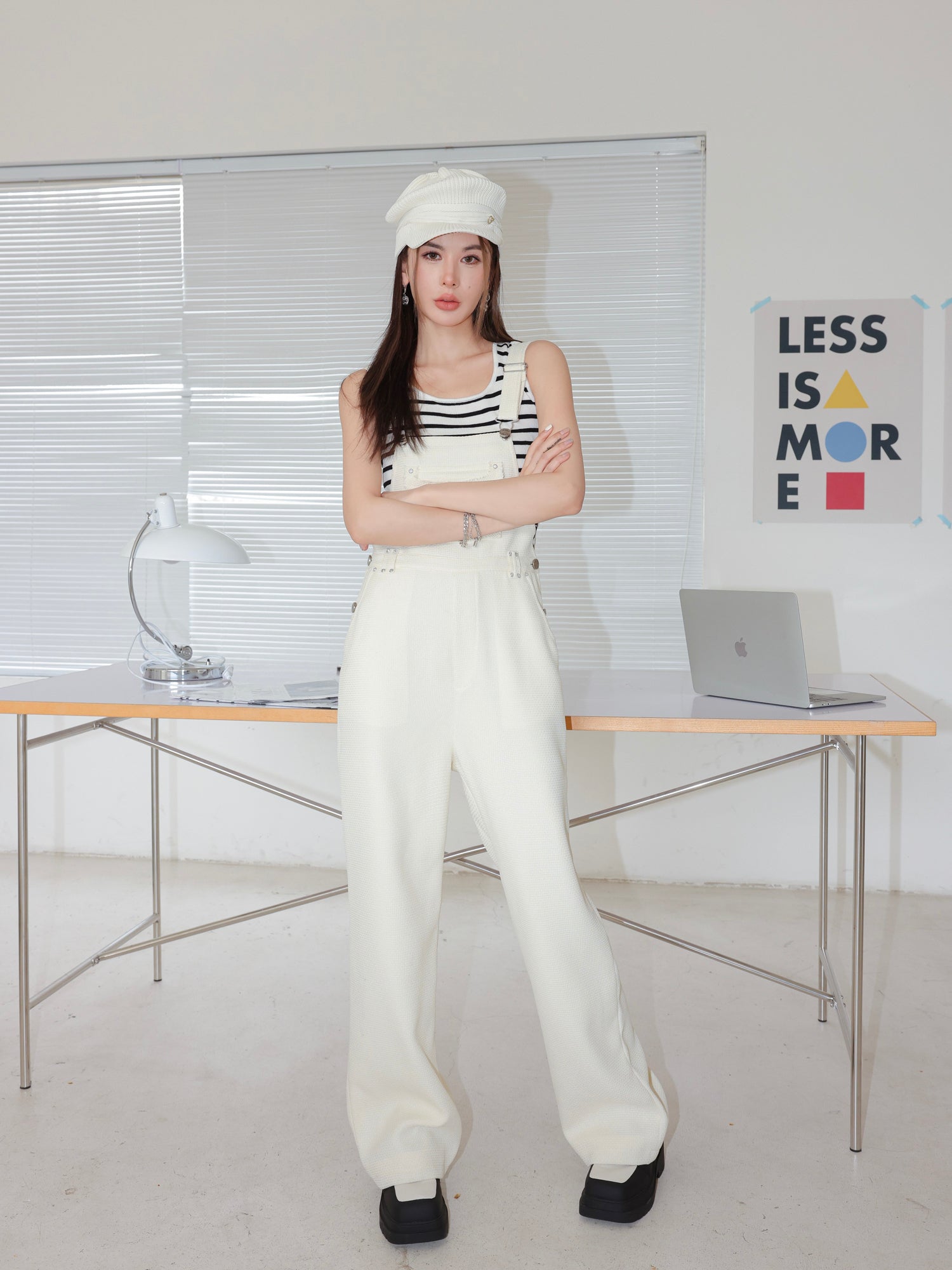 SOMESOWE SS2310 纯色肌理背带裤 白