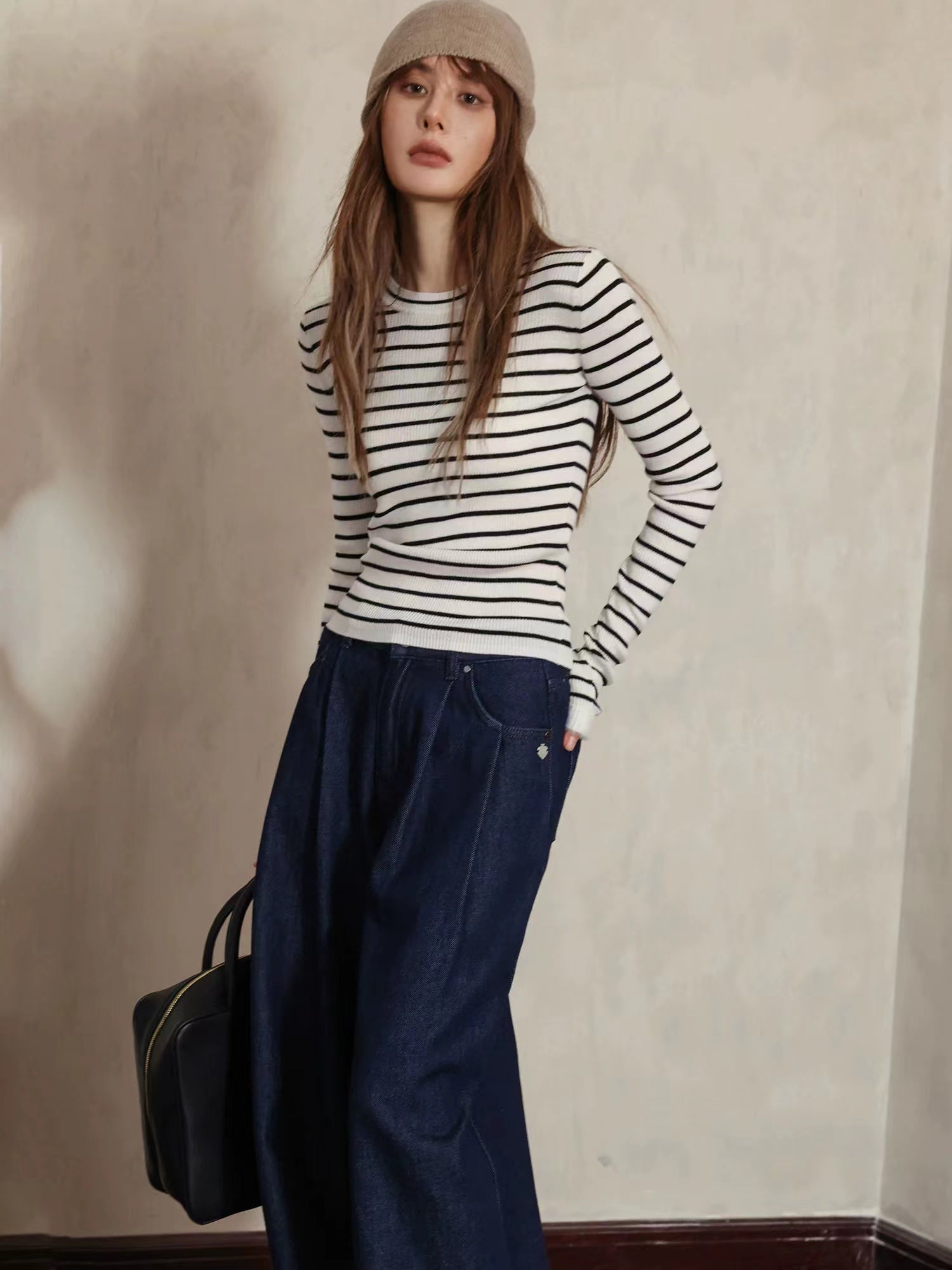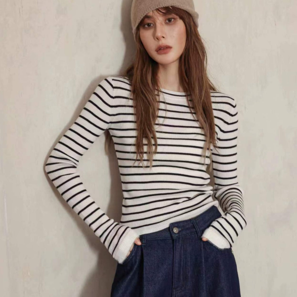 SOMESOWE SS2312 条纹羊毛修身打底 白条