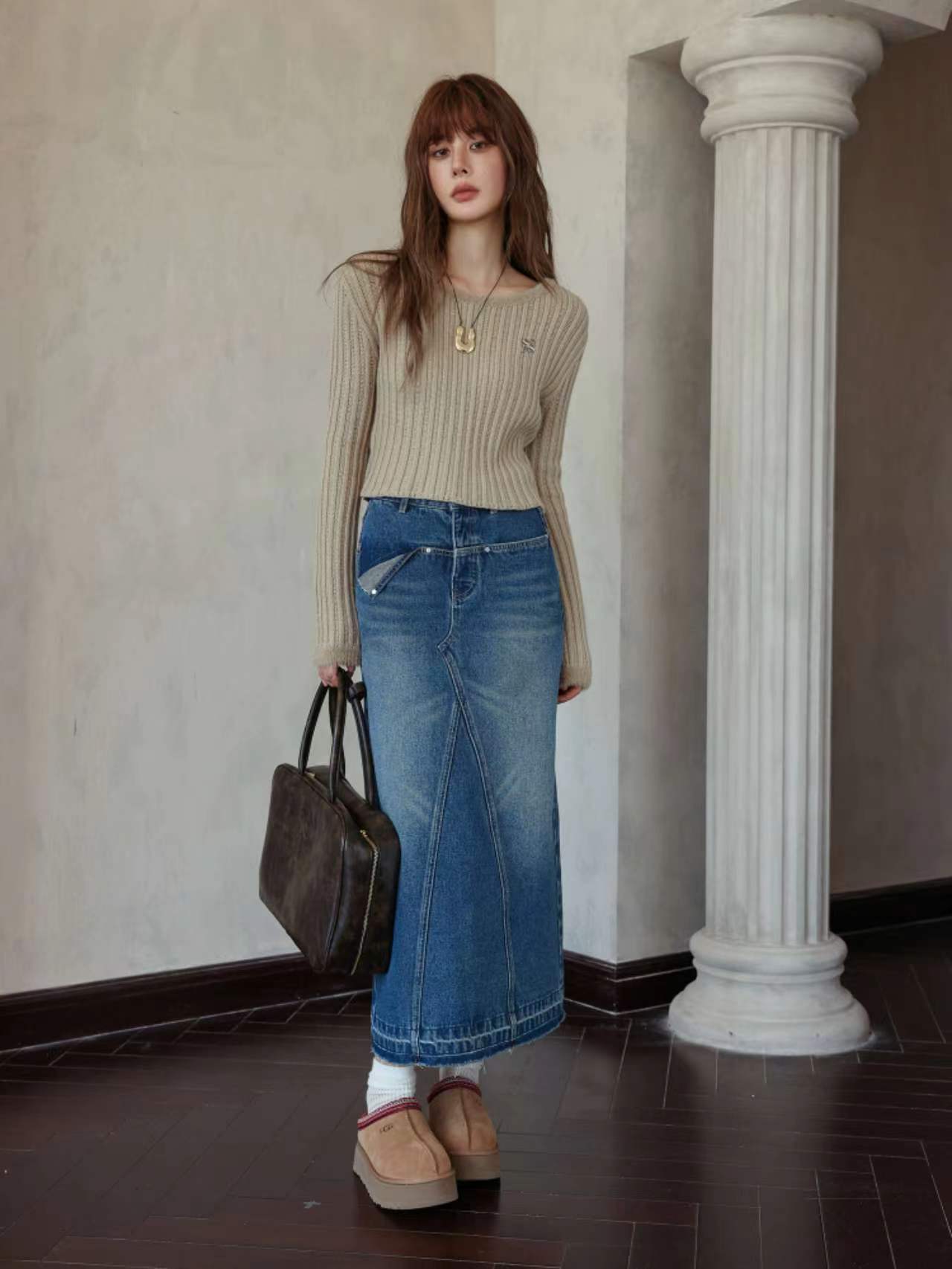 SOMESOWE SS2312 毛绒拼接圆领针织衫