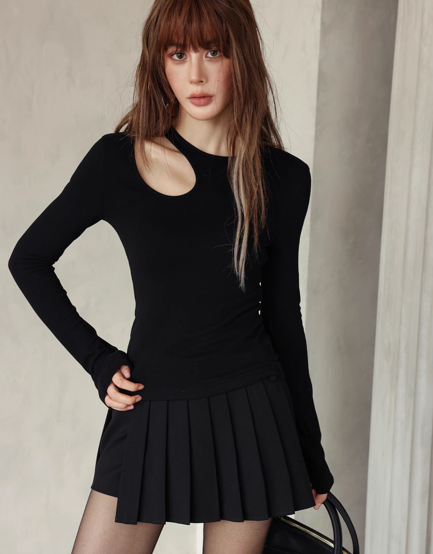 SOMESOWE SS2312 蓄热恒温镂空打底T恤 黑