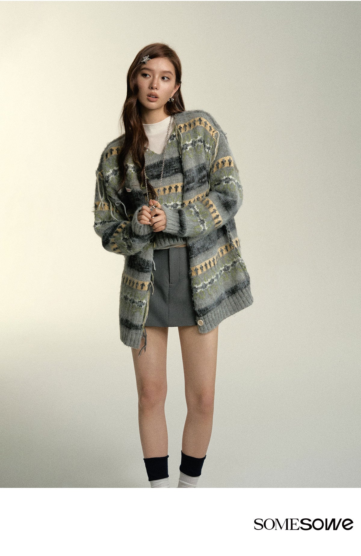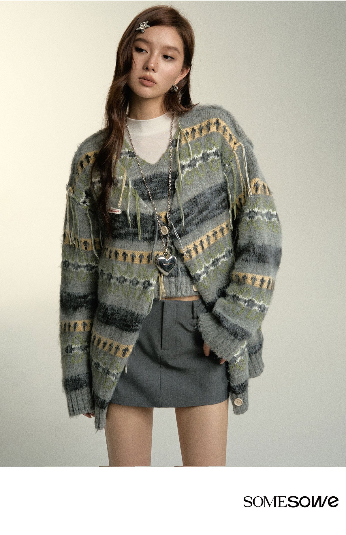SOMESOWE SS2402 慵懒提花流苏长开衫