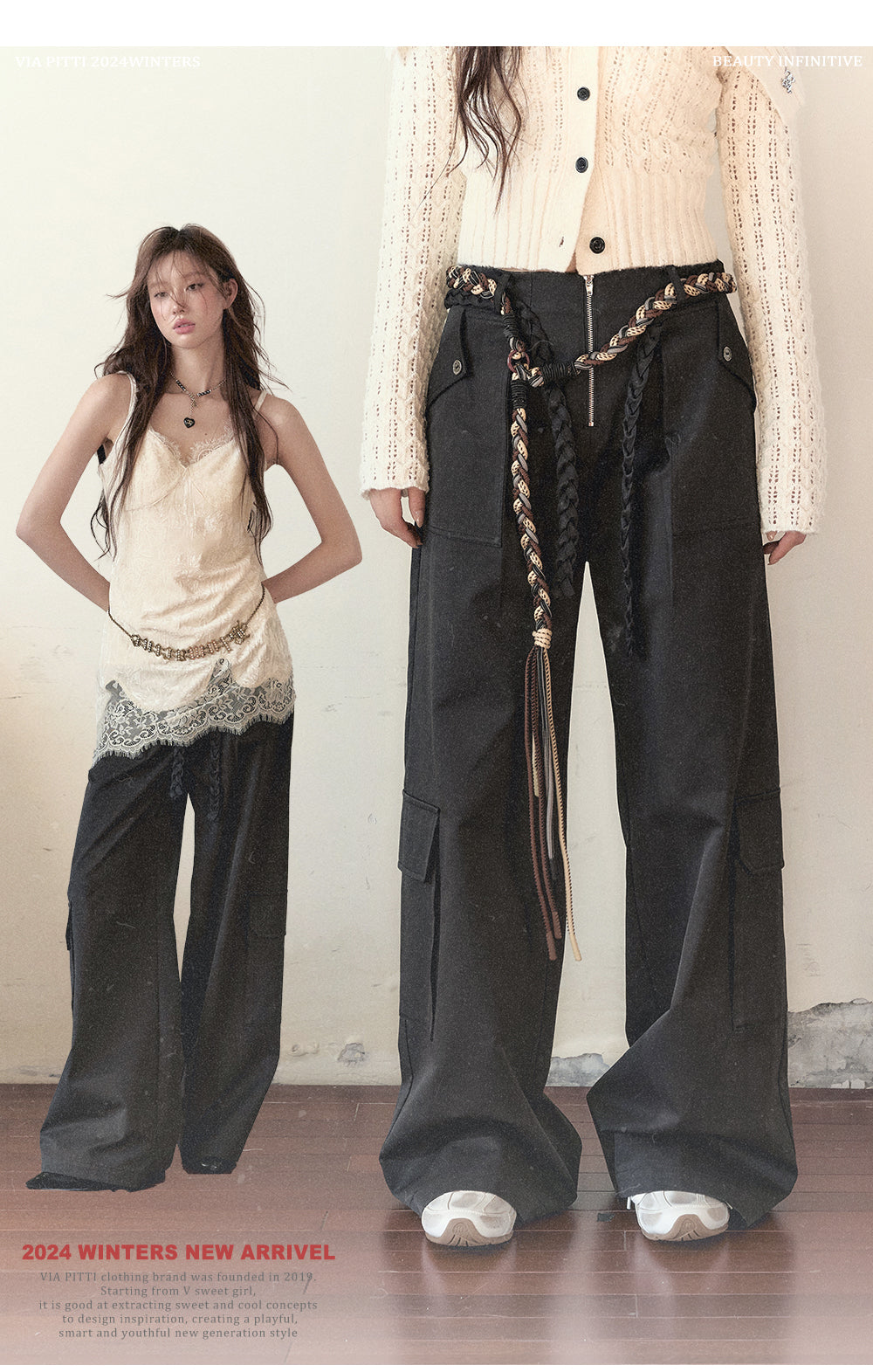 VIA PITTI 2410 编织腰带阔腿裤 黑