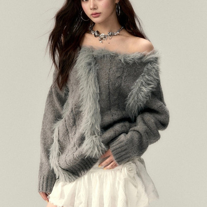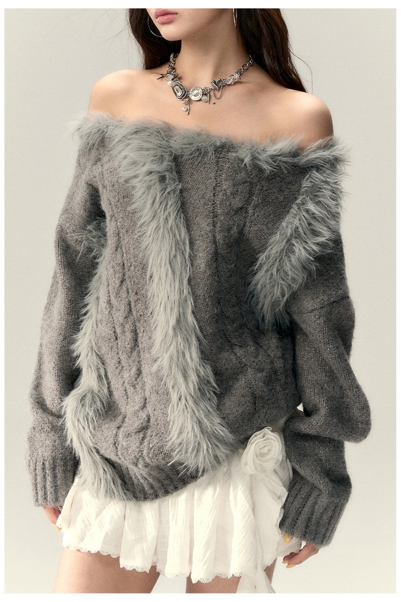 VIA PITTI 2502 一字肩设计感羊毛针织上衣 灰