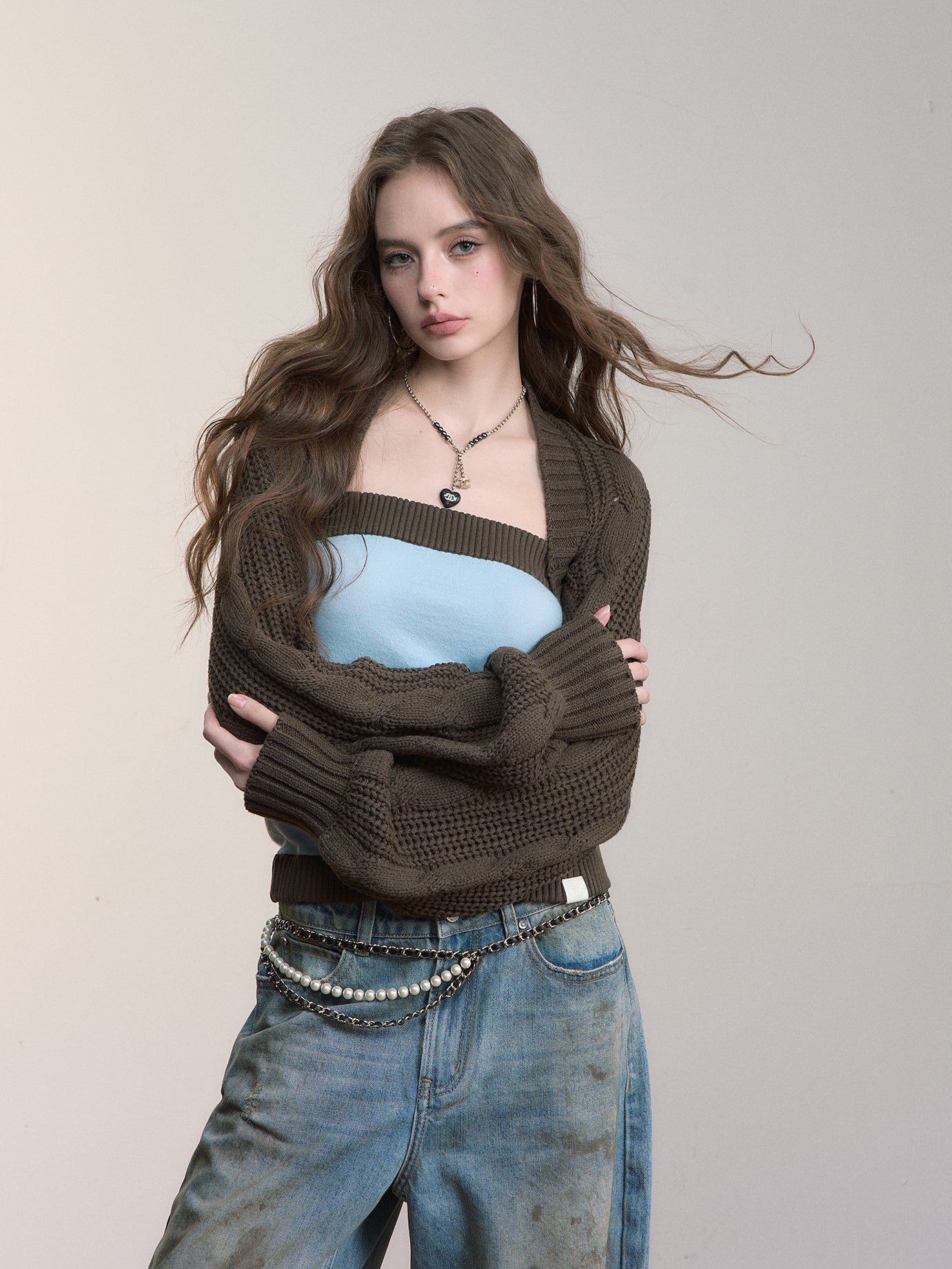 VIA PITTI 2510 简约短款麻花针织开衫 深棕绿