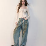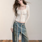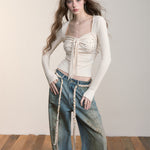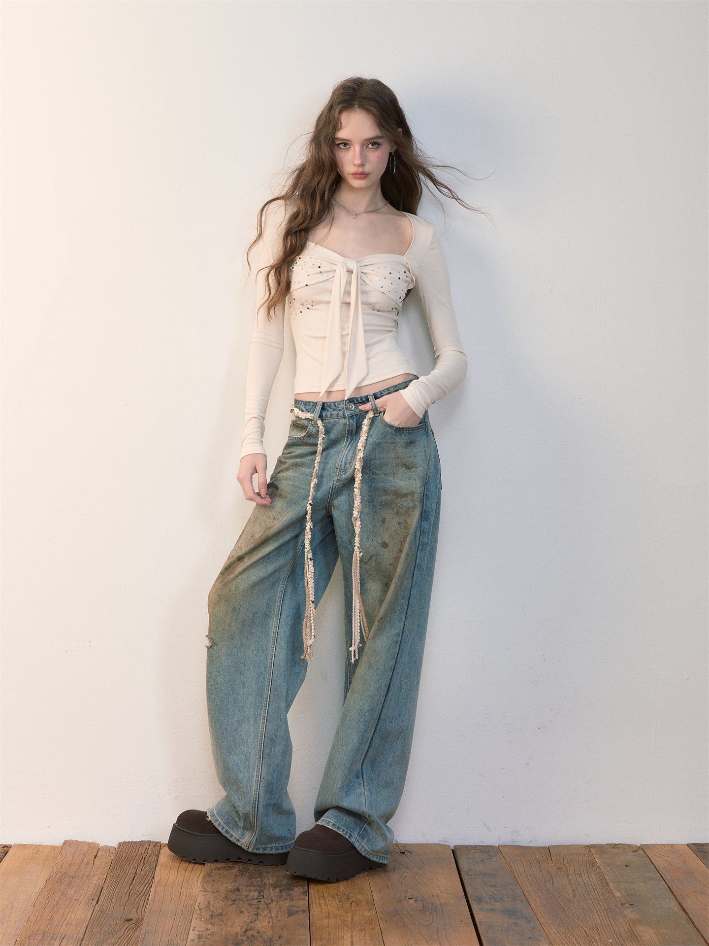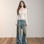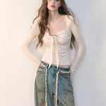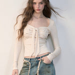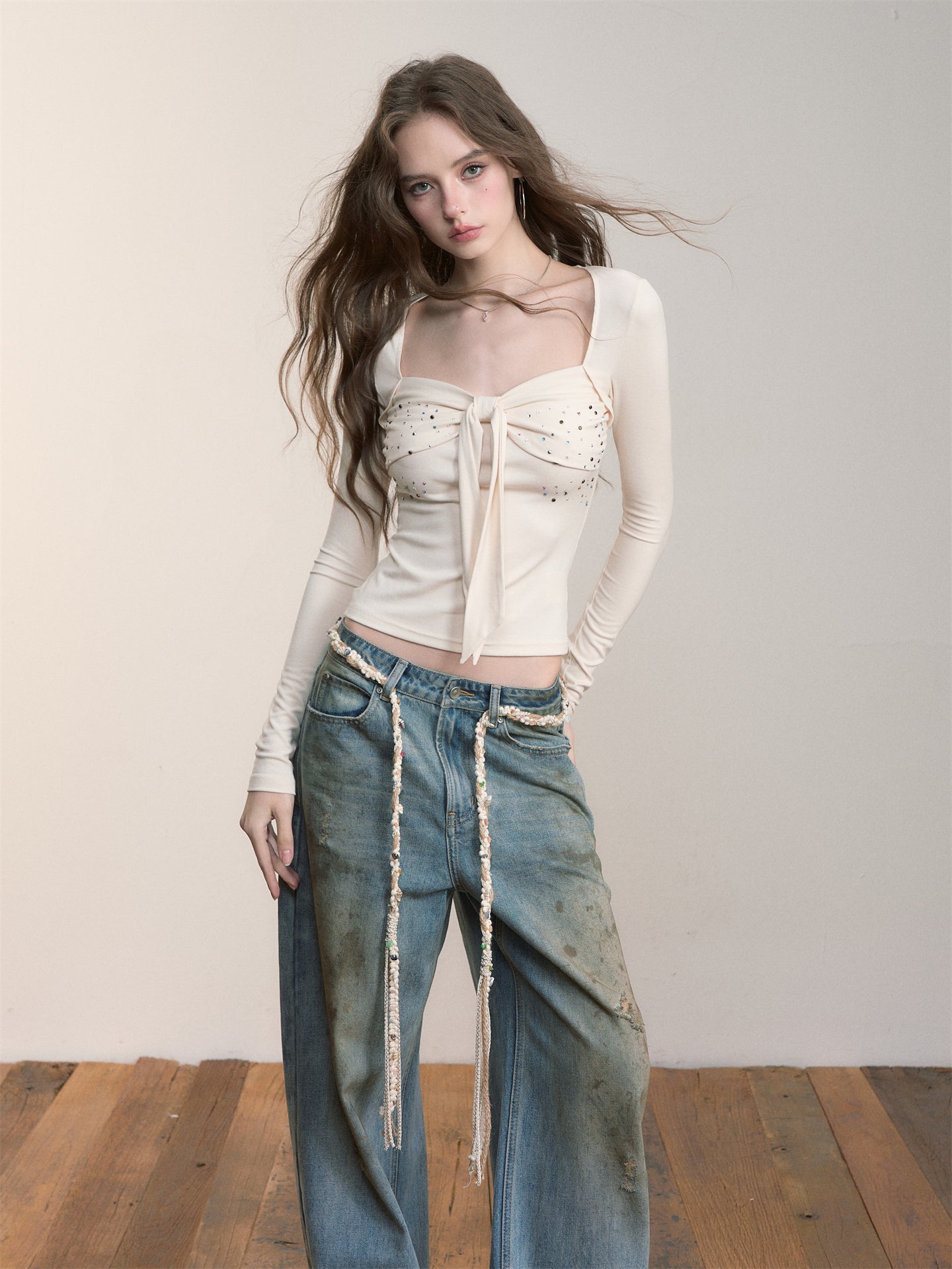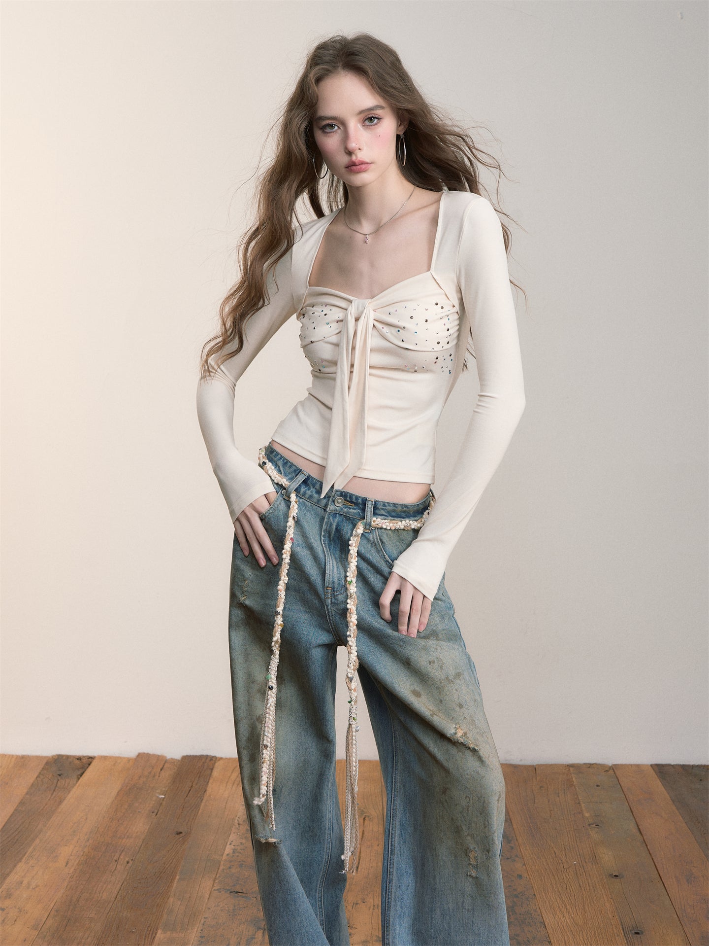 VIA PITTI 2509 设计感蝴蝶结彩色烫钻小衫 奶油米