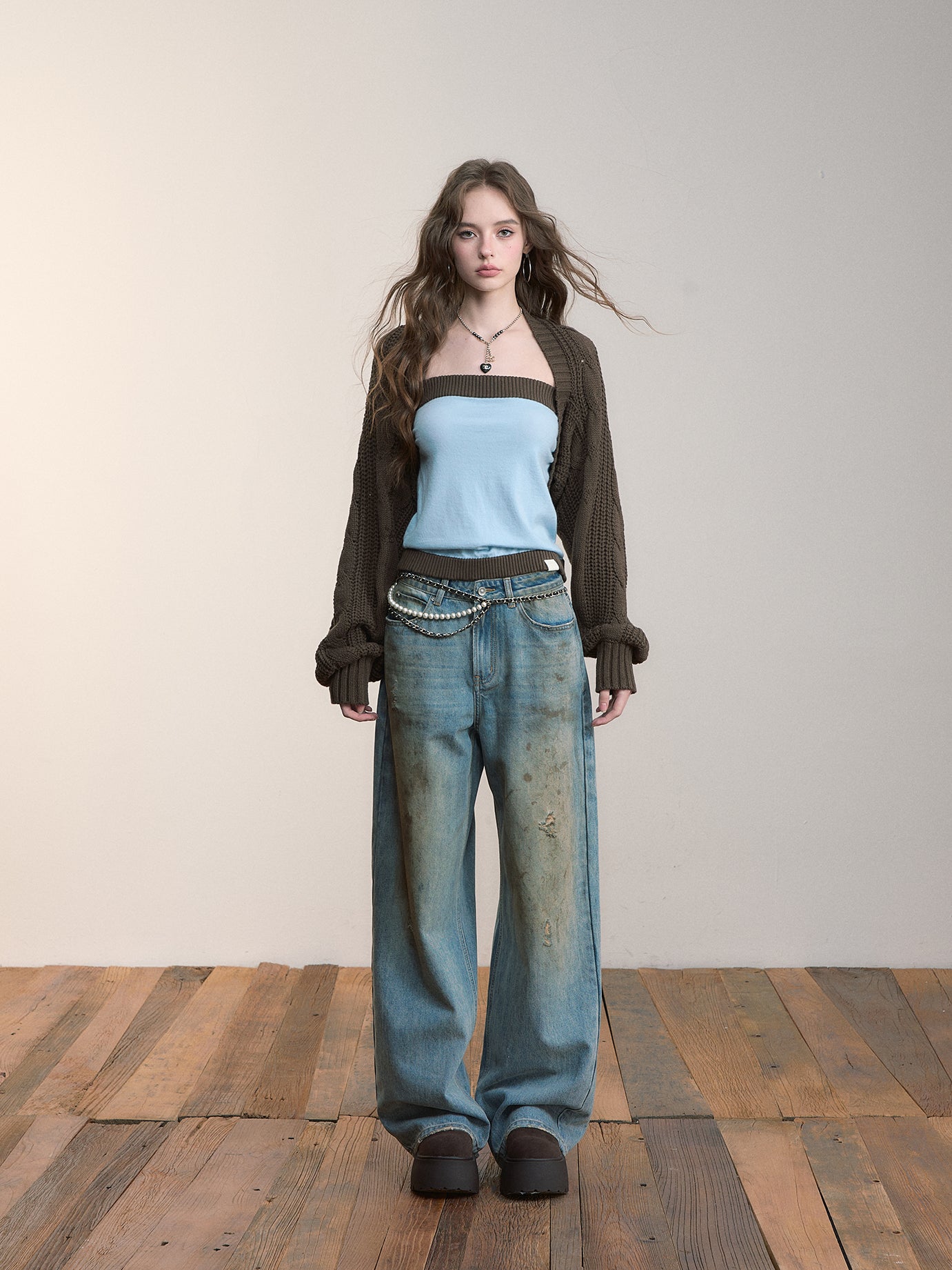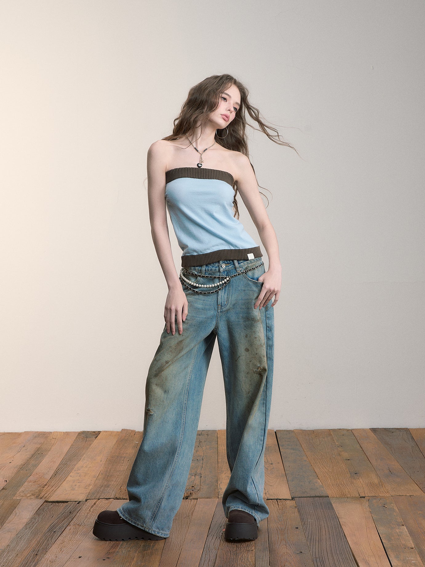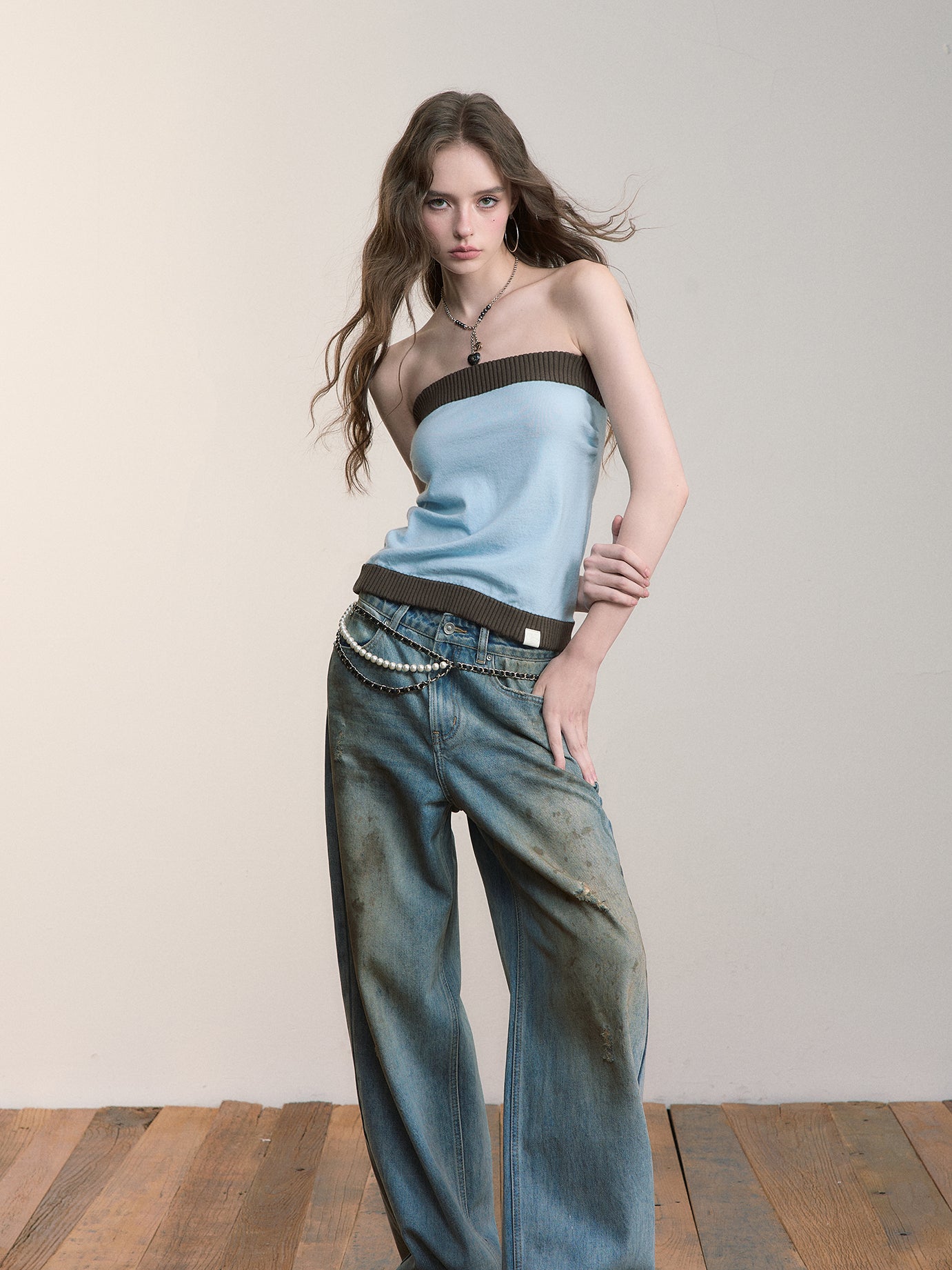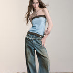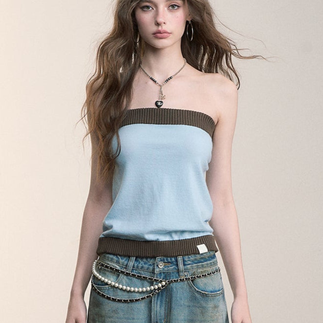 VIA PITTI 2510 拼接撞色针织抹胸 蓝