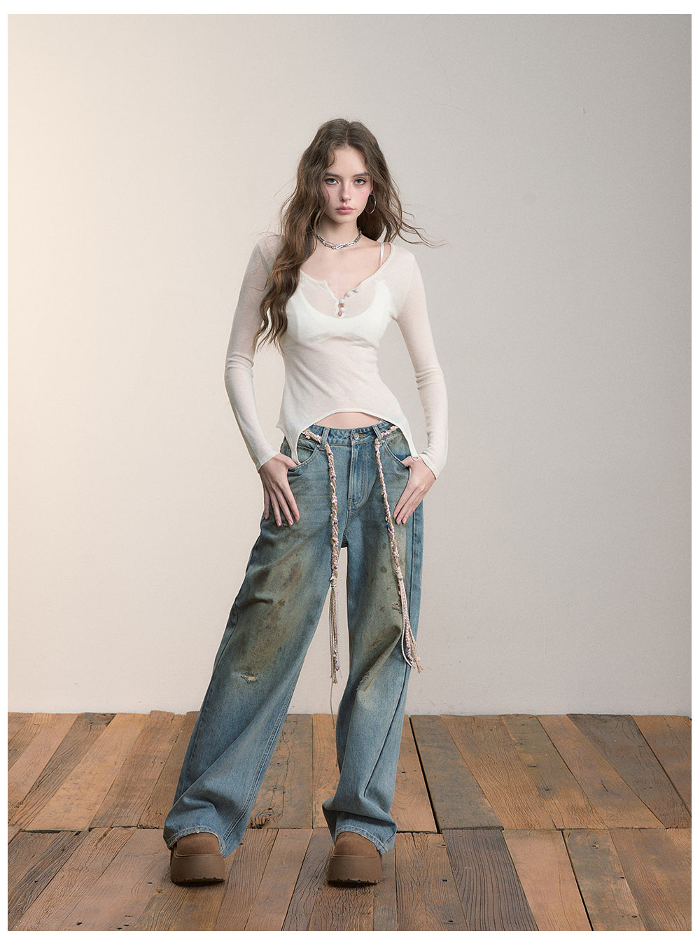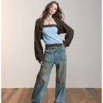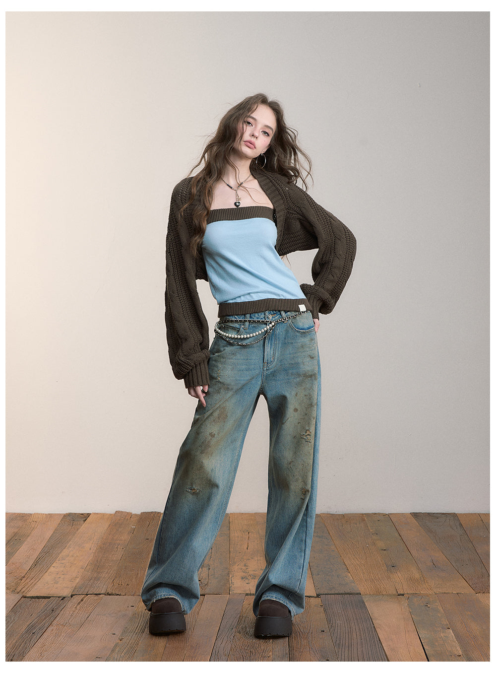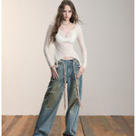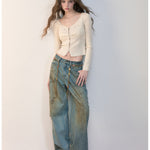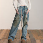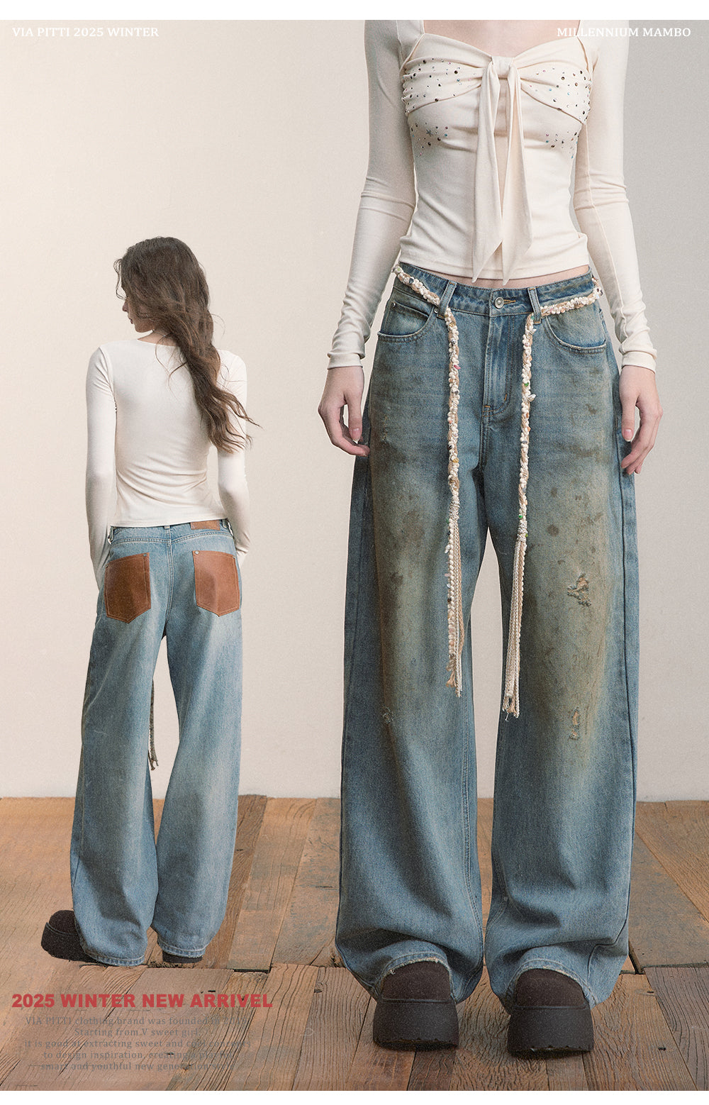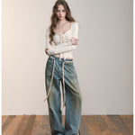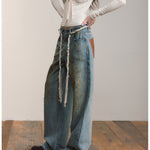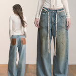 VIA PITTI 2510 重工做旧磨破阔腿牛仔裤 牛仔蓝