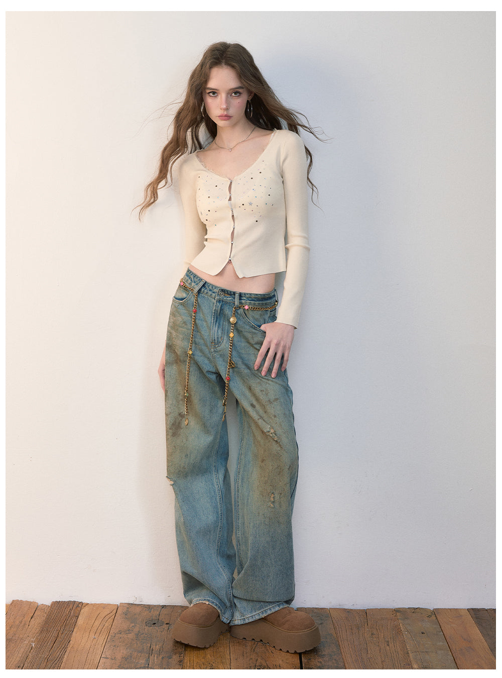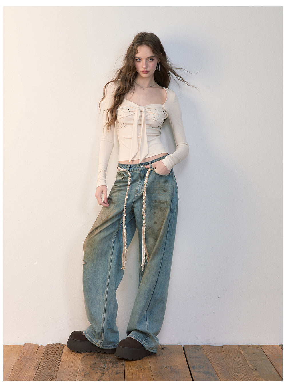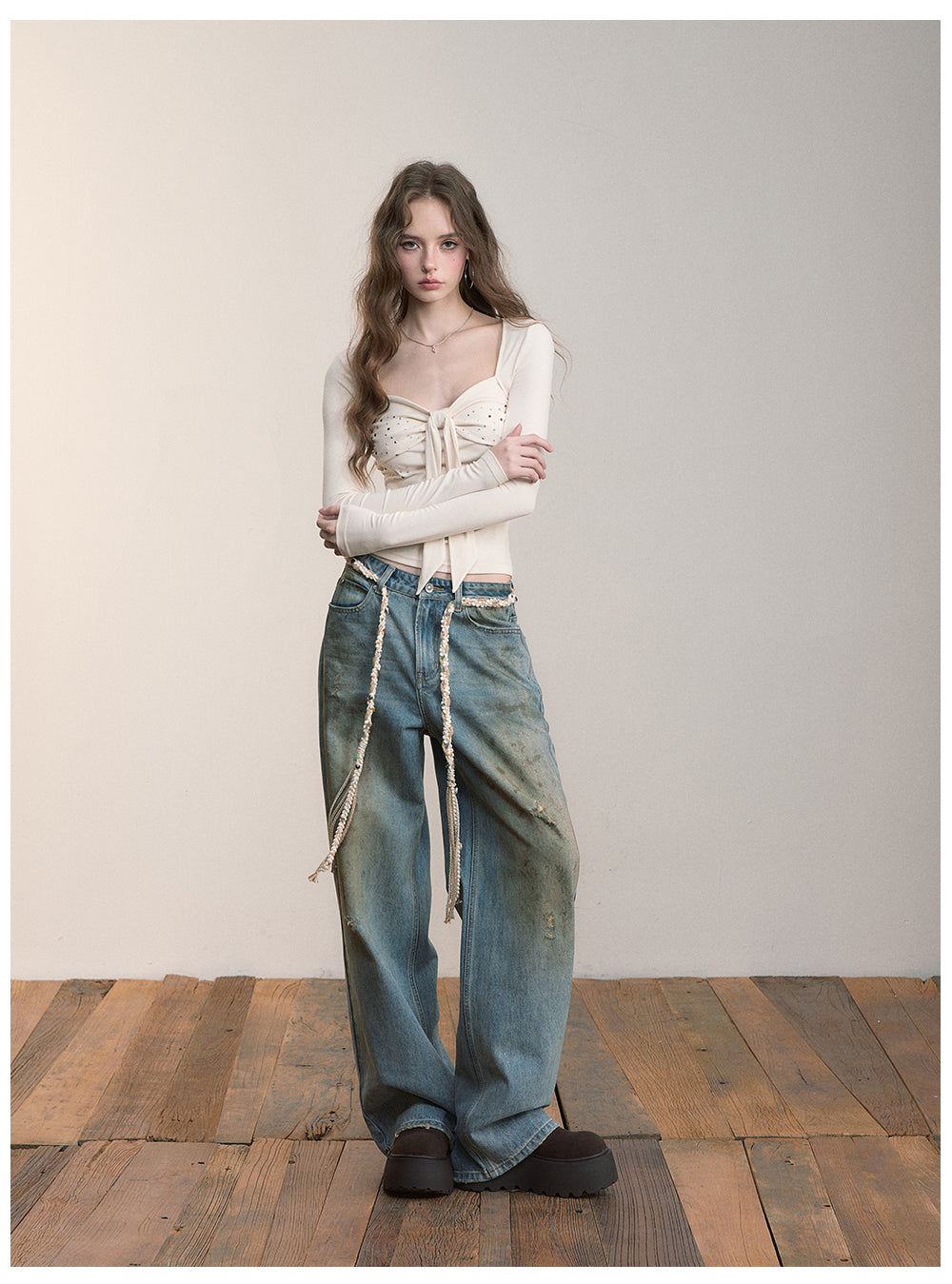 VIA PITTI 2510 重工做旧磨破阔腿牛仔裤 牛仔蓝