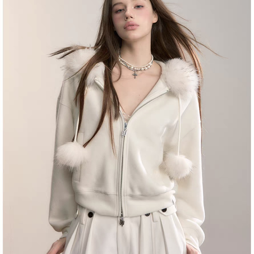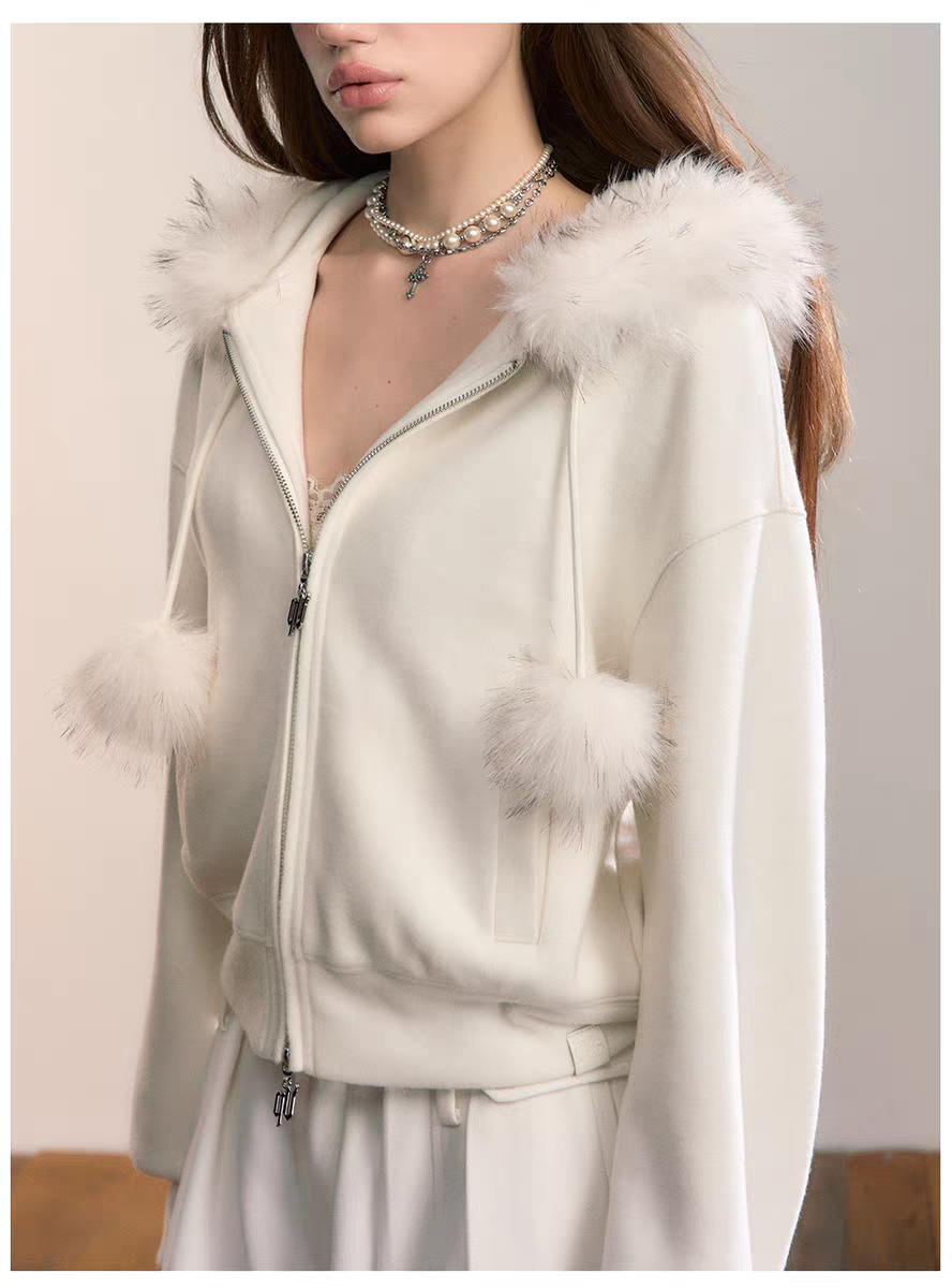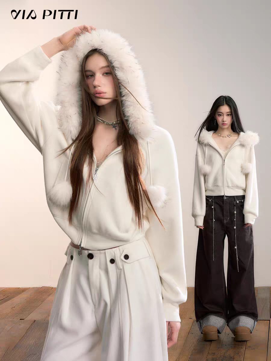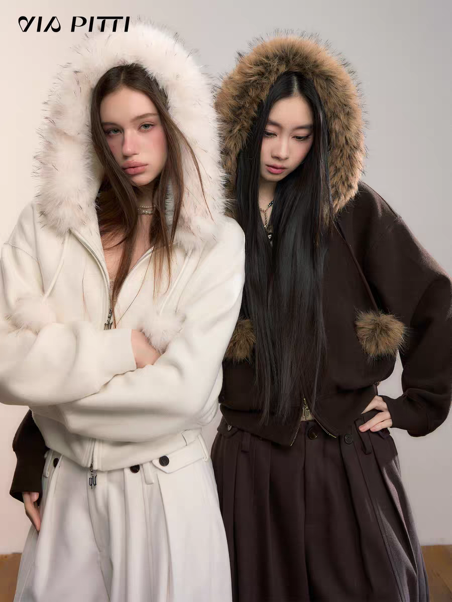 VIA PITTI 2601 设计感毛球加绒毛领外套 云朵白