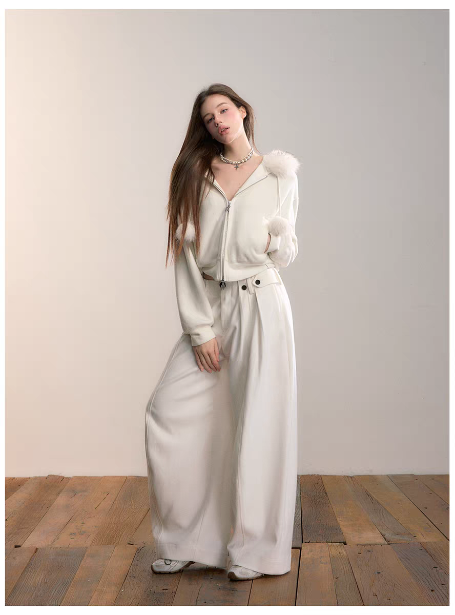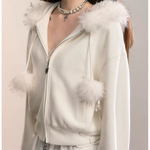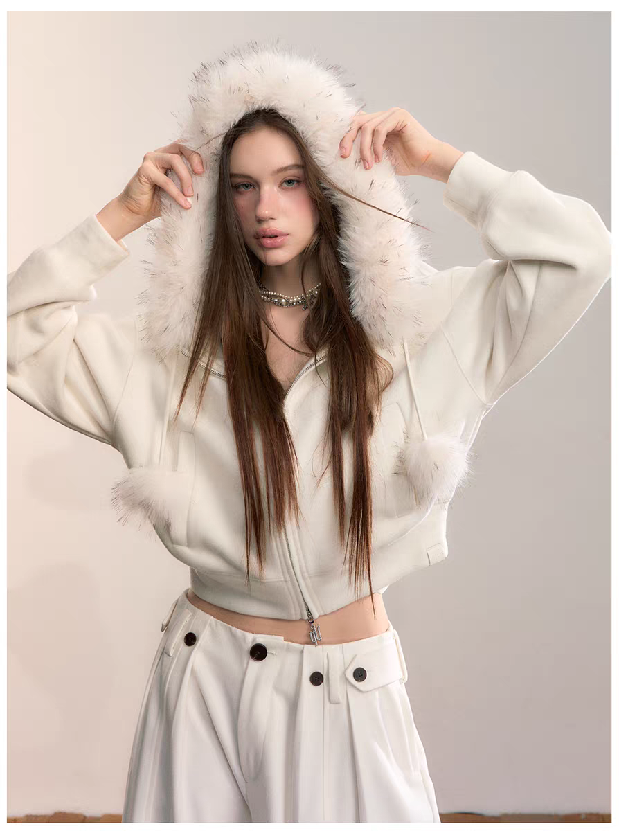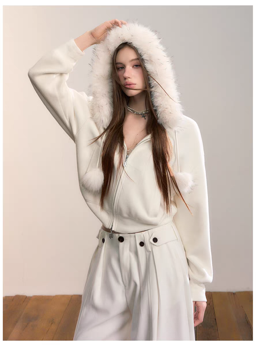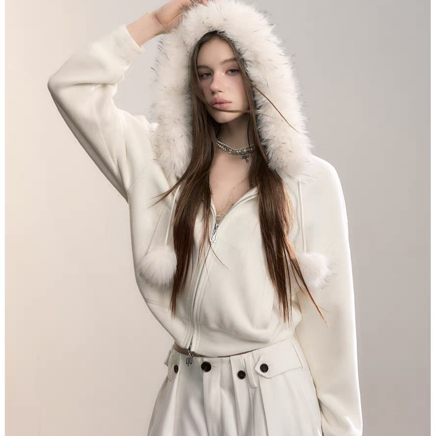VIA PITTI 2601 设计感毛球加绒毛领外套 云朵白