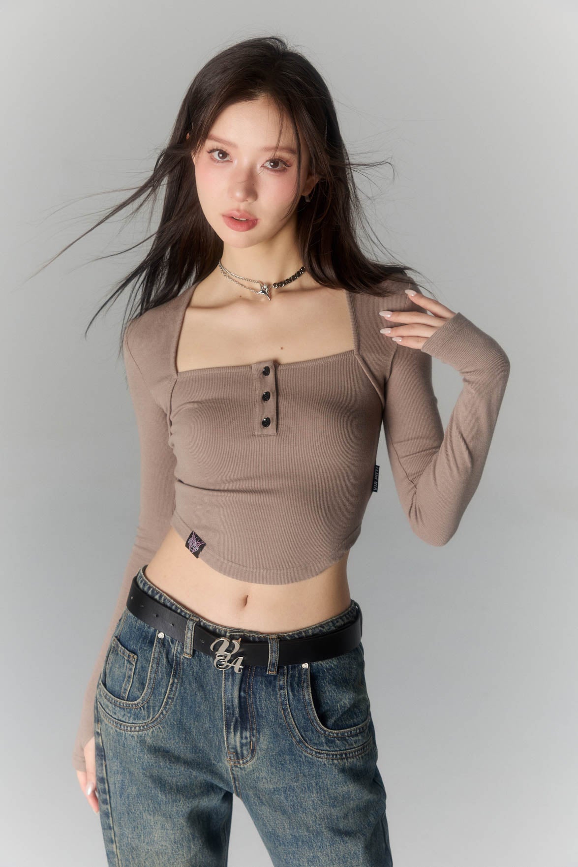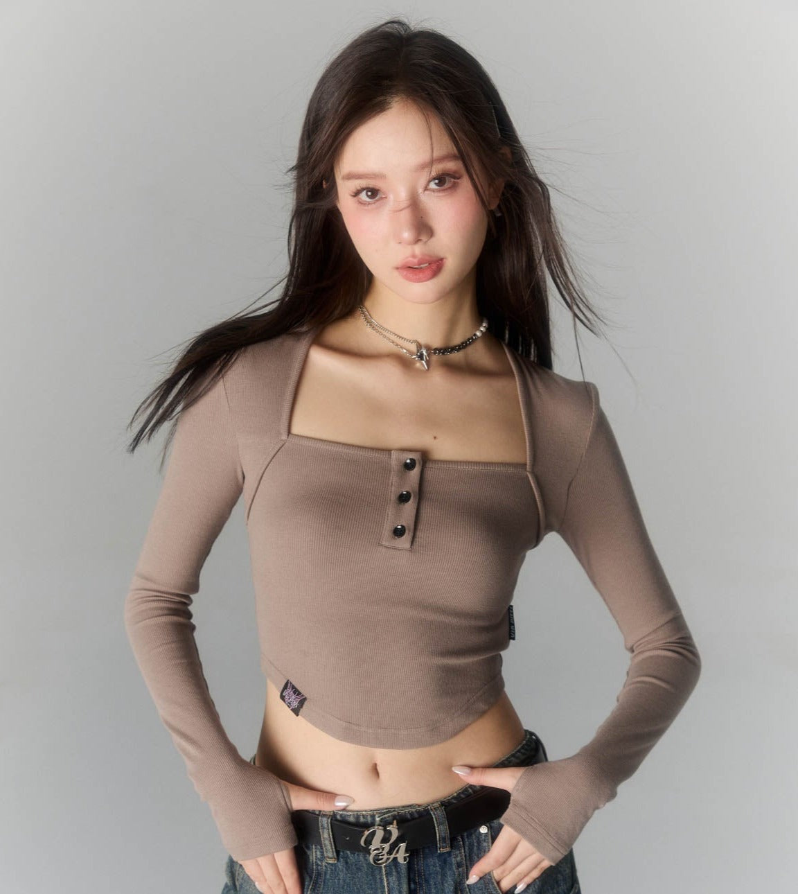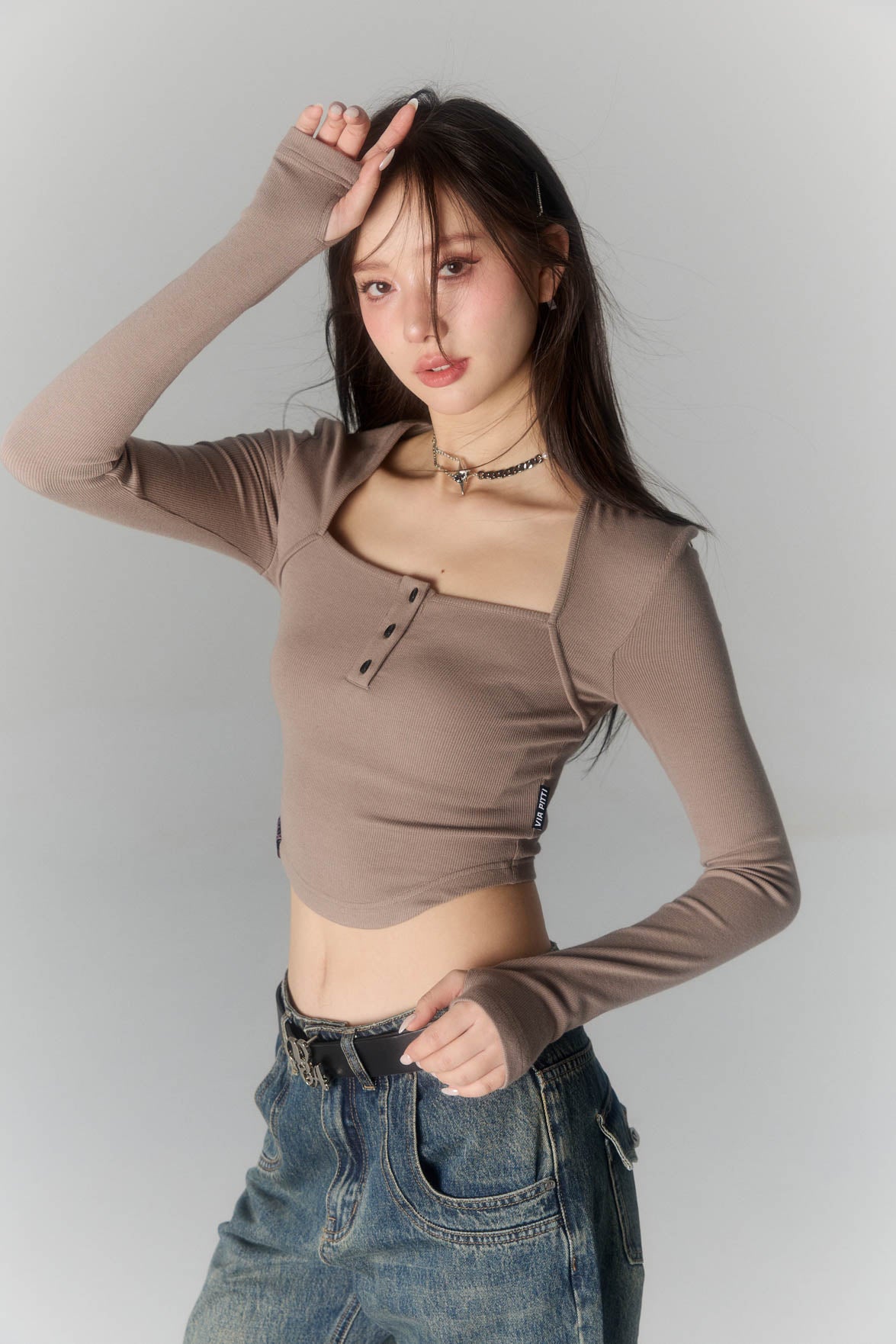 VIA PITTI SS2303 简约系列方领休闲T 深咖
