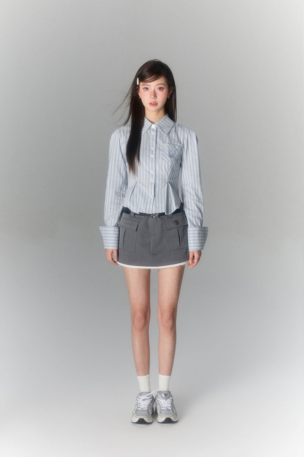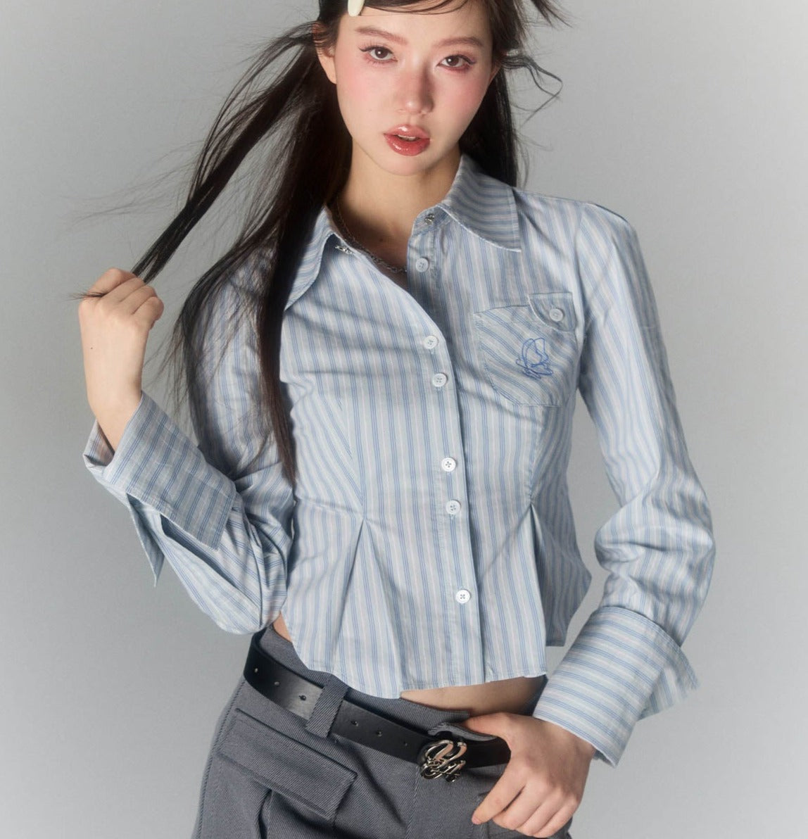 VIA PITTI SS2303 蝴蝶系列条纹弹性修身衬衫 蓝