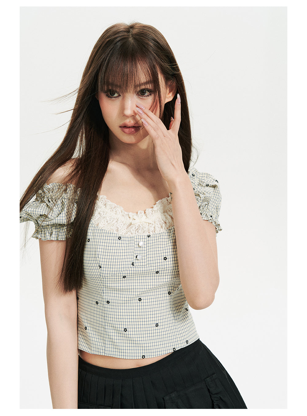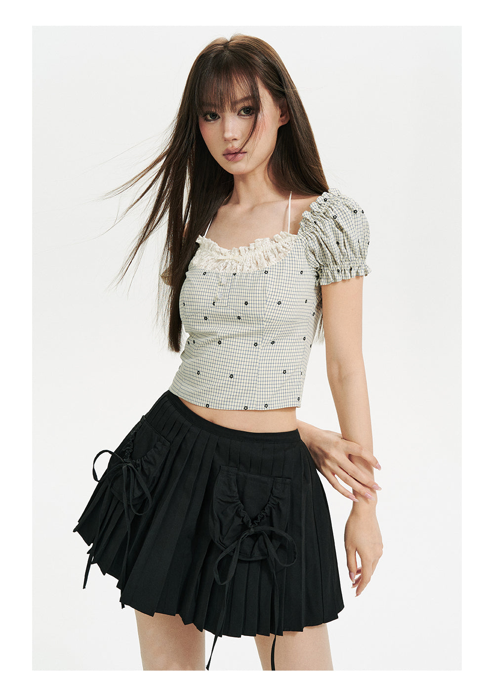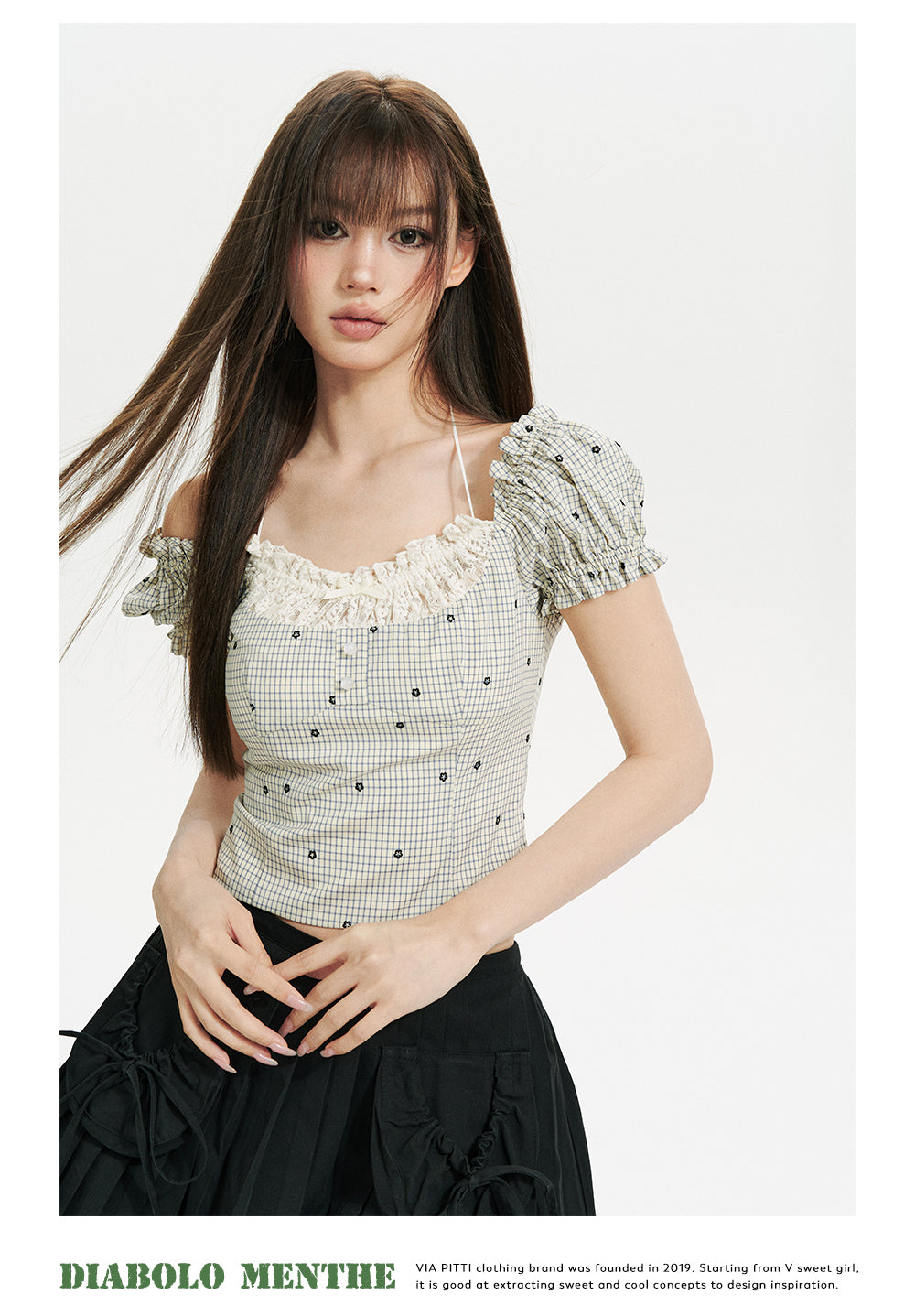 VIA PITTI SS2306 挂脖褶皱泡泡袖衬衫上衣