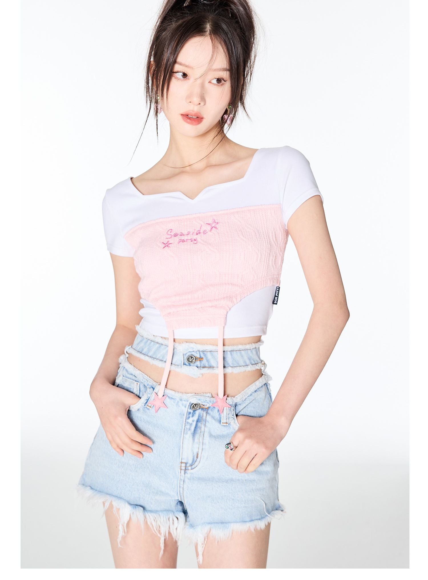 VIA PITTI SS2306 挖空双腰牛仔短裤