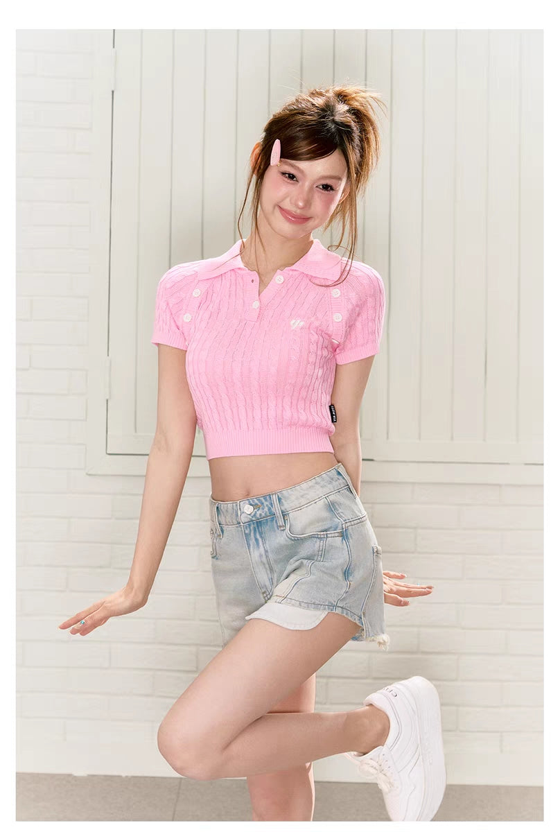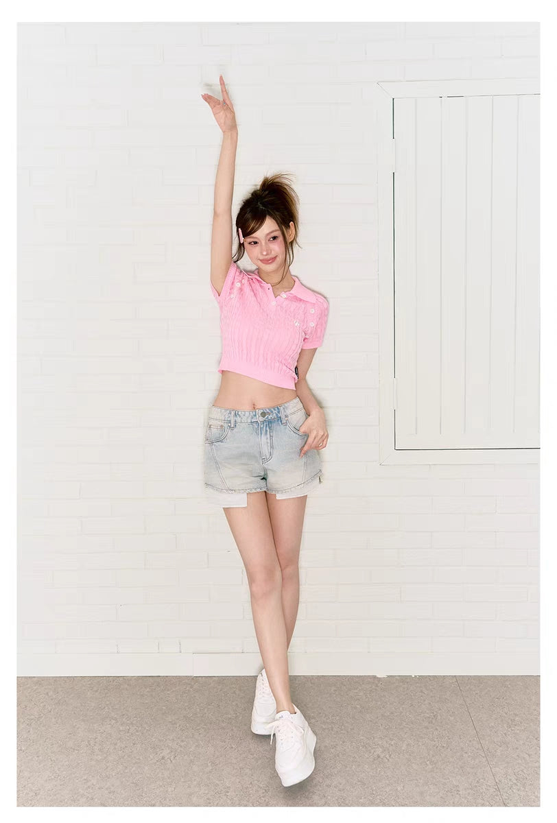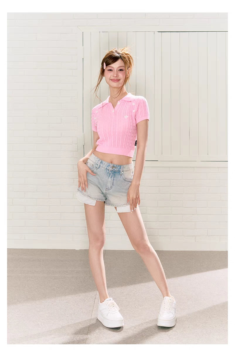 VIA PITTI SS2306 水洗做旧牛仔短裤 蓝