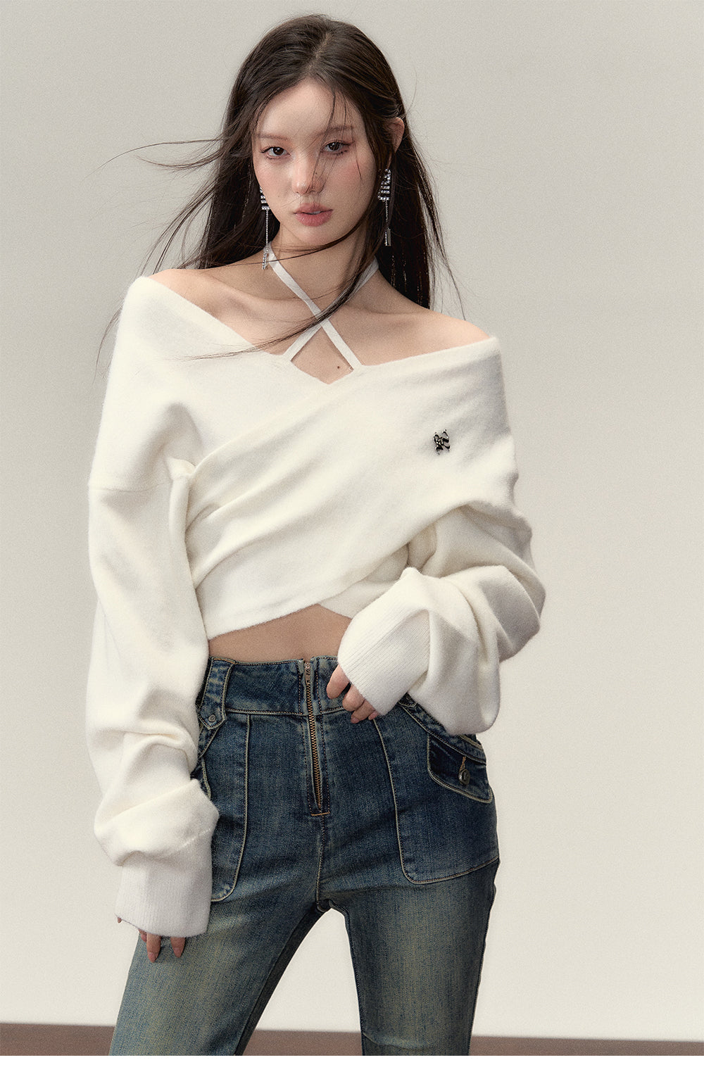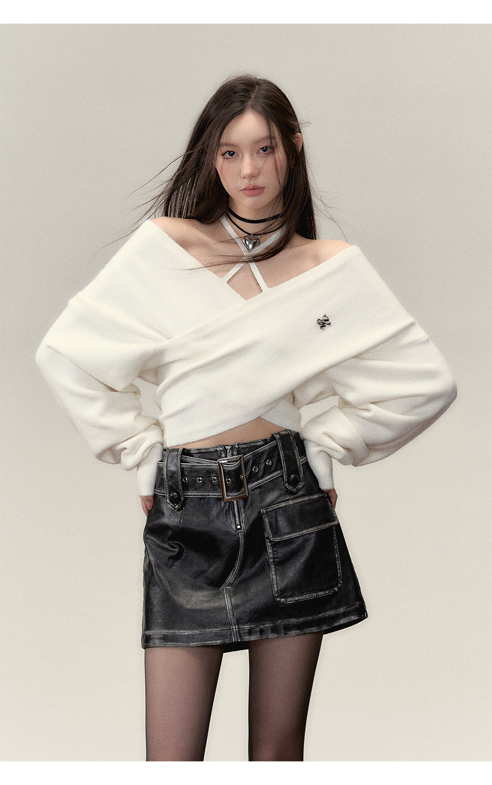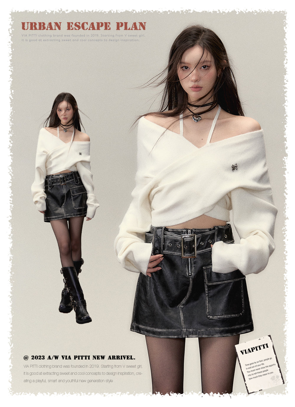 VIA PITTI SS2311 一字肩设计感针织衫毛衣 白
