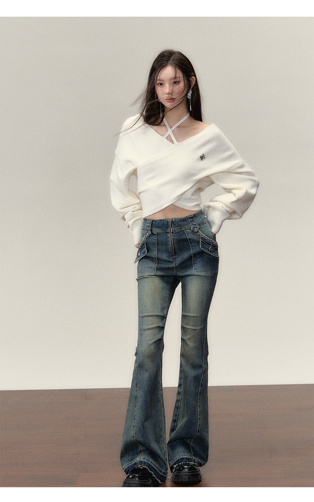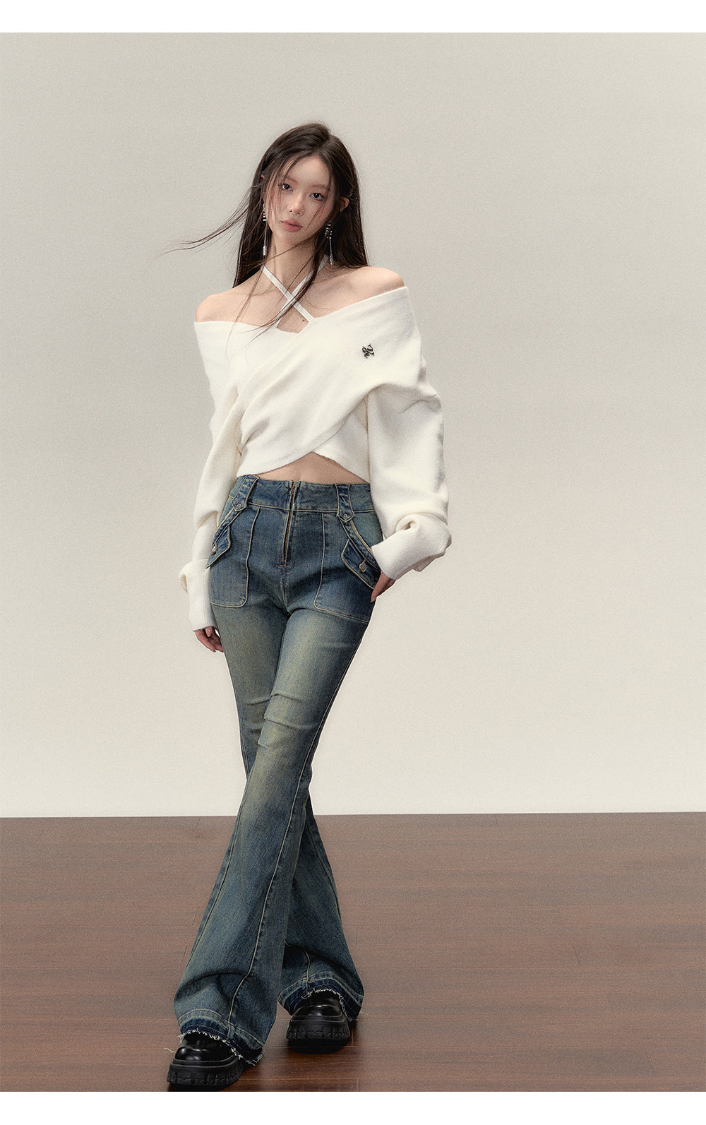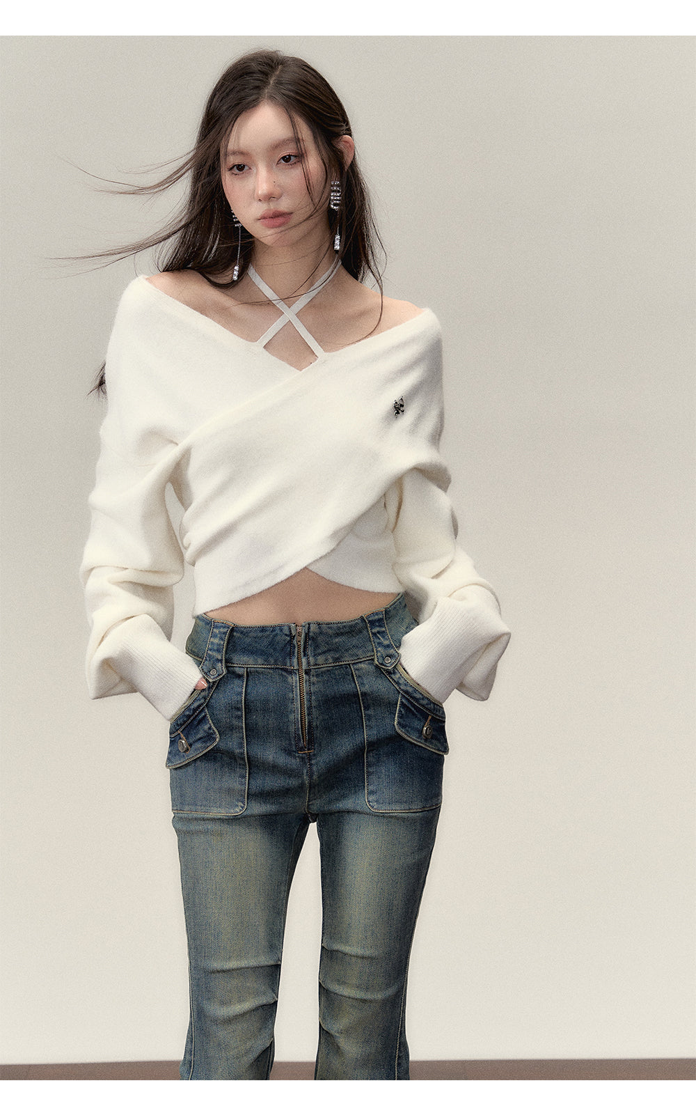 VIA PITTI SS2311 一字肩设计感针织衫毛衣 白