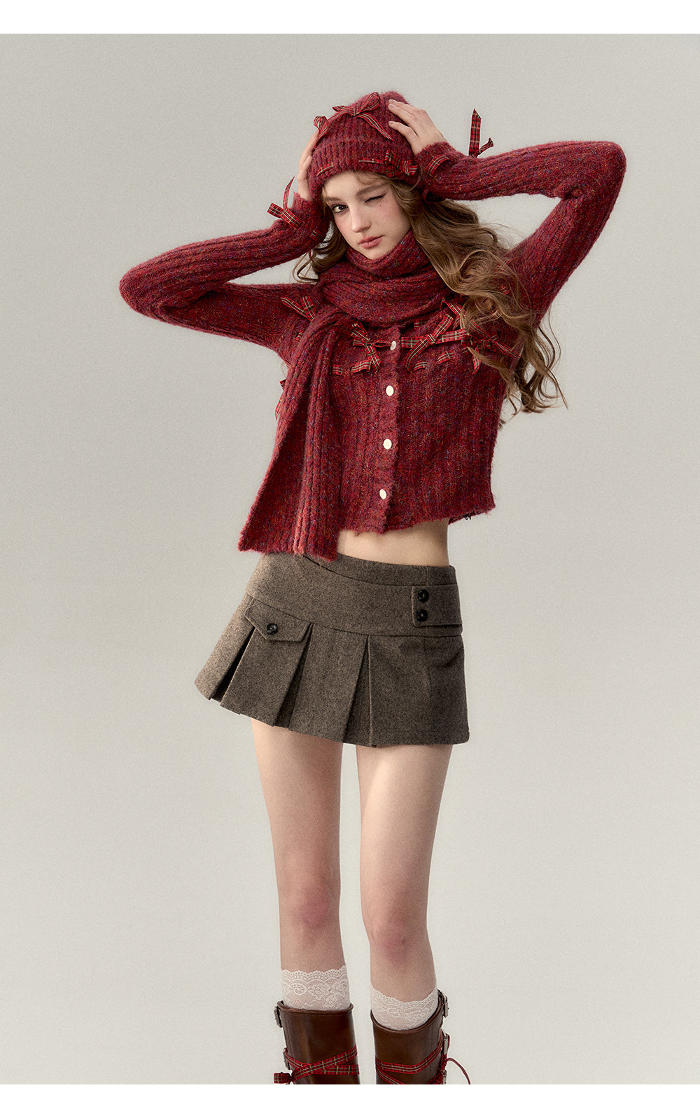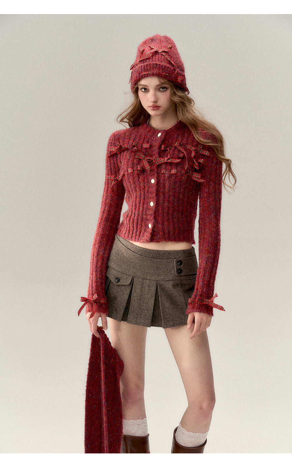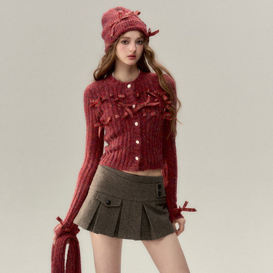 VIA PITTI SS2401 红色氛围感蝴蝶结毛衣