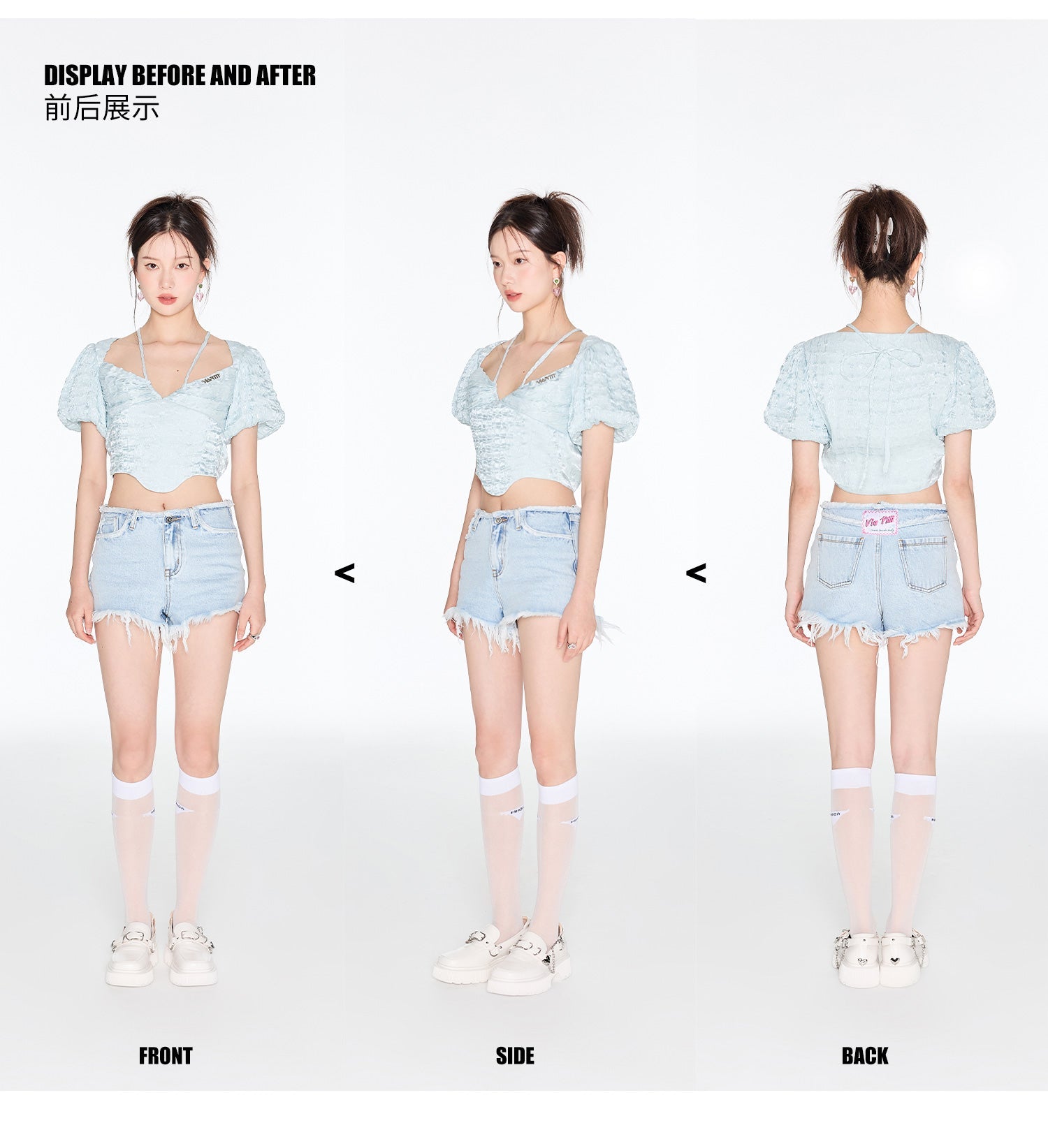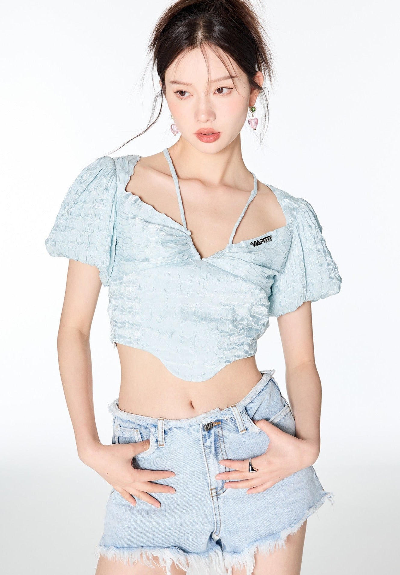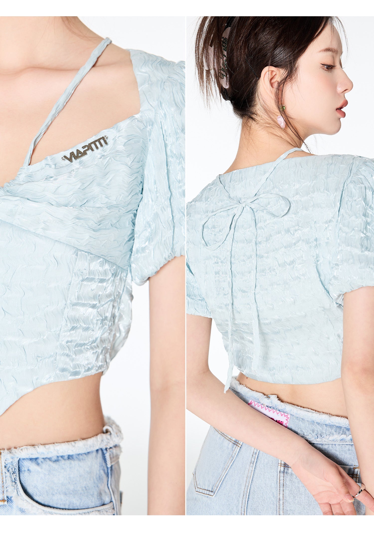 Via Pitti 海滨派对系列温柔一击挂脖短袖 蓝