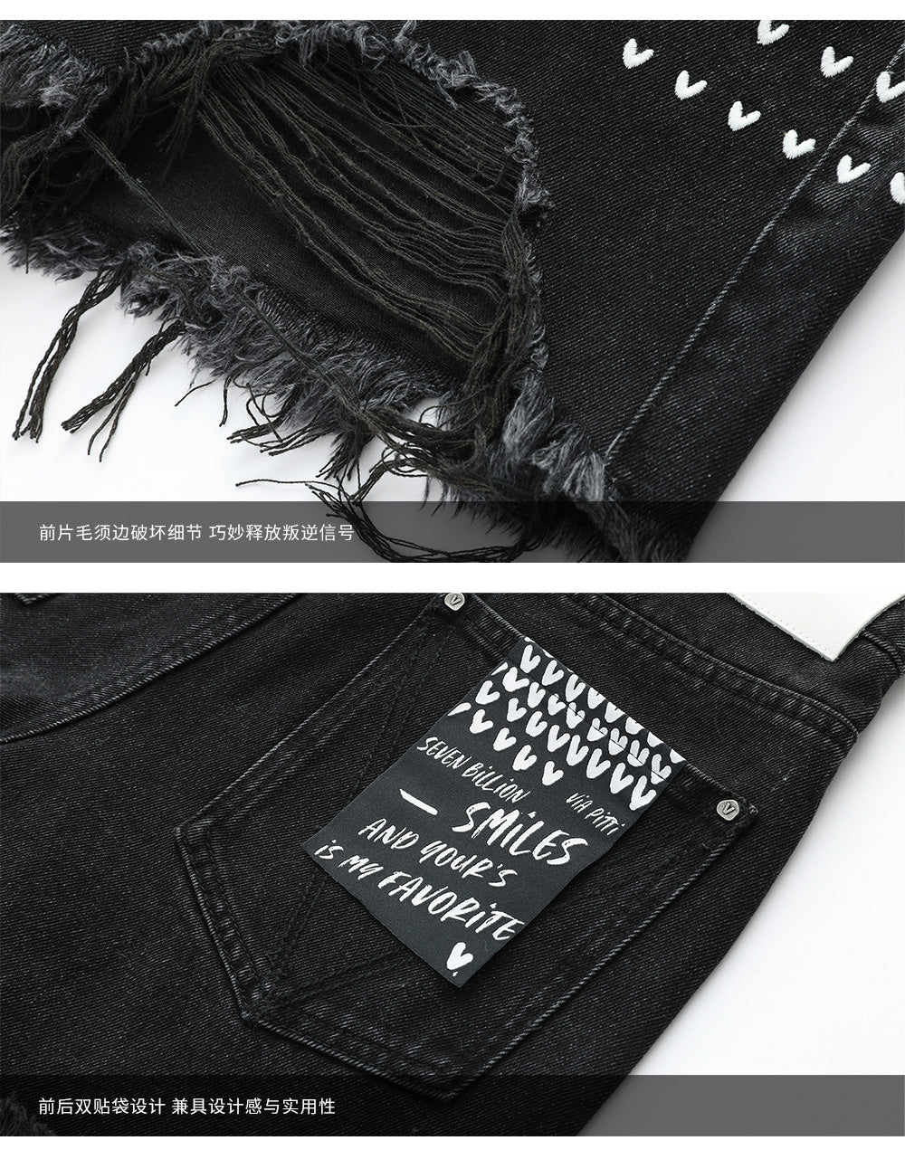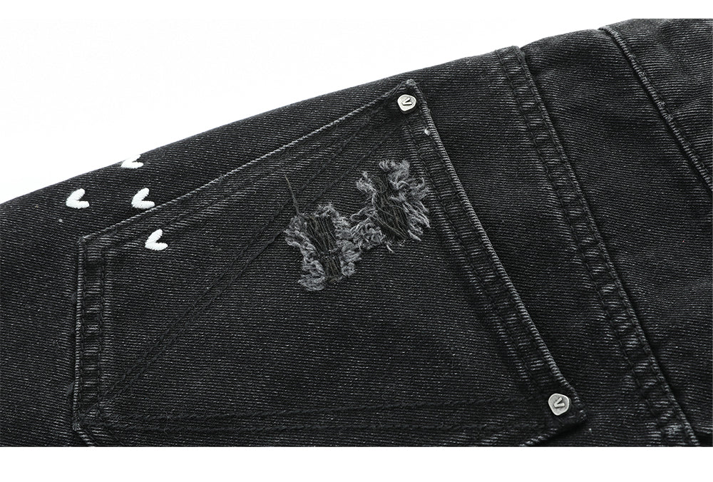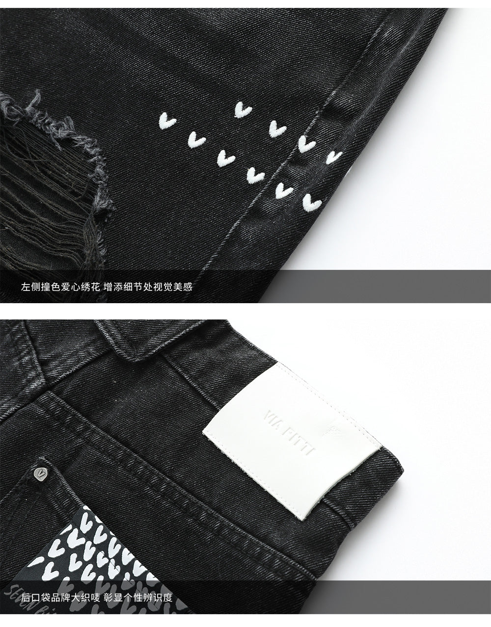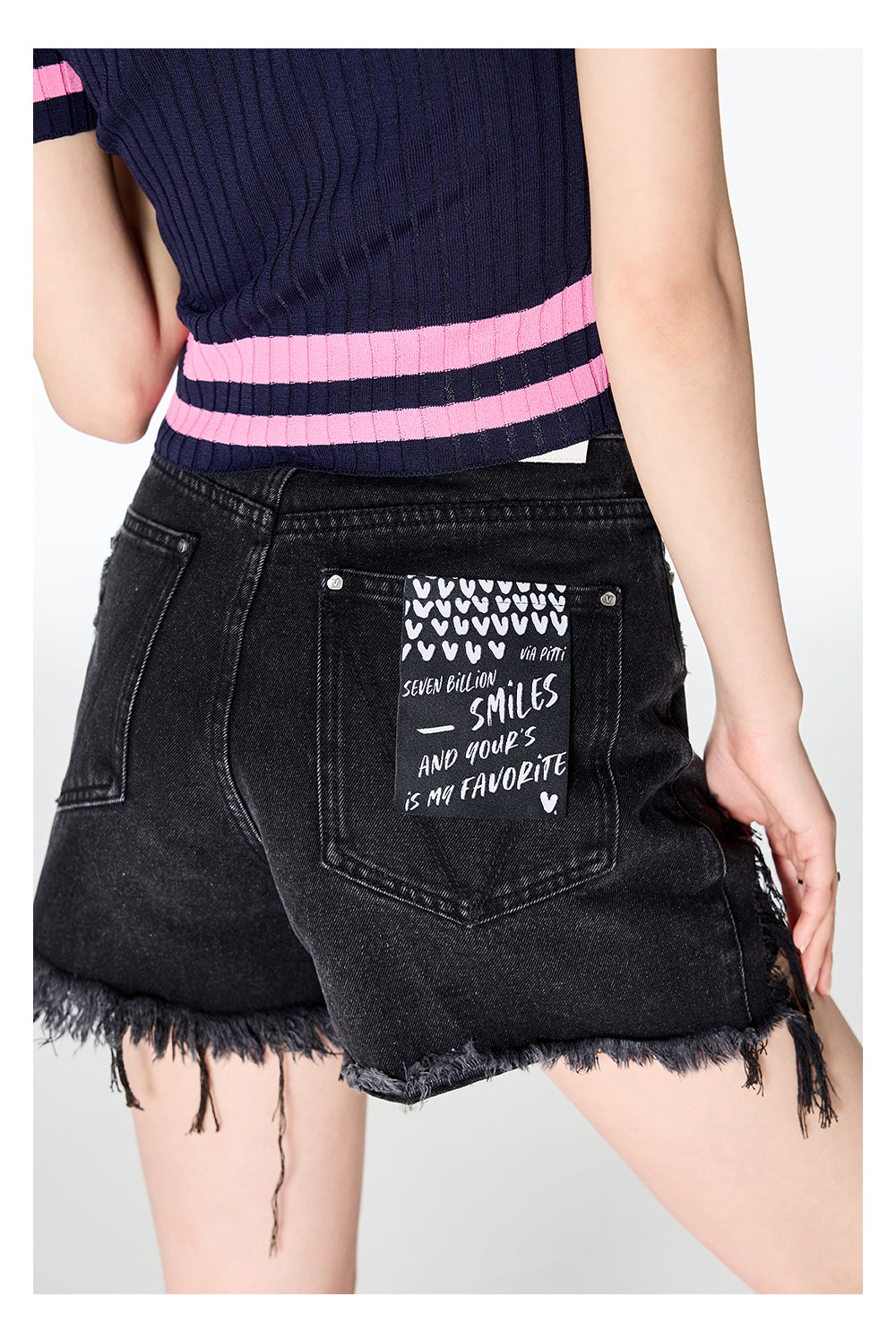 Via Pitti 破坏刺绣爱心牛仔短裤