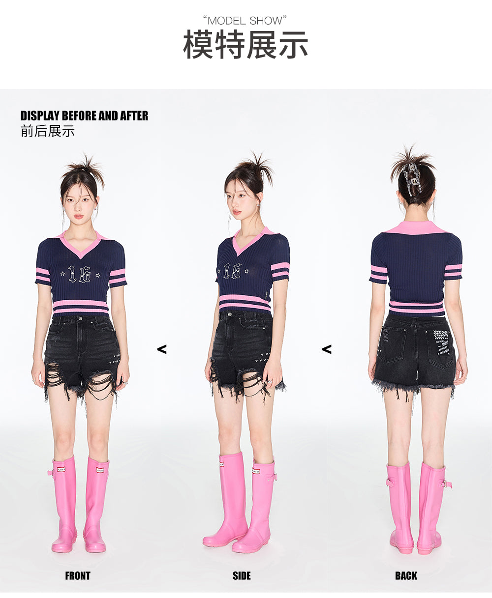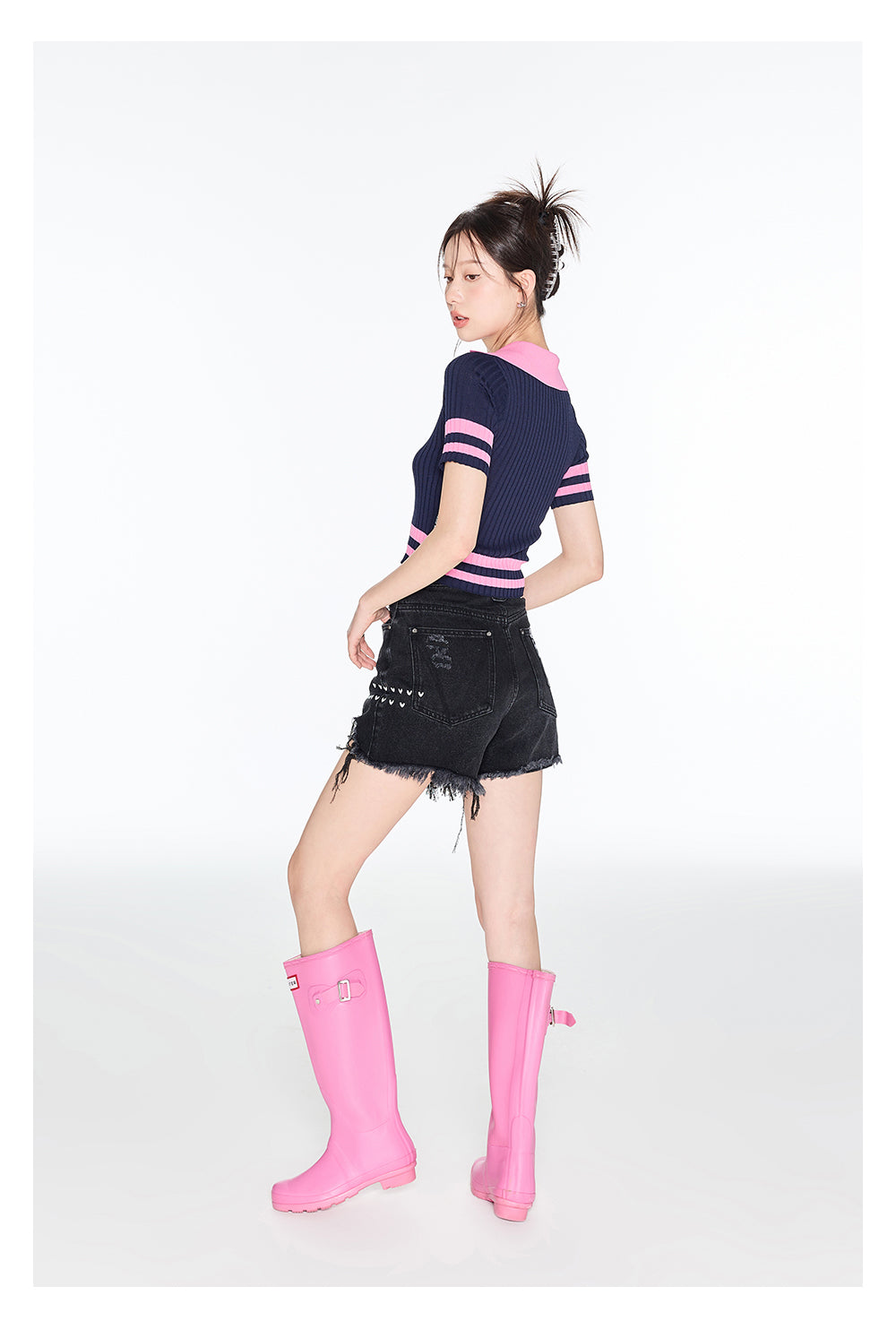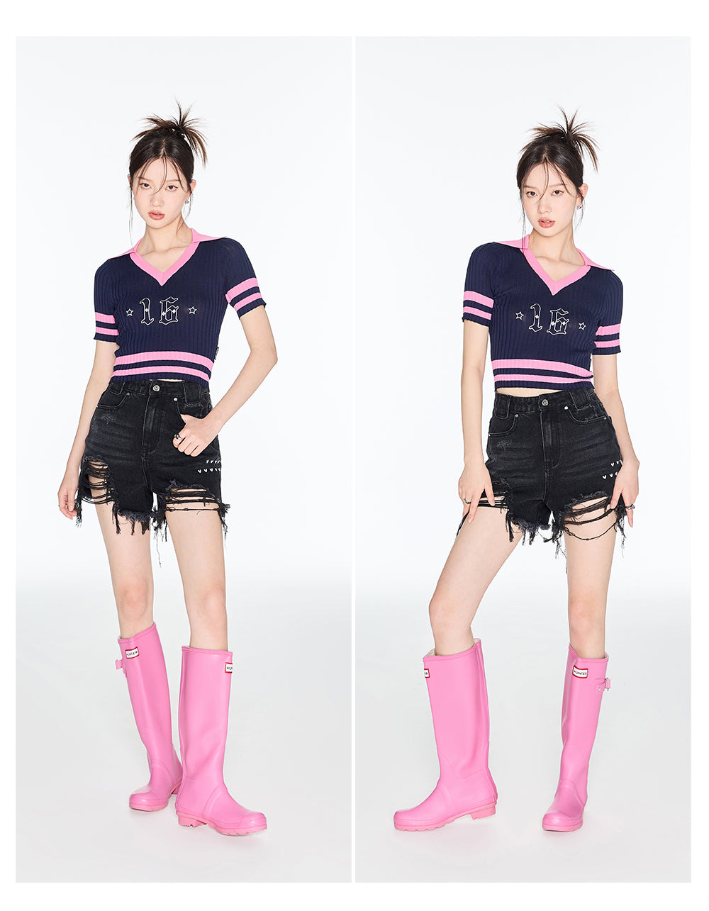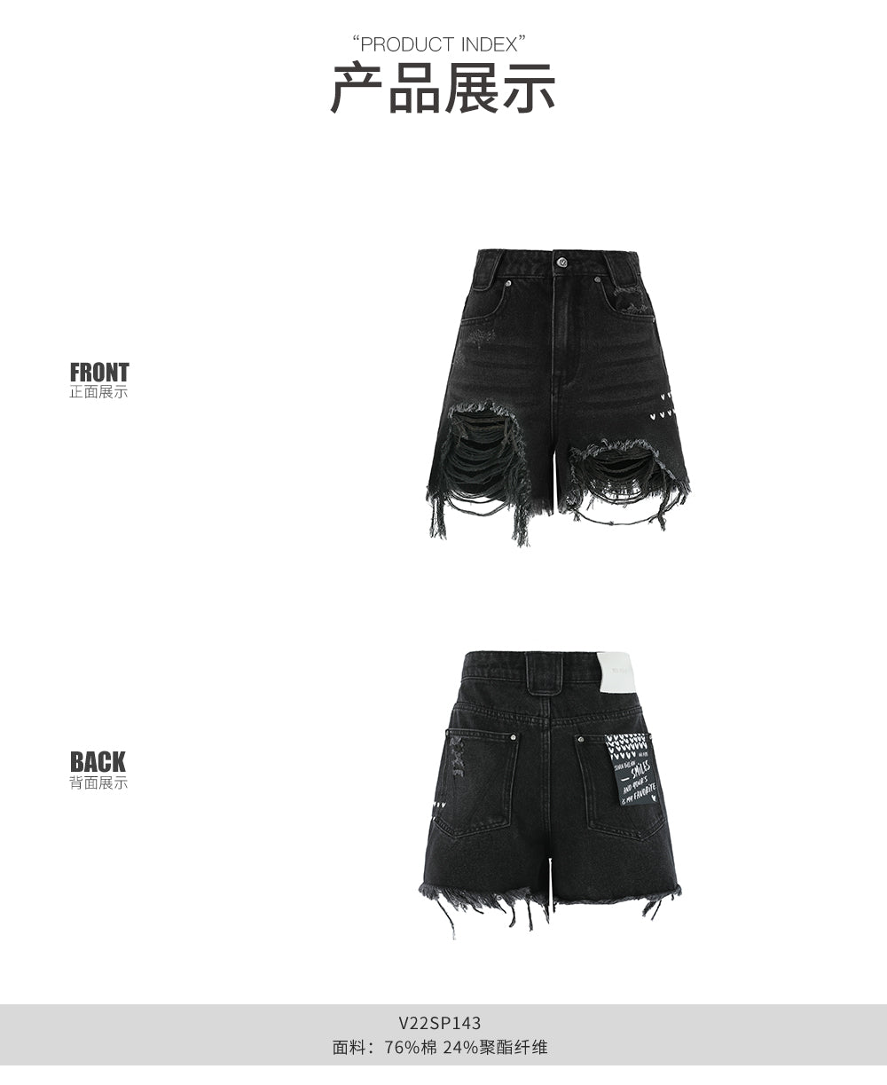 Via Pitti 破坏刺绣爱心牛仔短裤