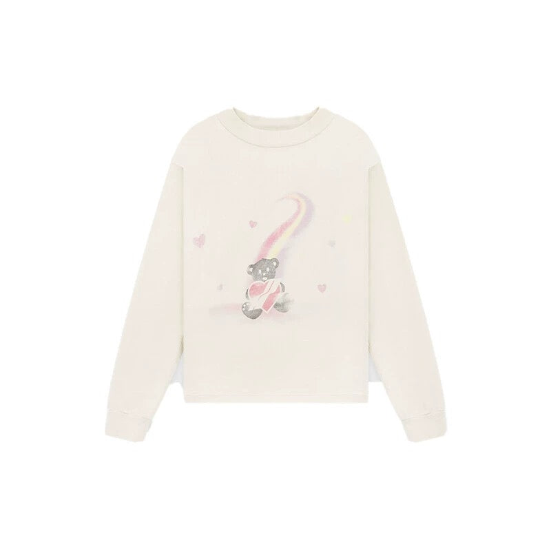 WE11DONE Gray Teddy Bear Long Sleeve T-Shirt White