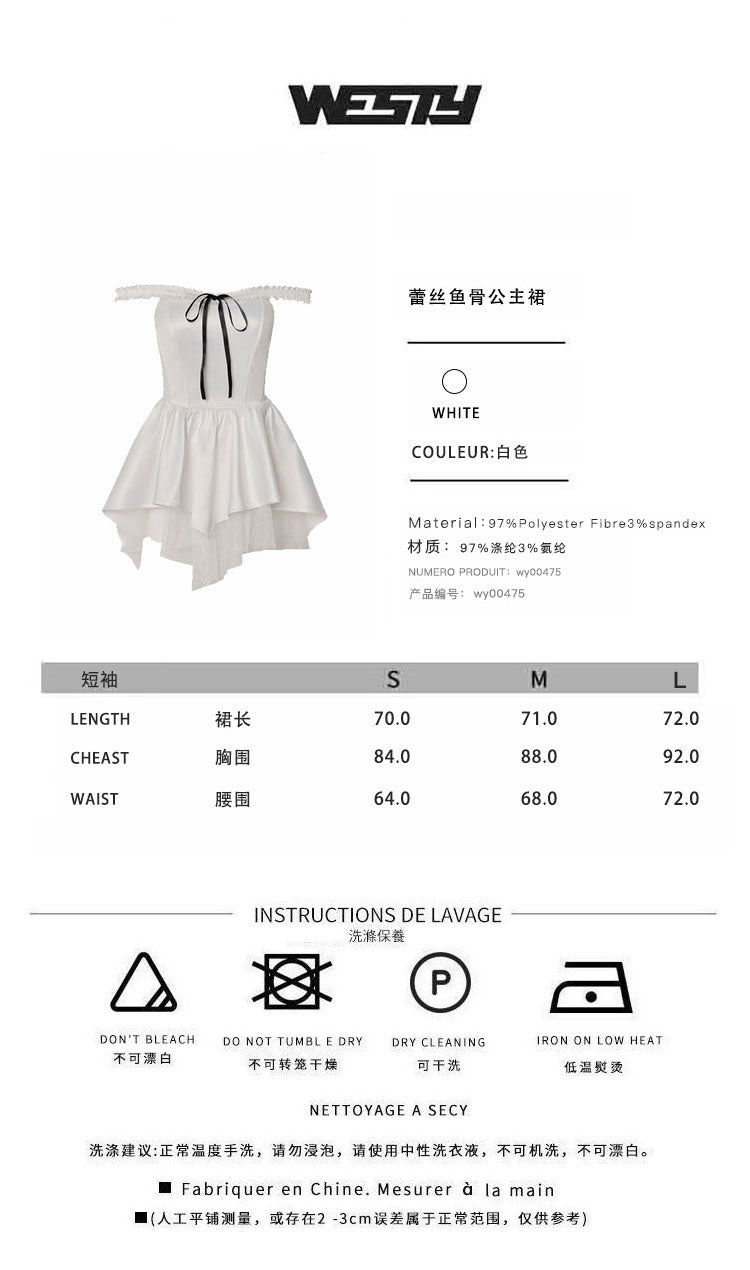 West.Y 2410 气质收腰蕾丝鱼骨公主连衣裙