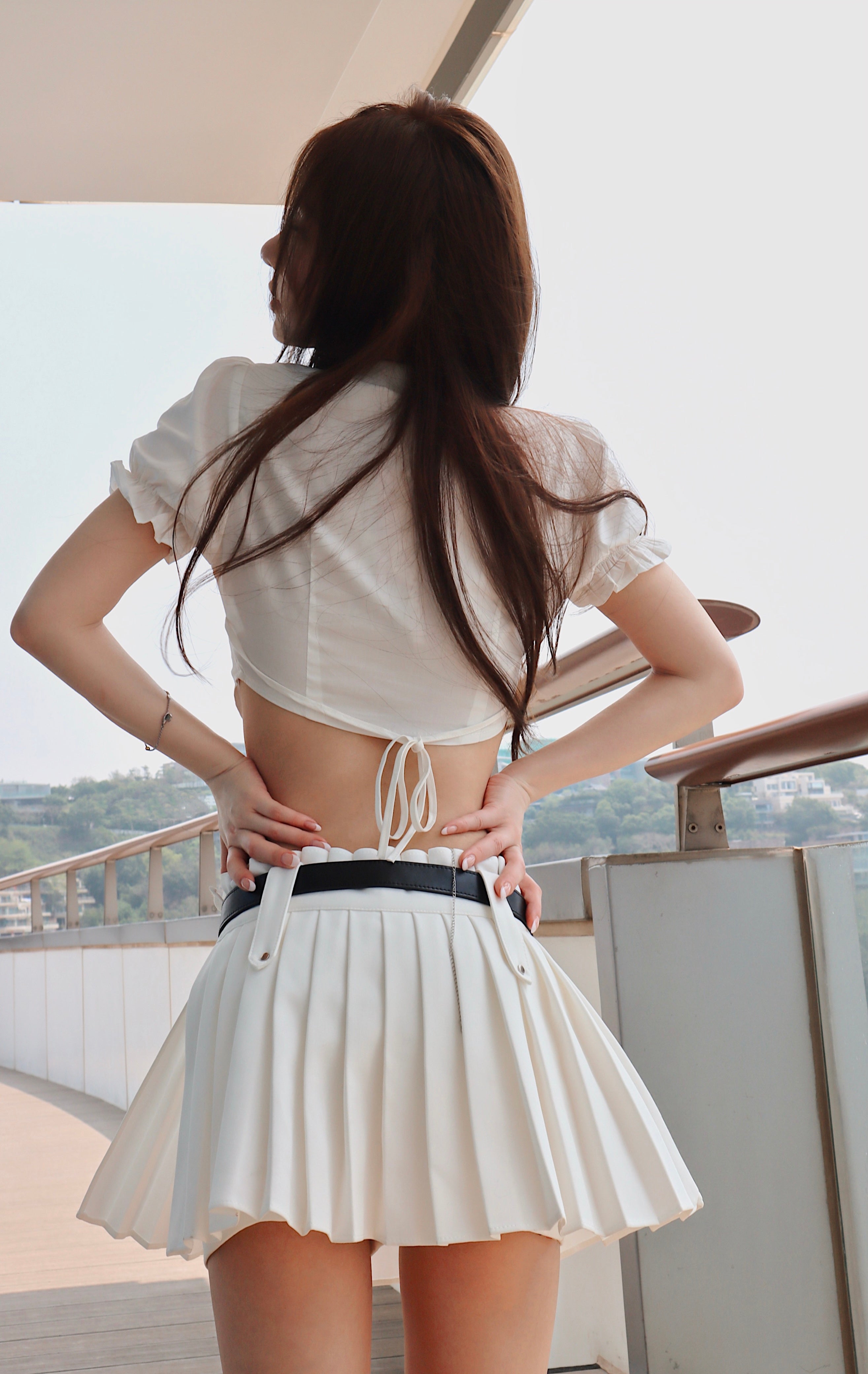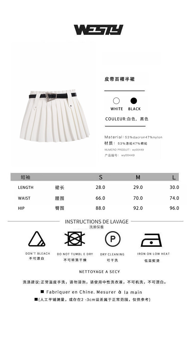 West.Y SS2304 皮带百褶半裙 白
