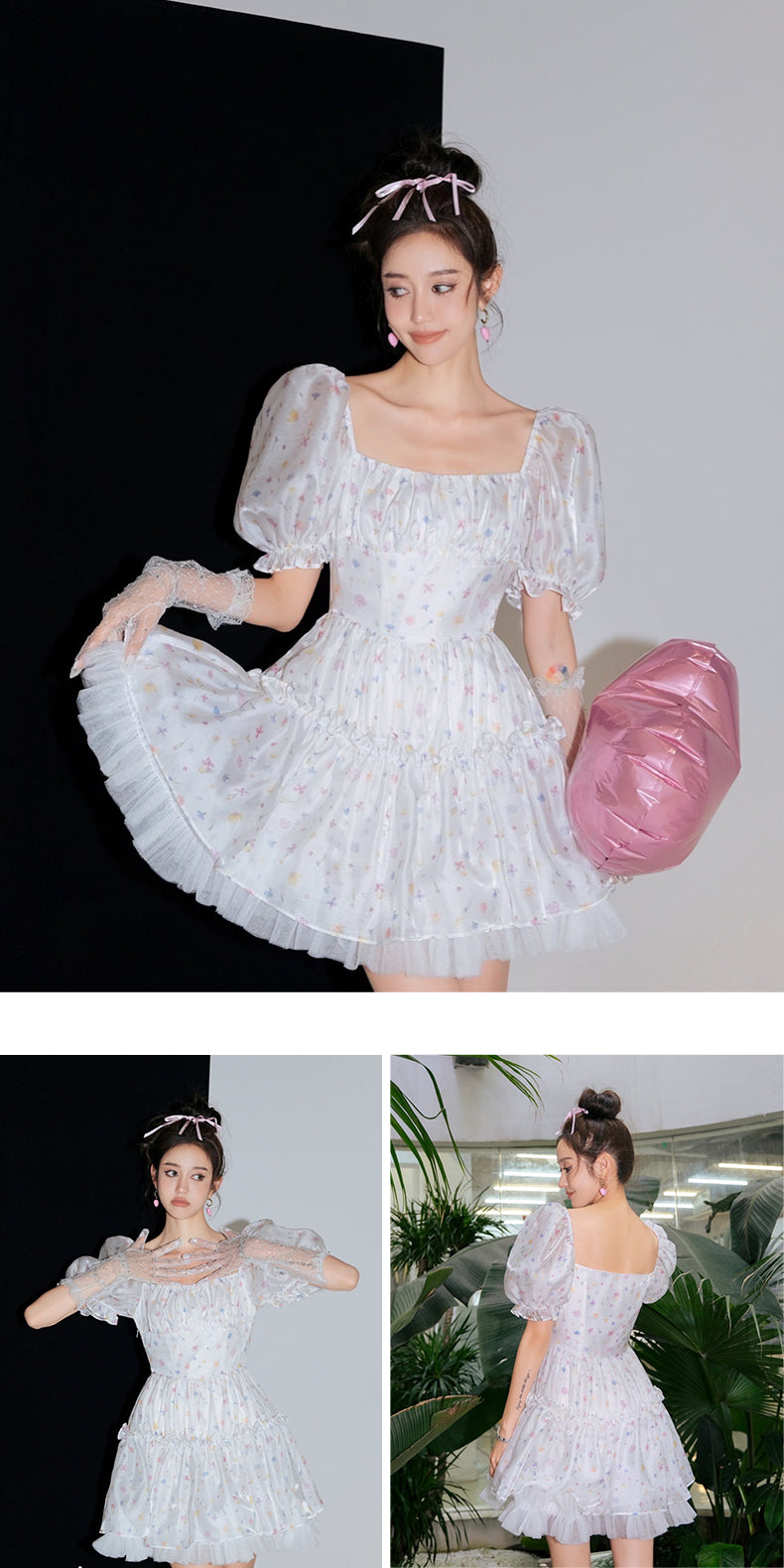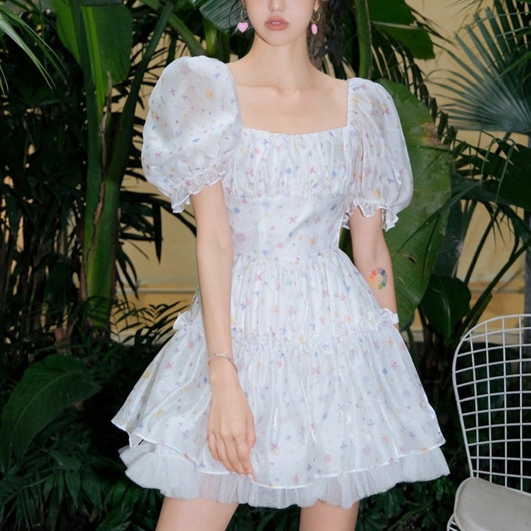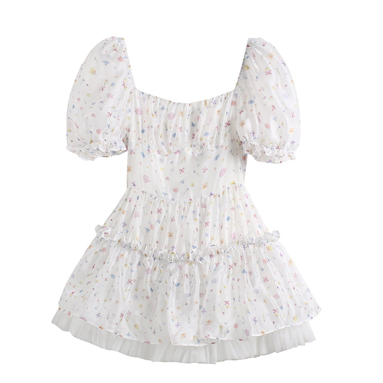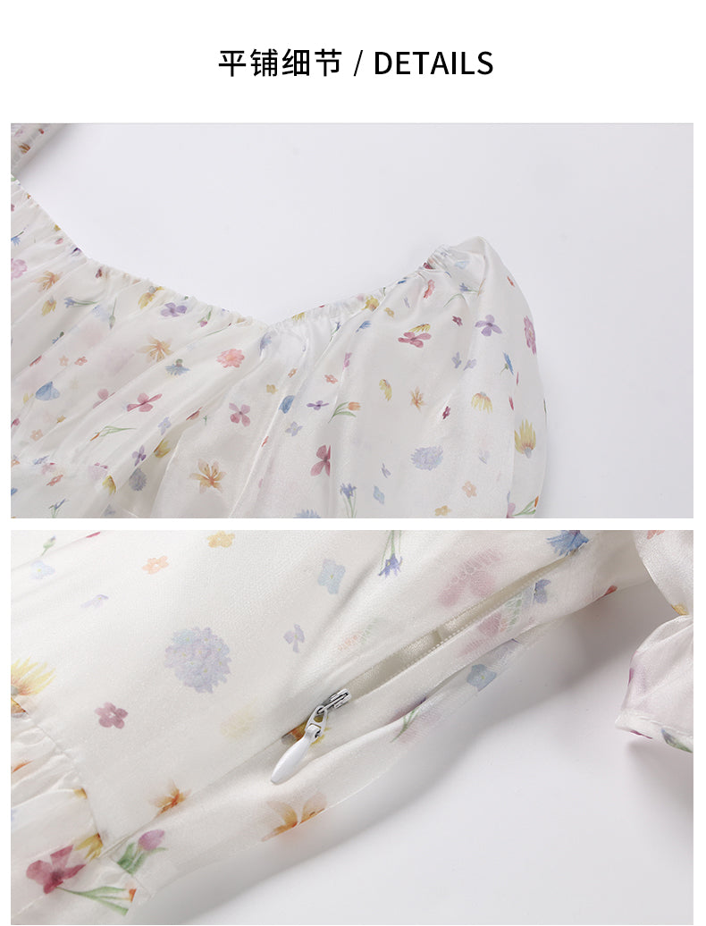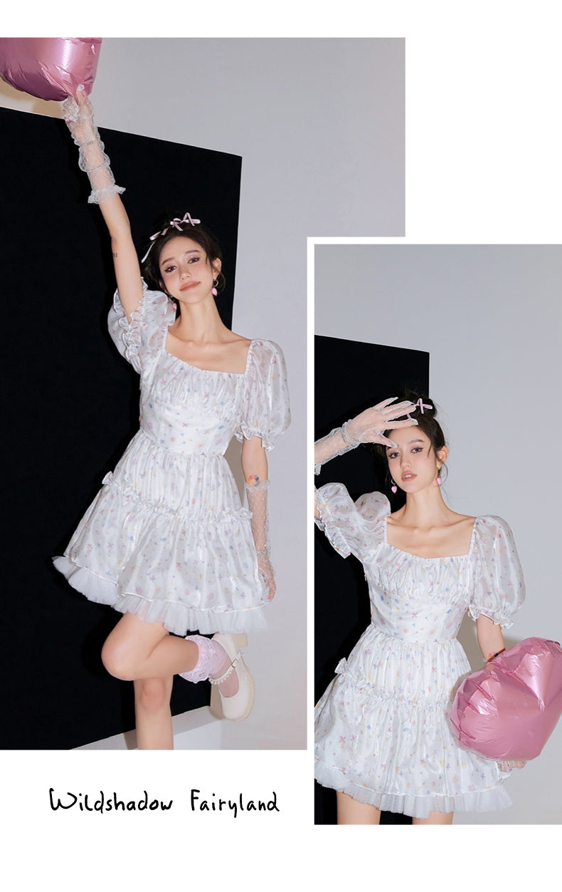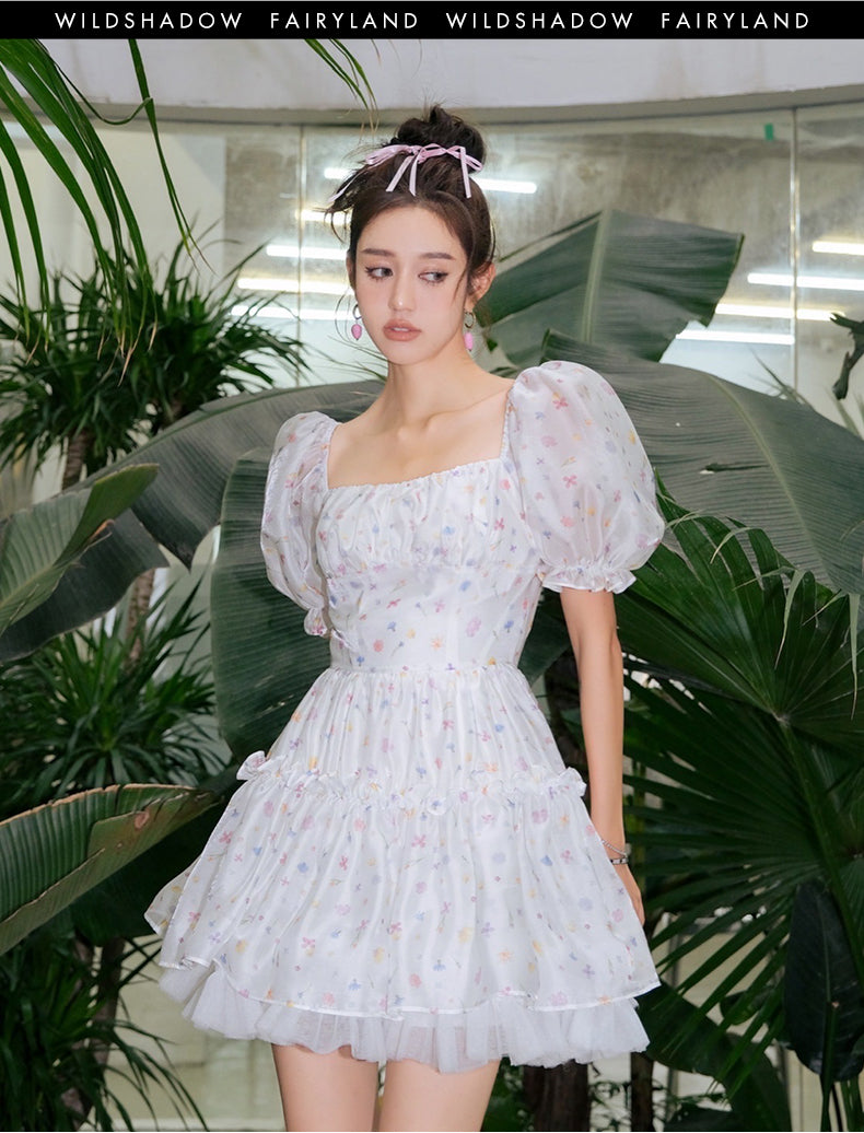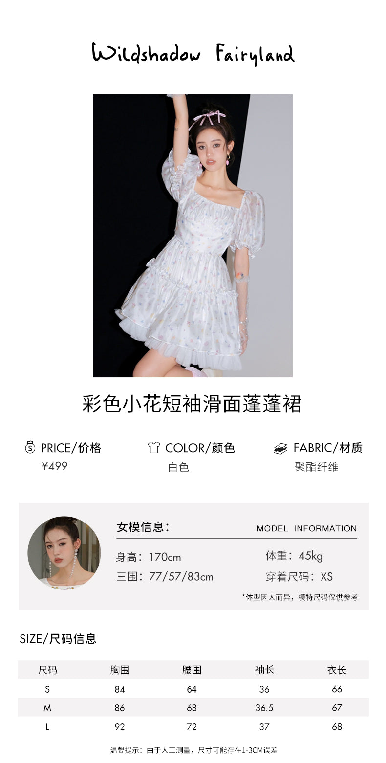 WILDSHADOW 彩色小花短袖滑面蓬蓬裙(杨颖同款)
